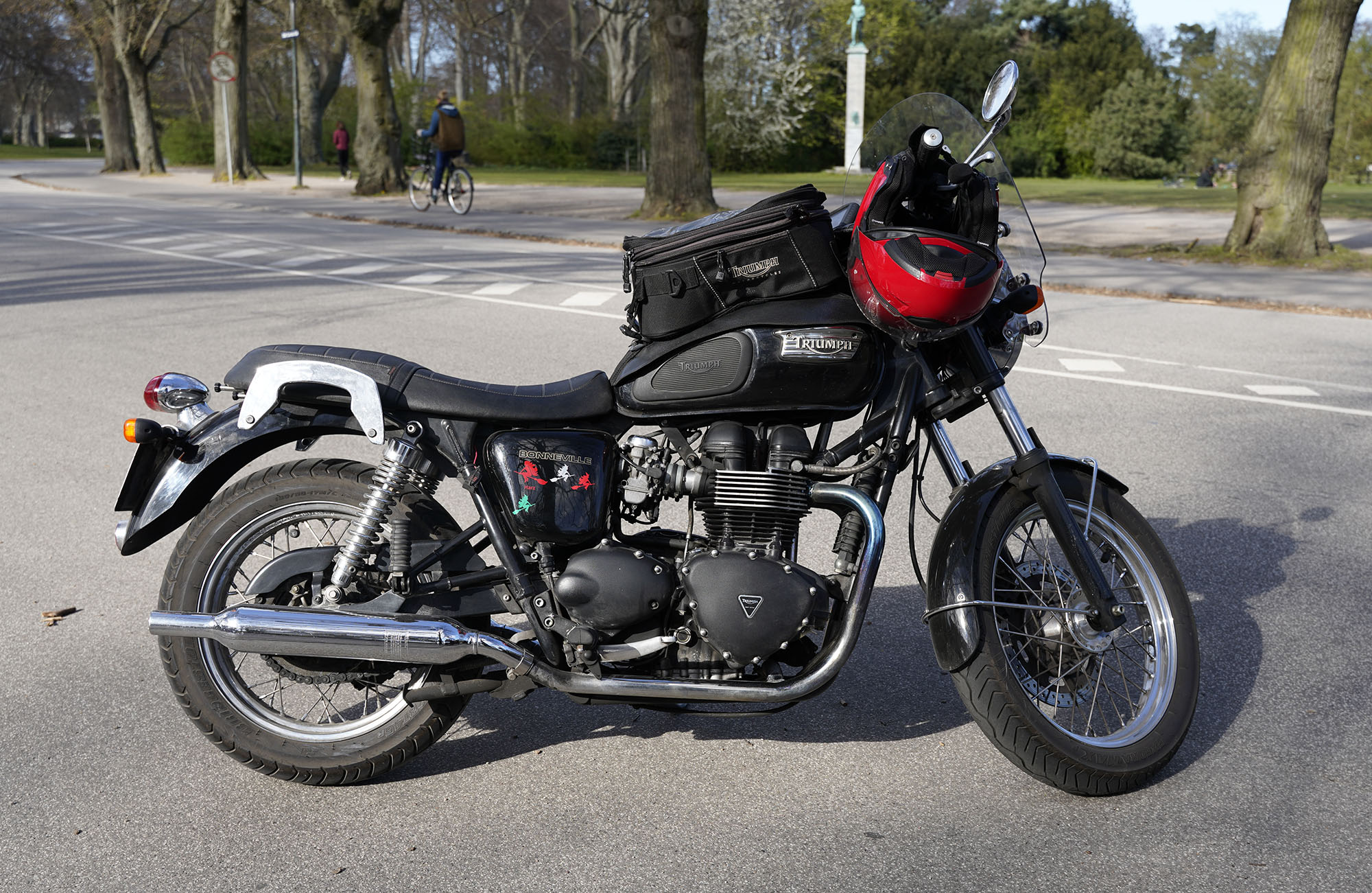 Der er Mogens med den røde hjelm og den sorte Bonneville -07. Så er der Søren