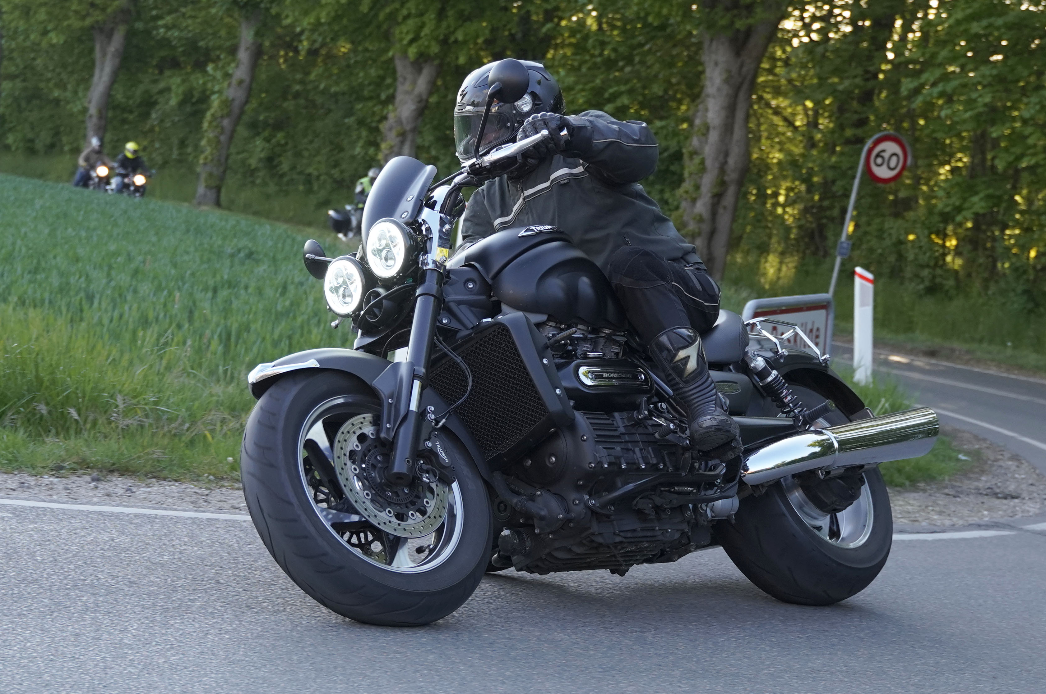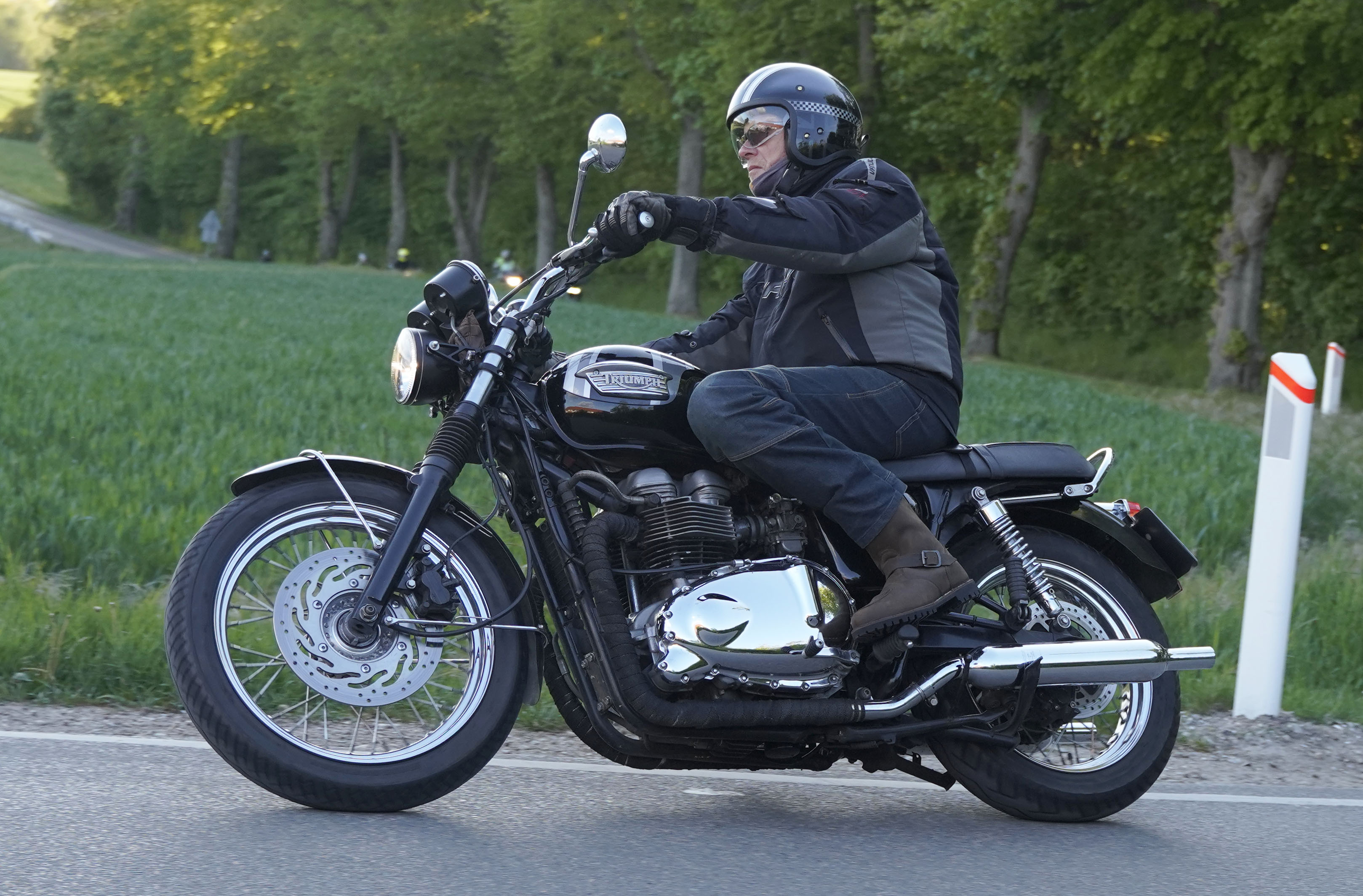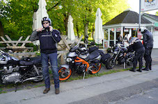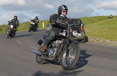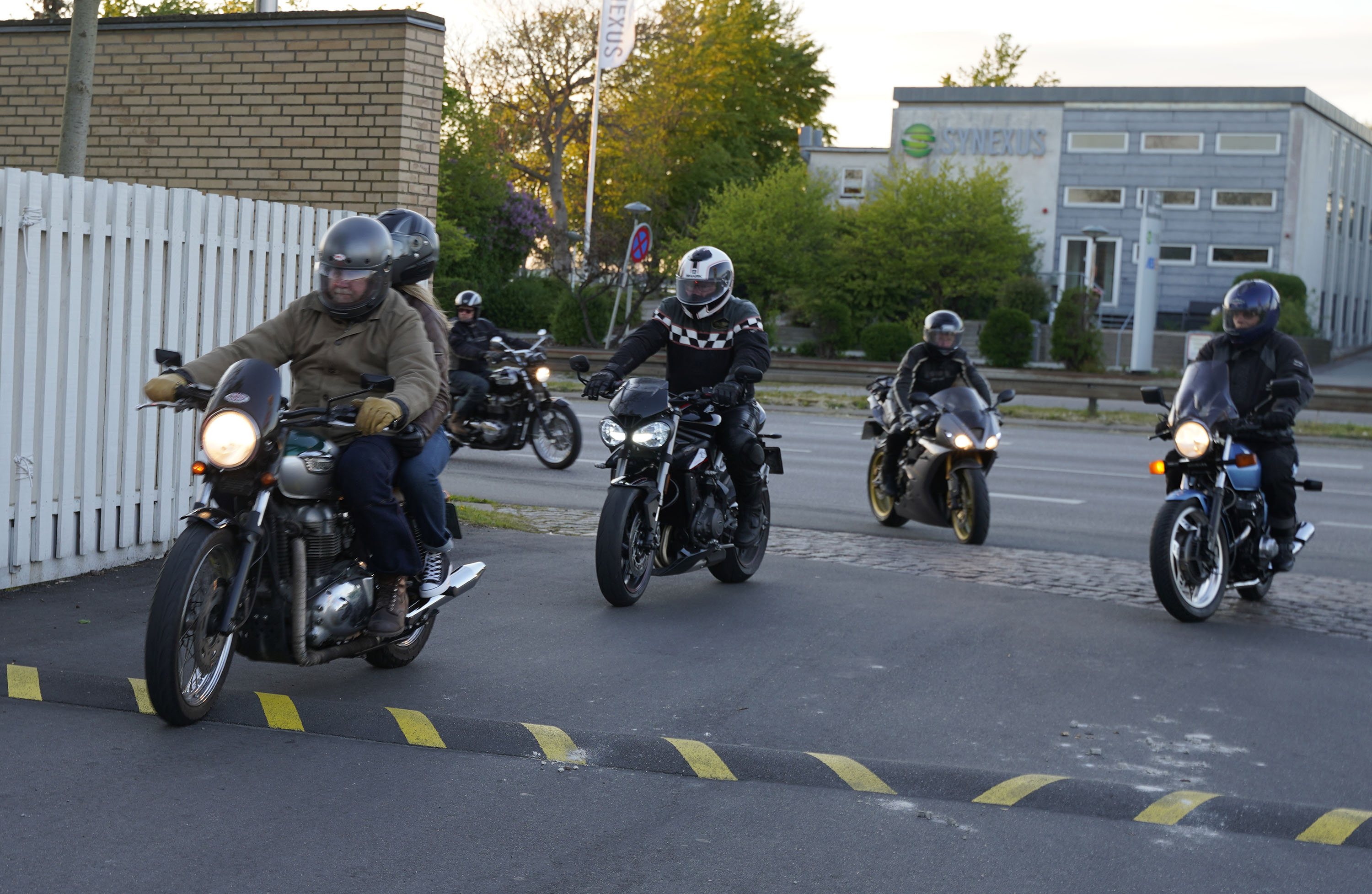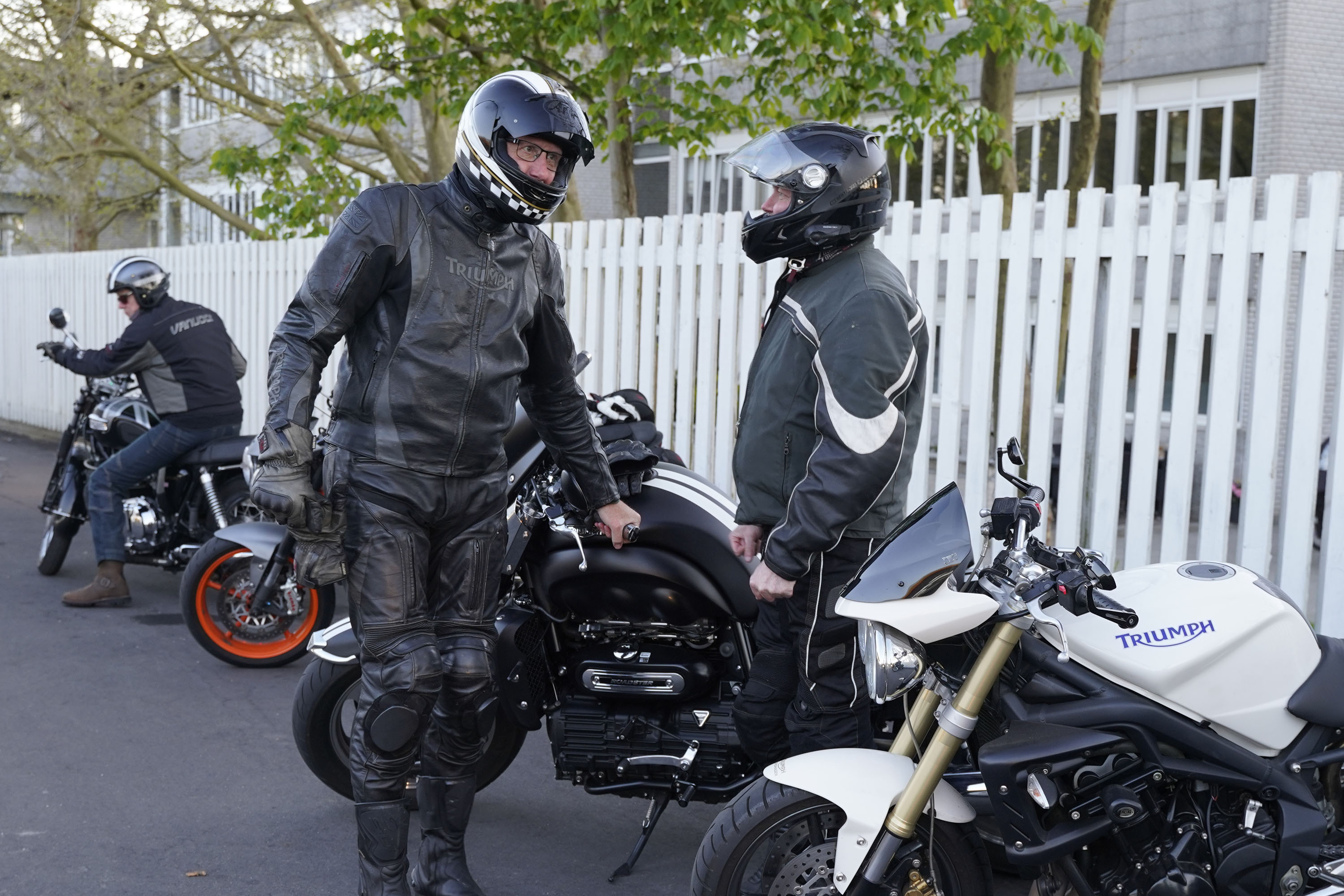 Jan på en sort Rocket III -14, Henrik på en sort Bonneville -04, Klaus på en hvid Street
