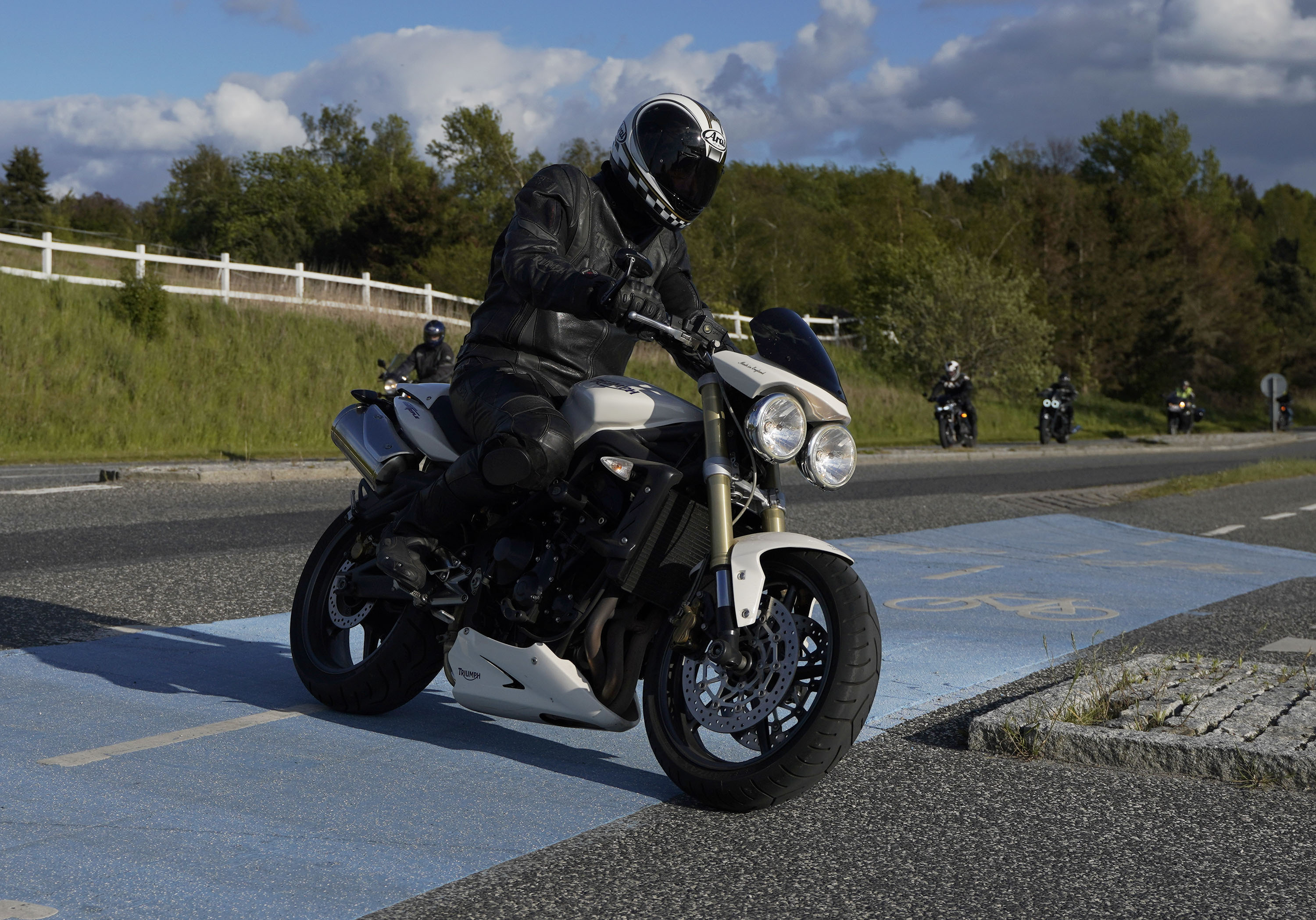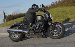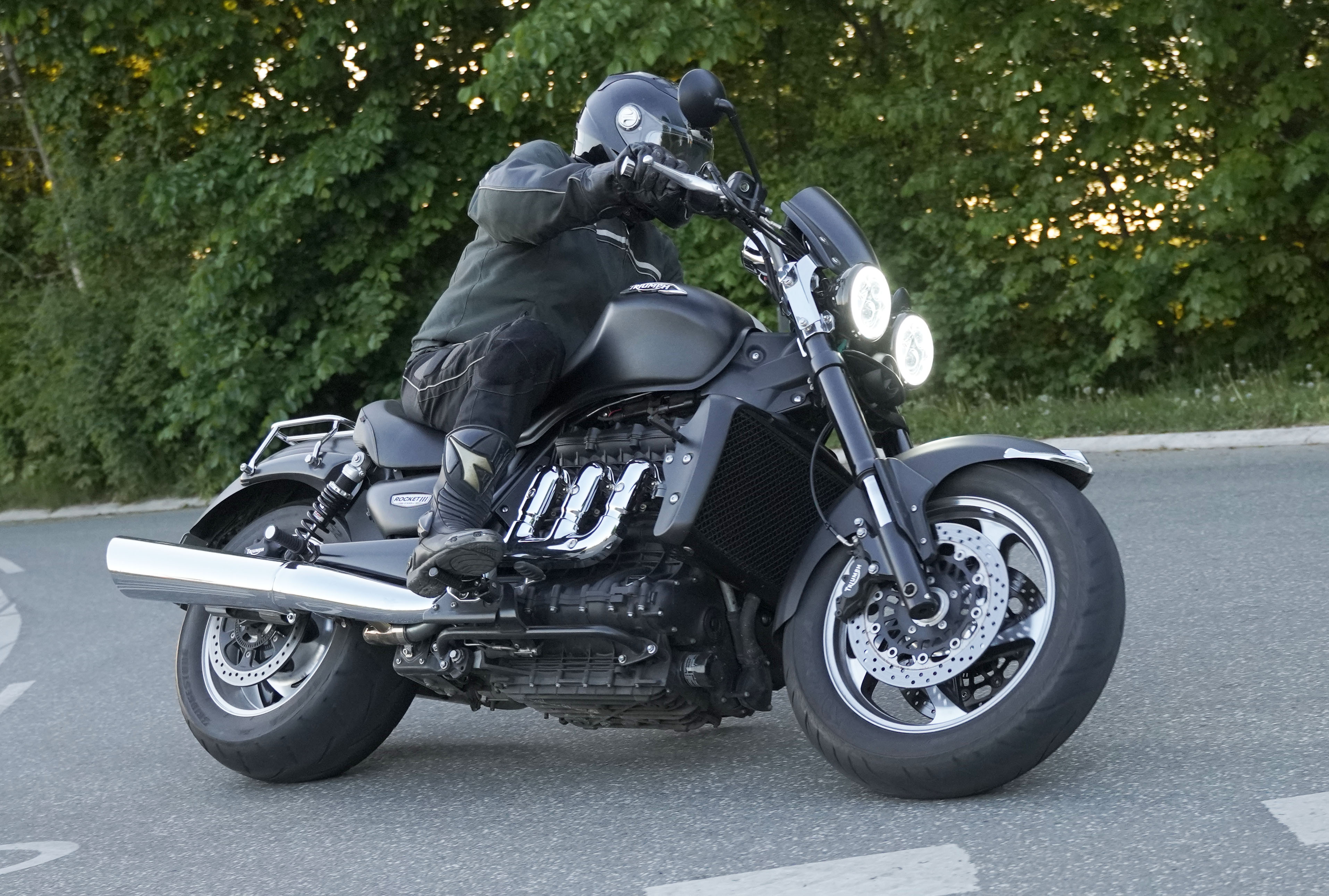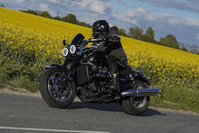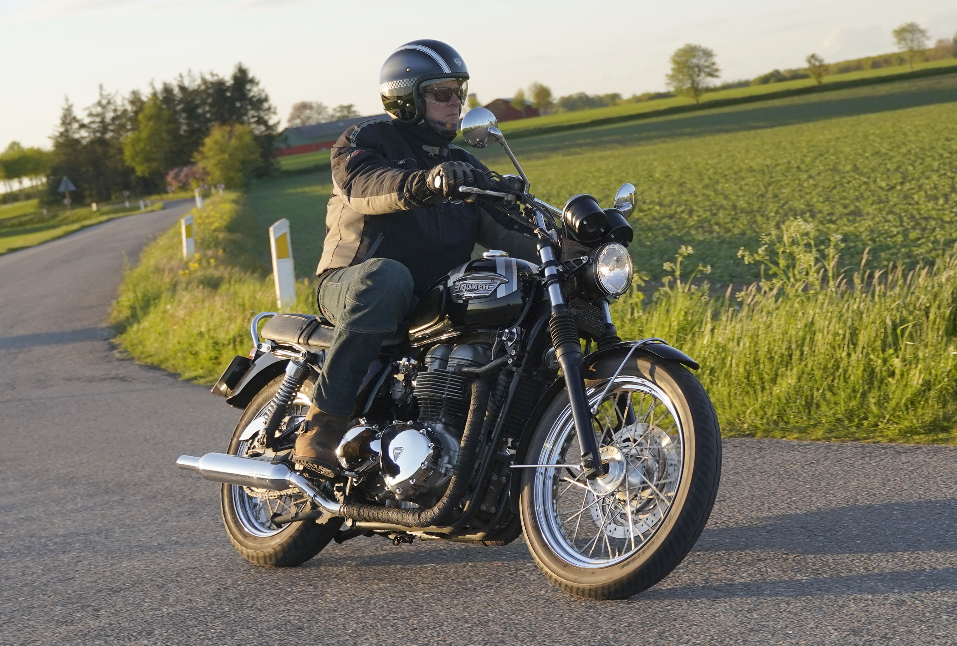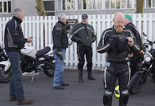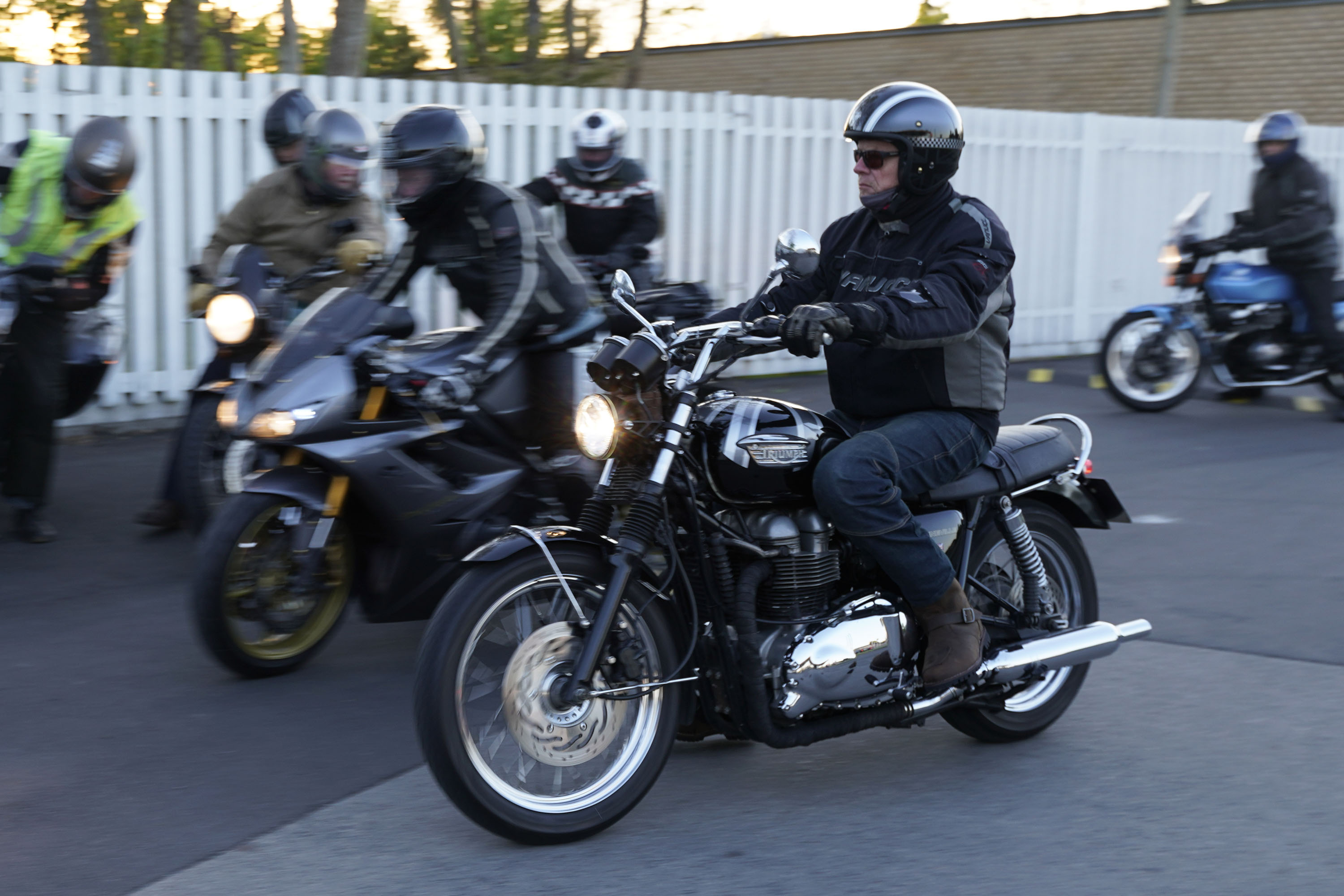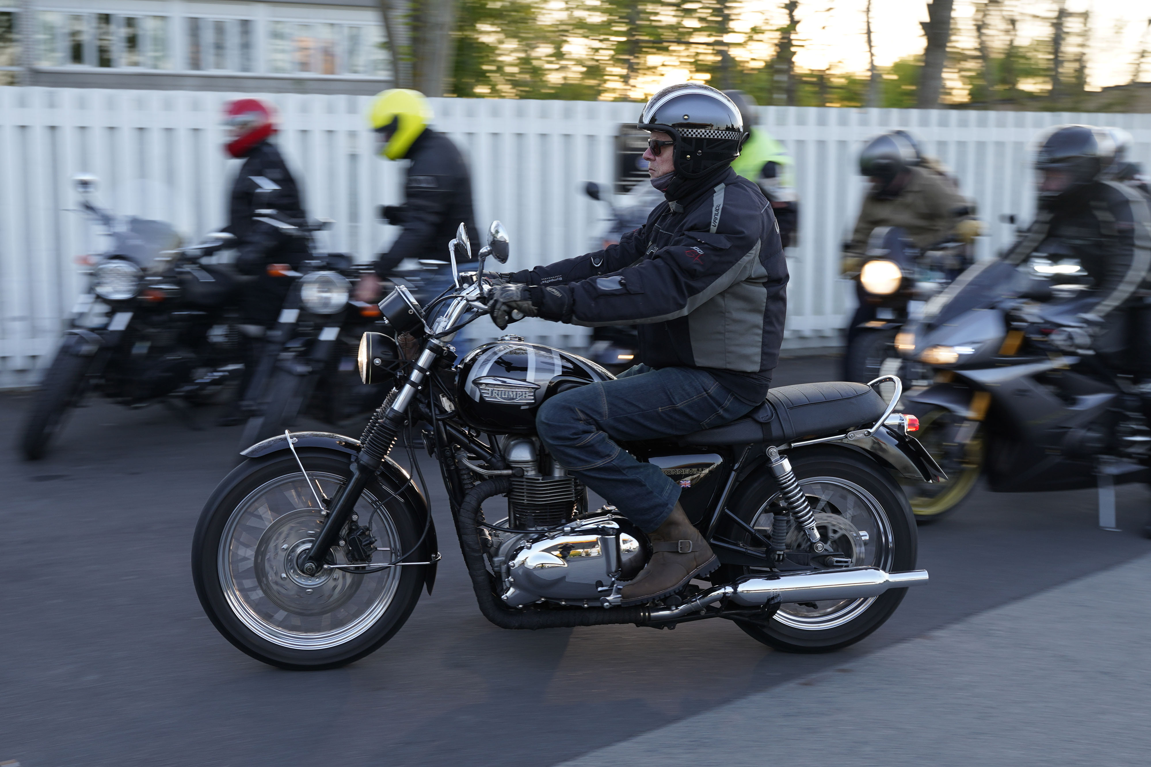 Jan på en sort Rocket III -14, Henrik på en sort Bonneville -04, Klaus på en hvid Street