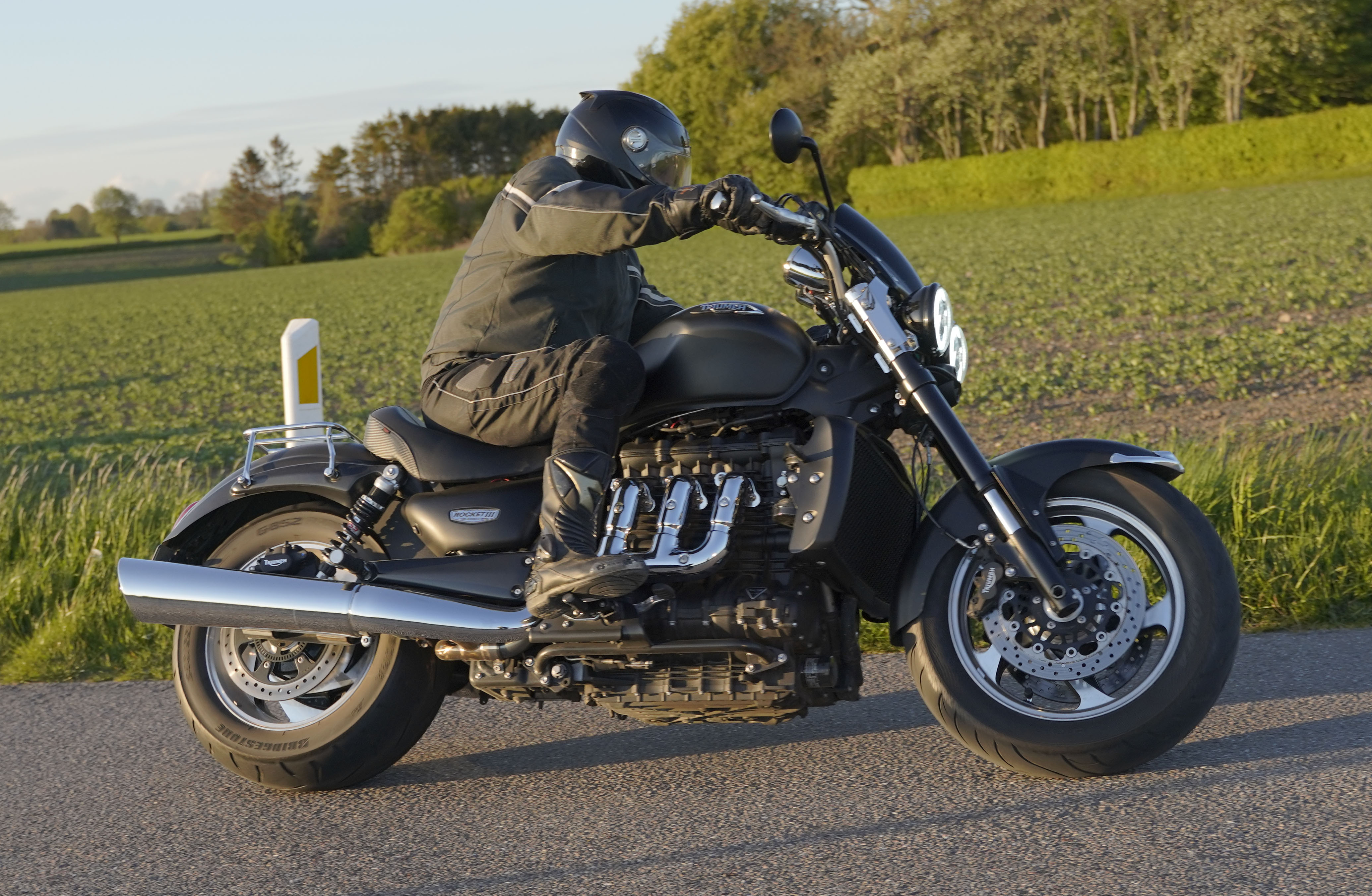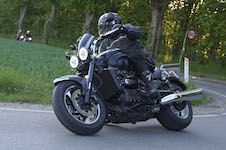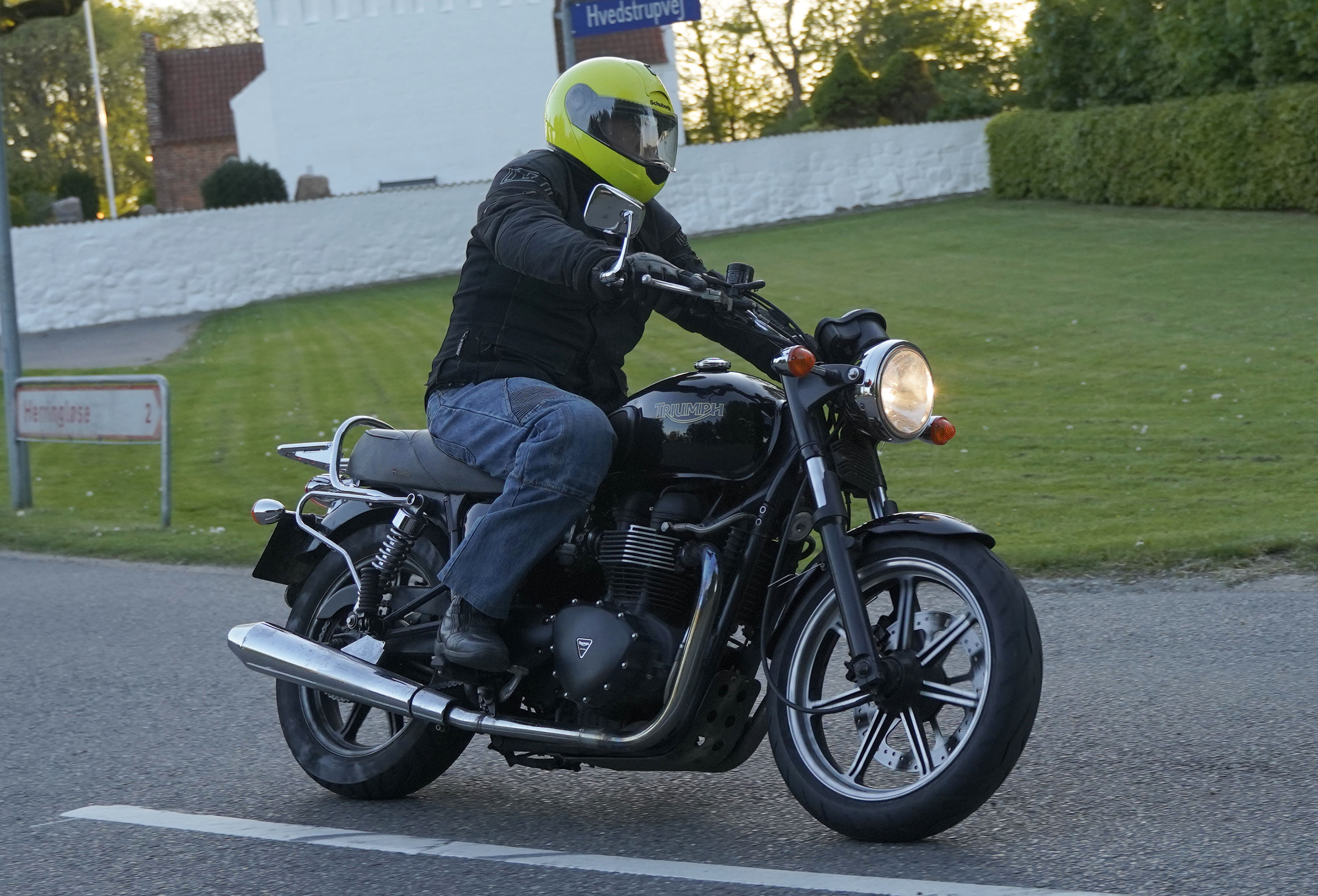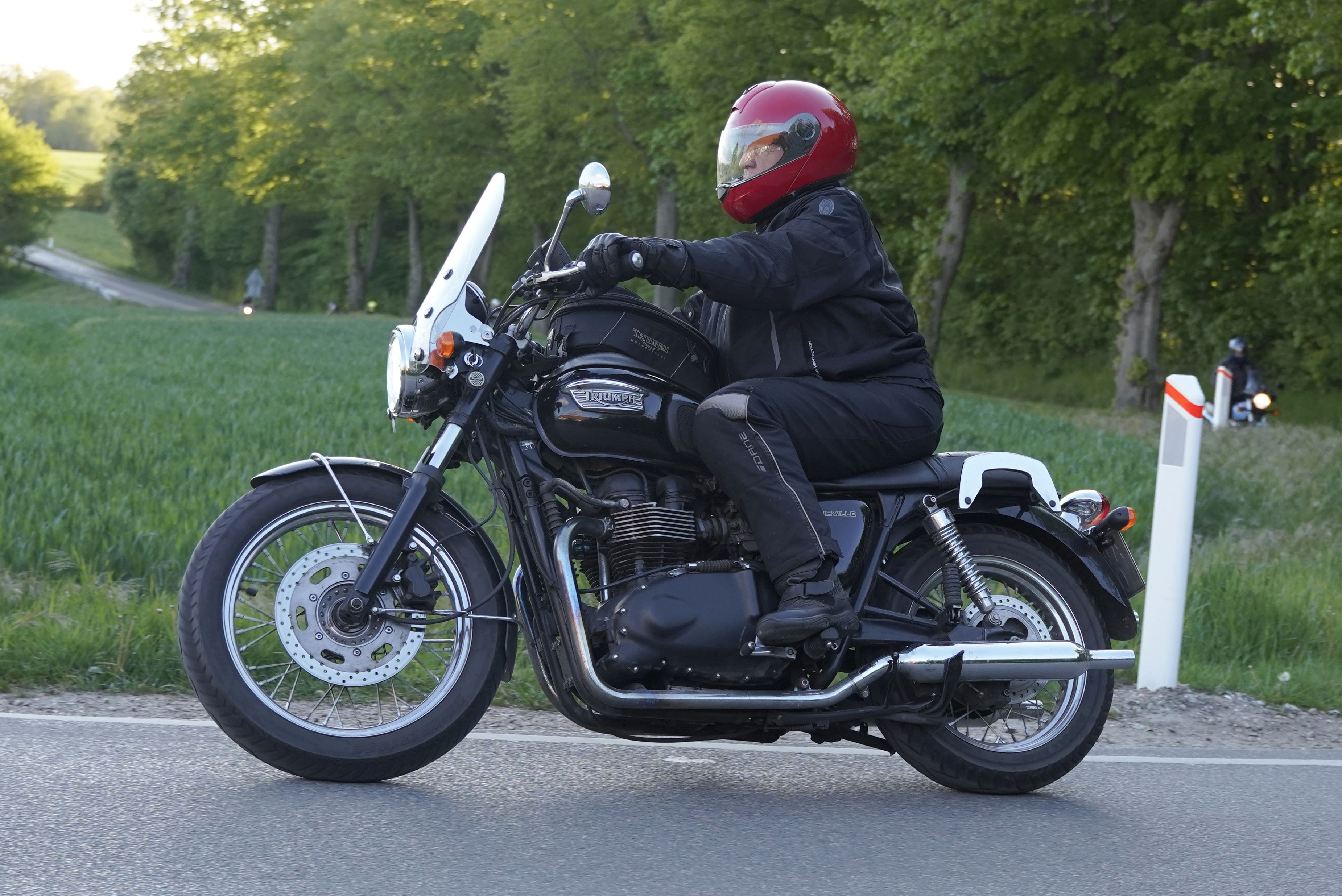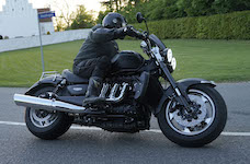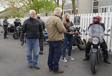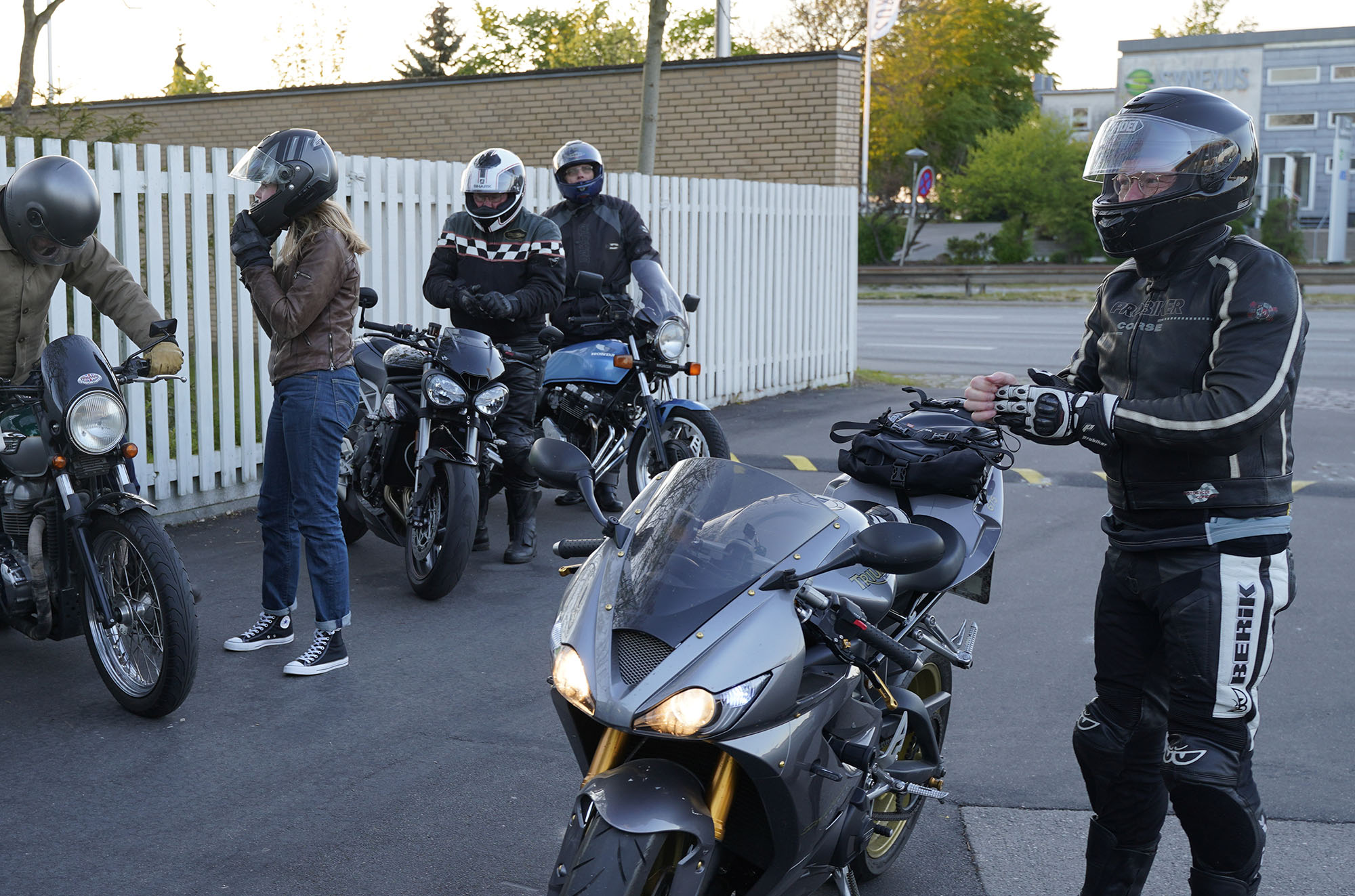 Jan på en sort Rocket III -14, Henrik på en sort Bonneville -04, Klaus på en hvid Street