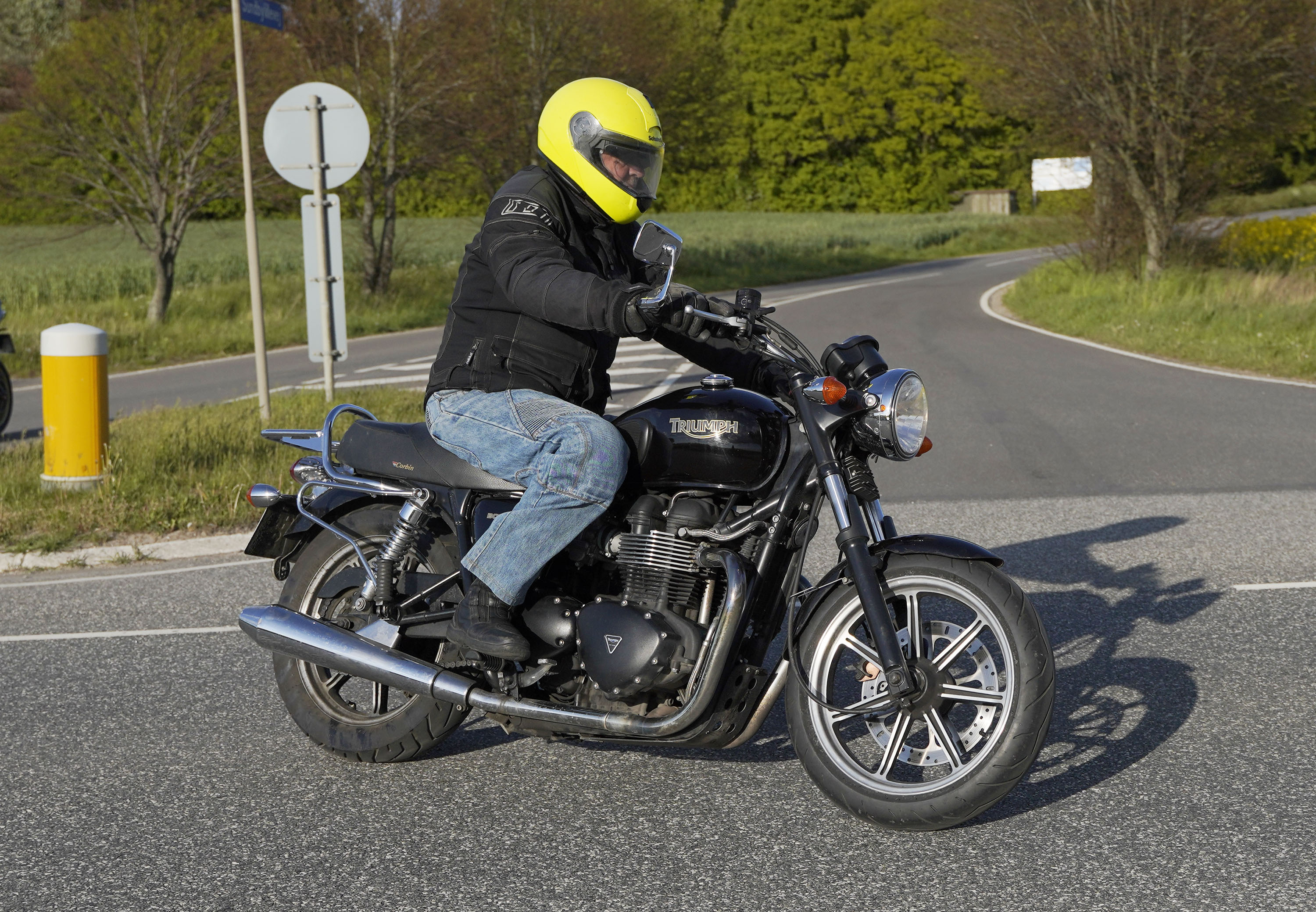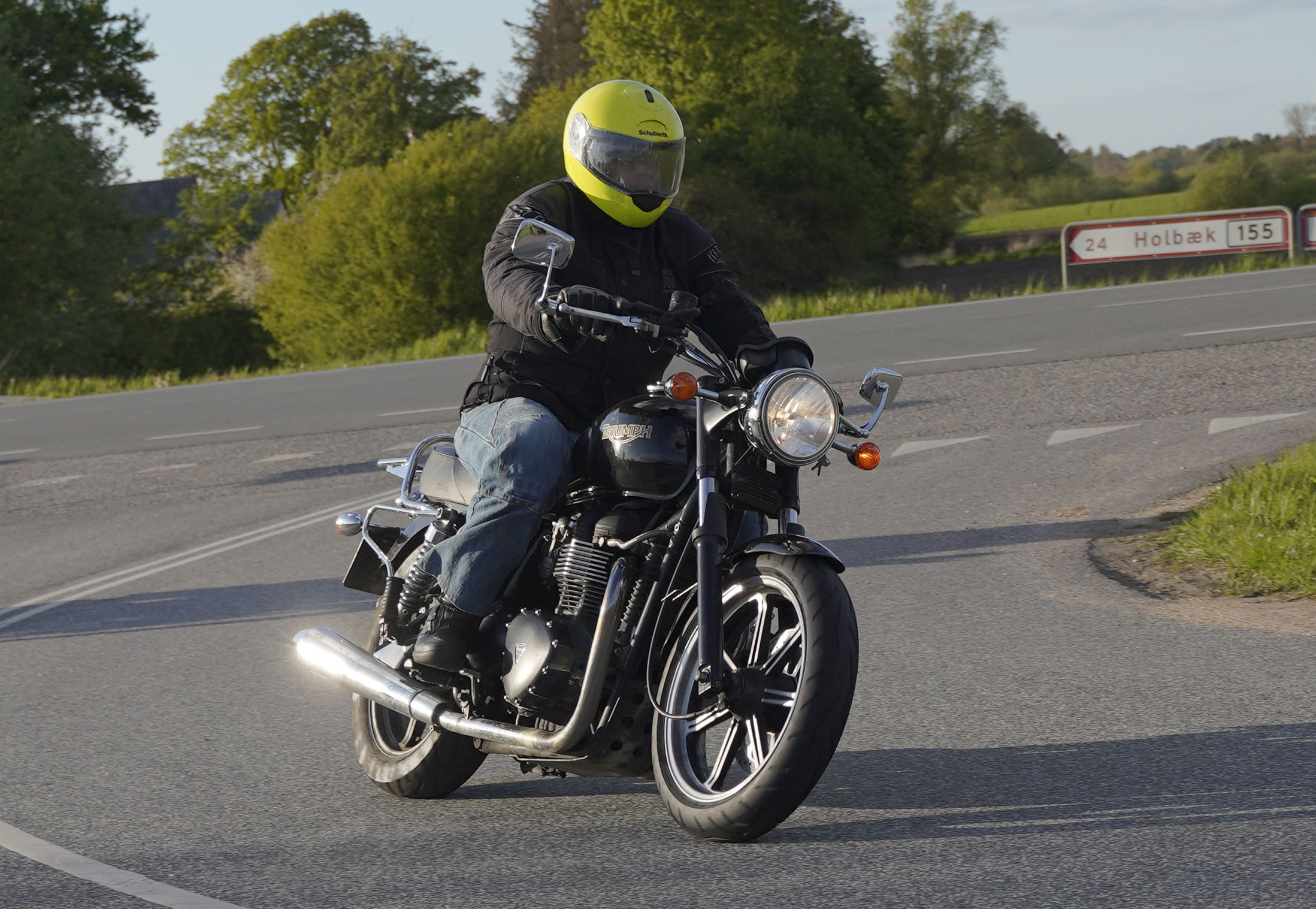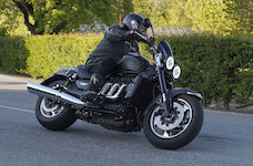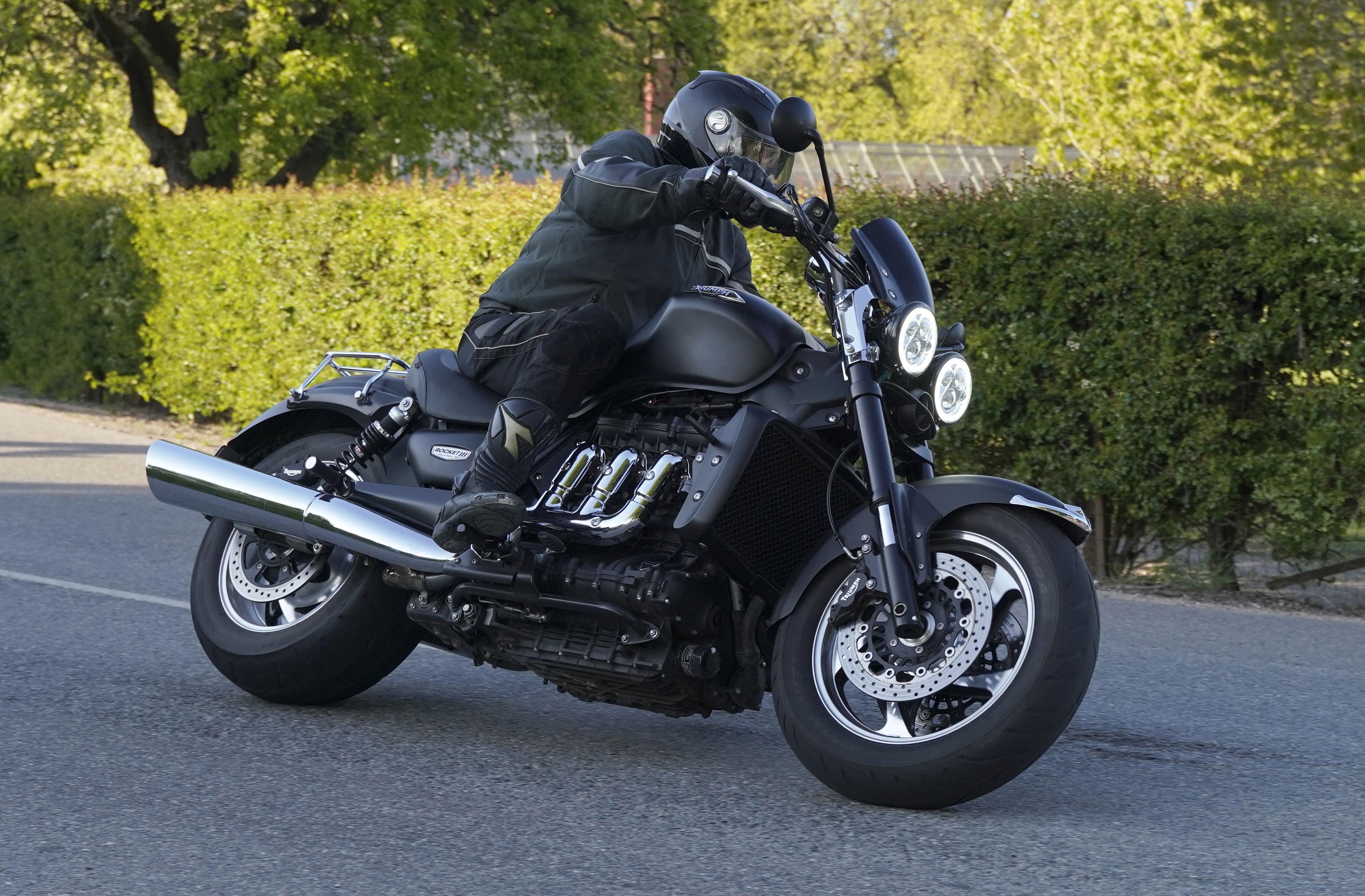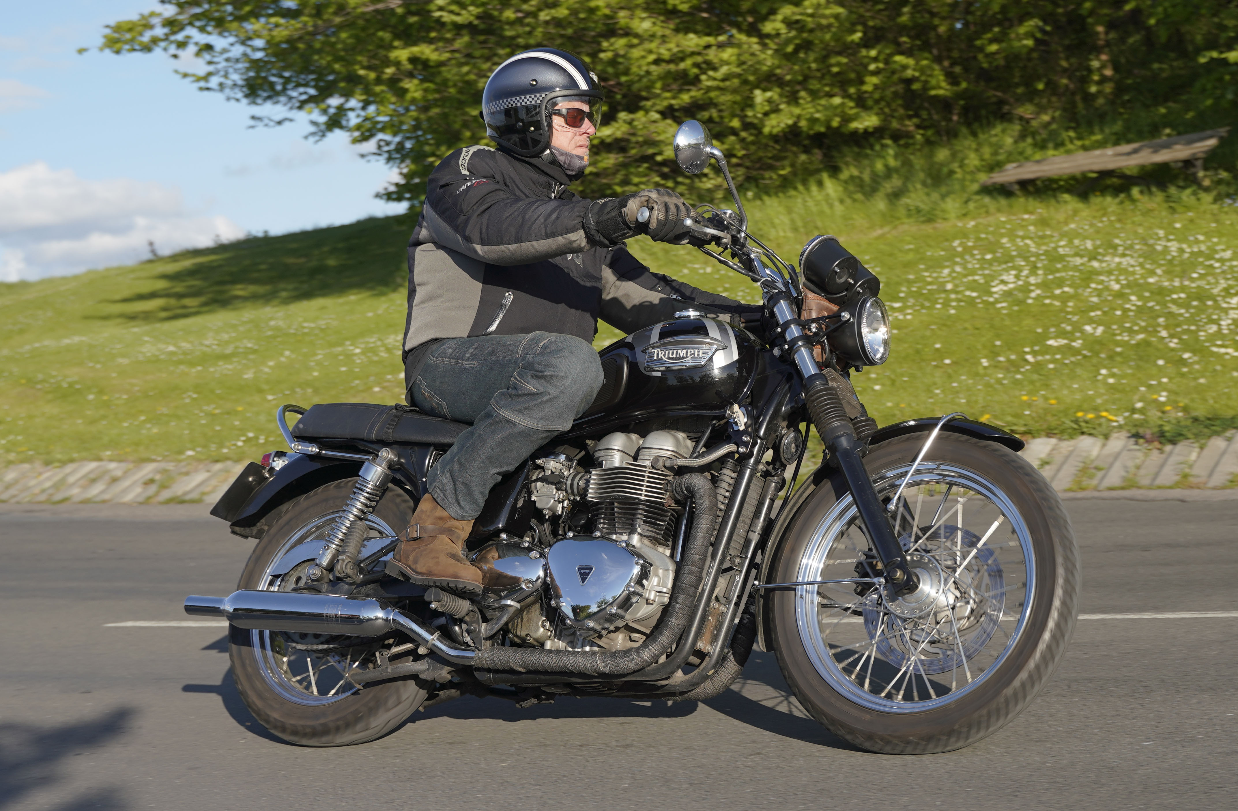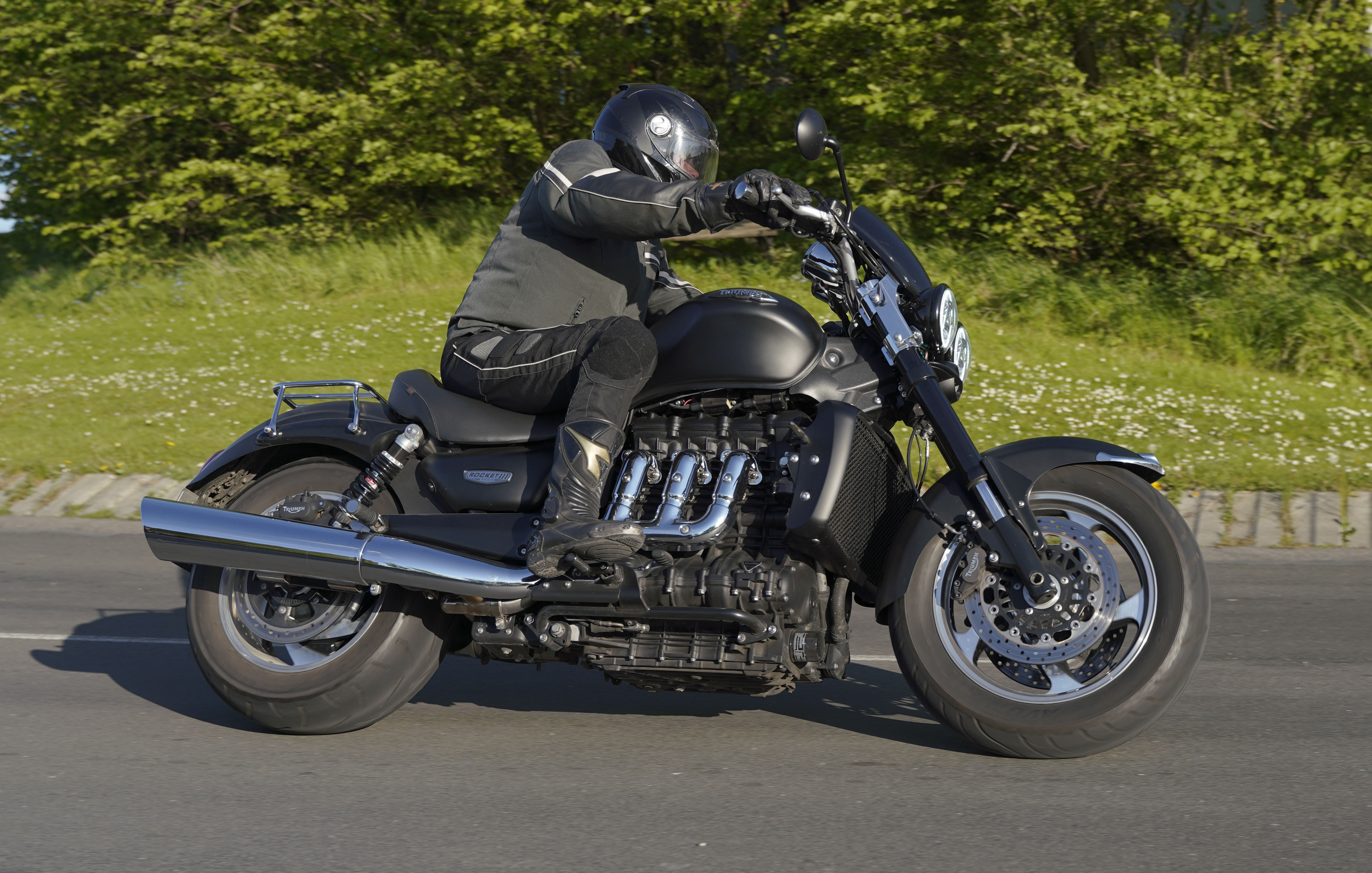Jan på en sort Rocket III -14, Henrik på en sort Bonneville -04, Klaus på en hvid Street