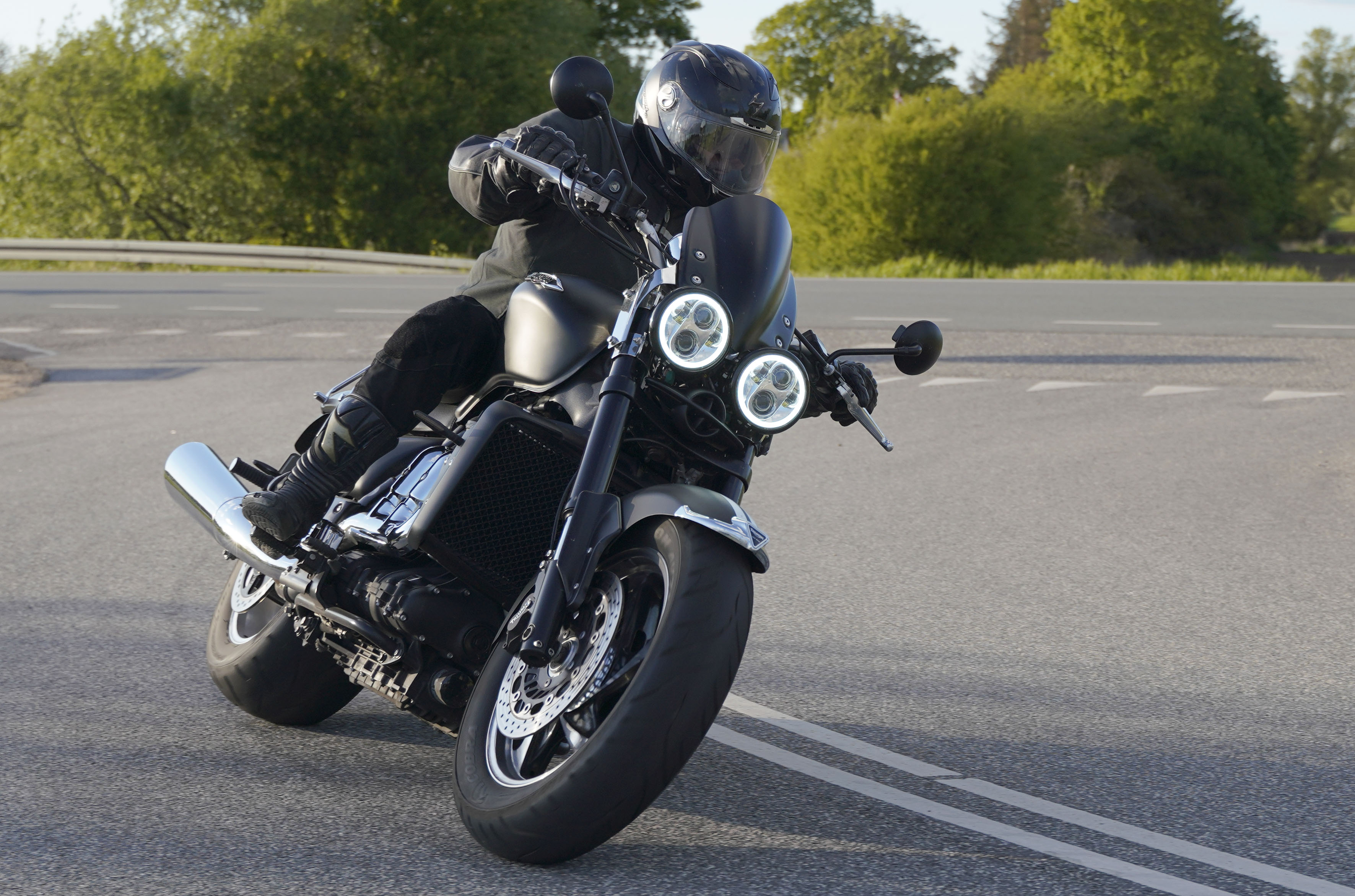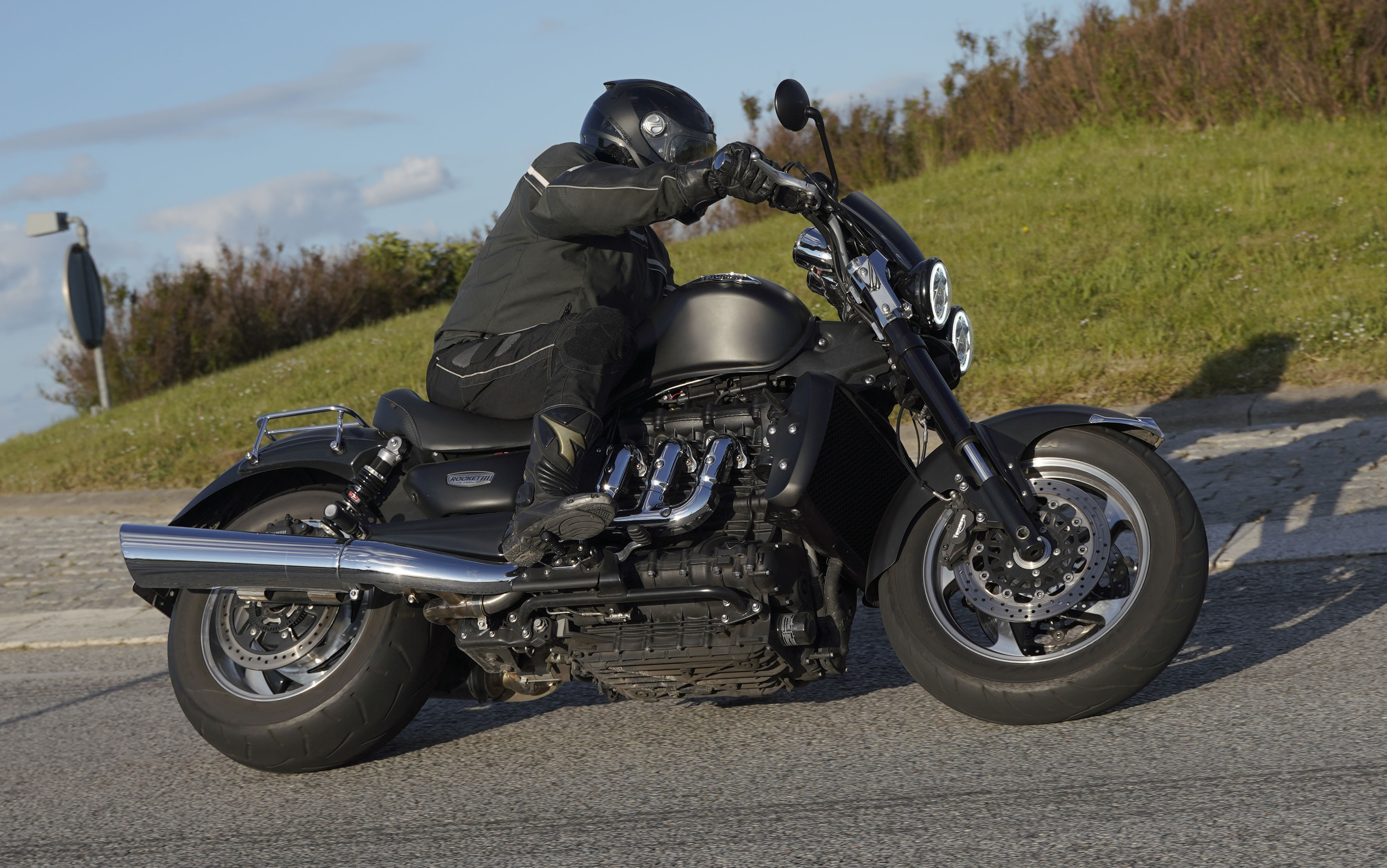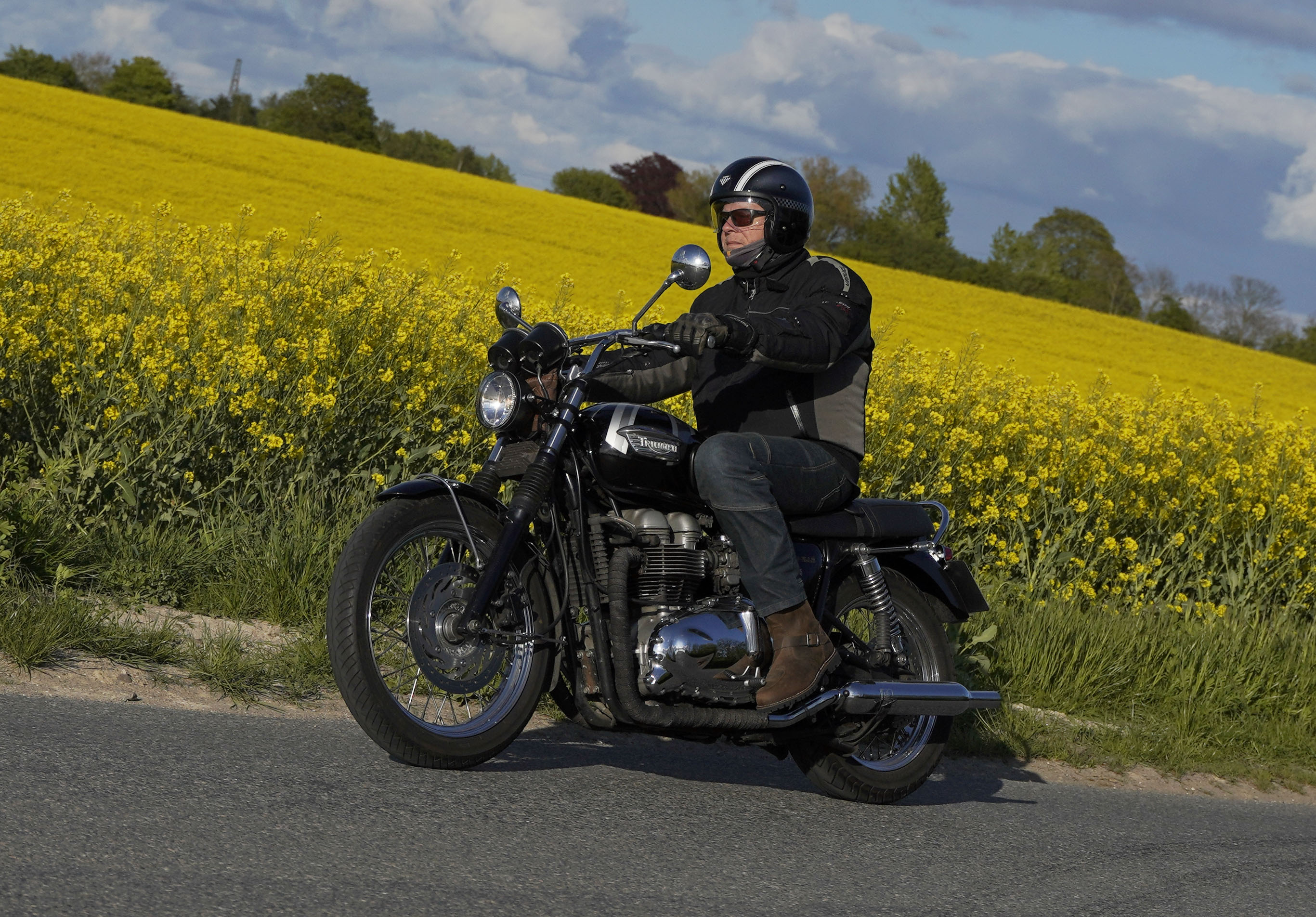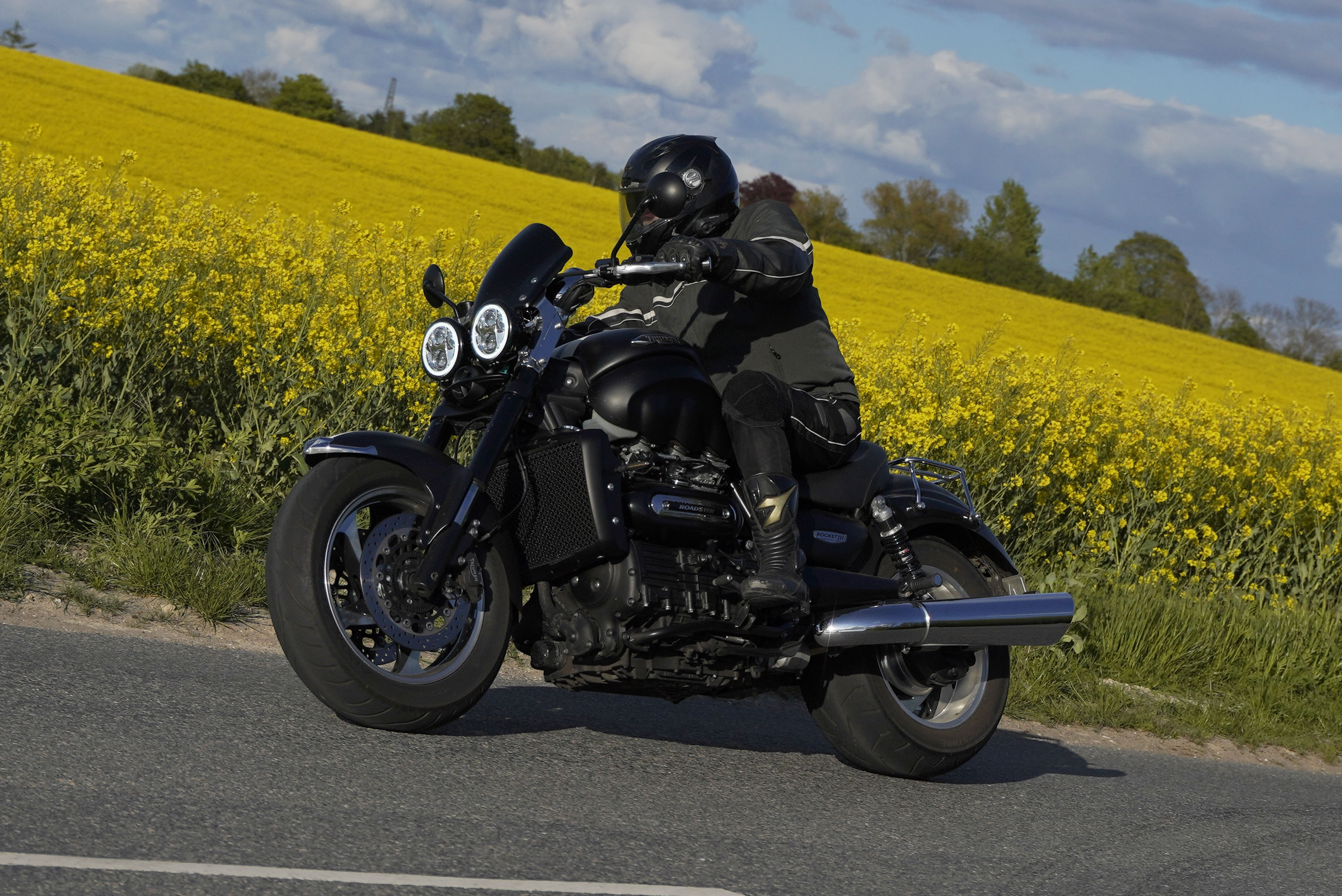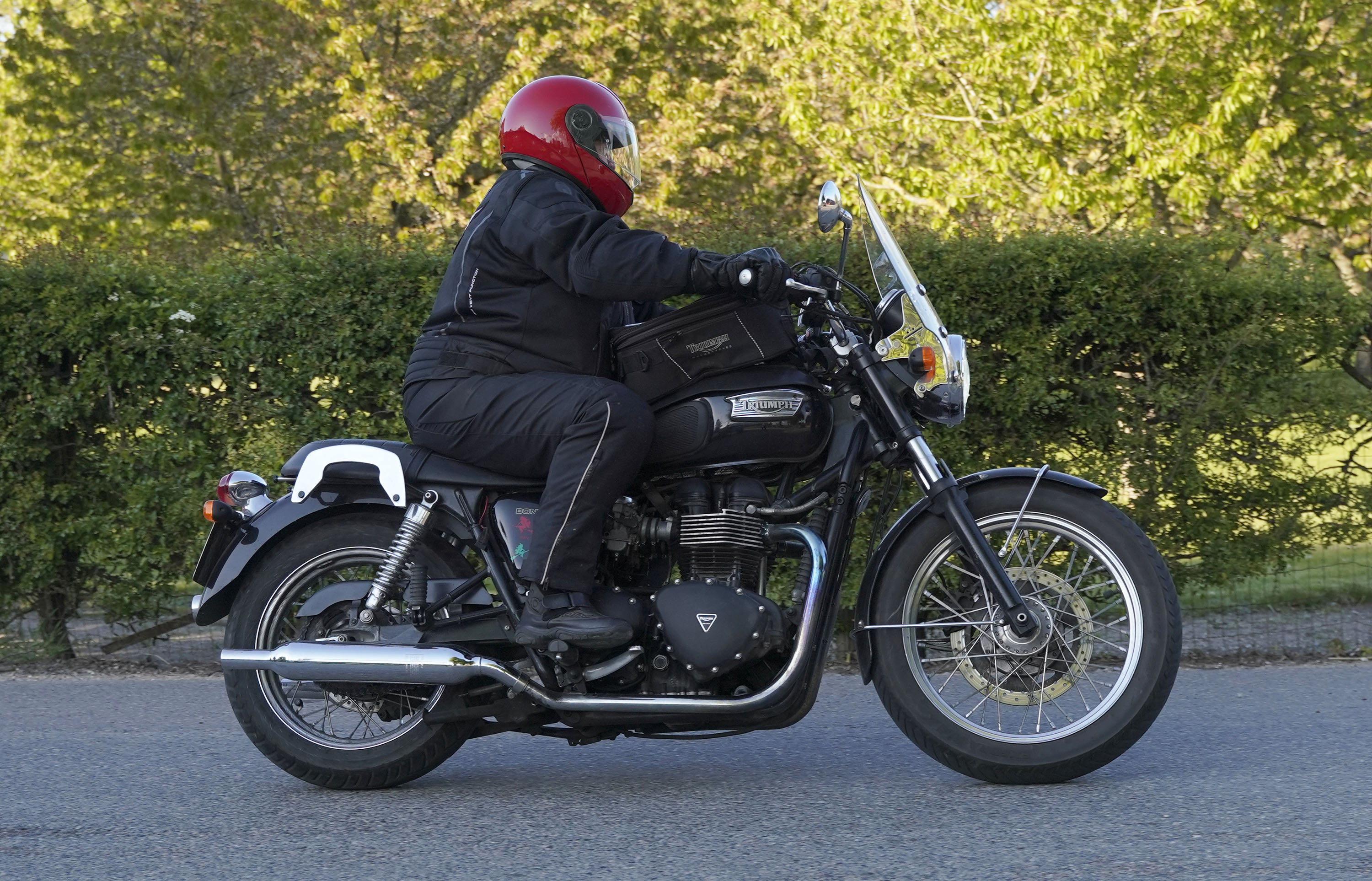 Jan på en sort Rocket III -14, Henrik på en sort Bonneville -04, Klaus på en hvid Street