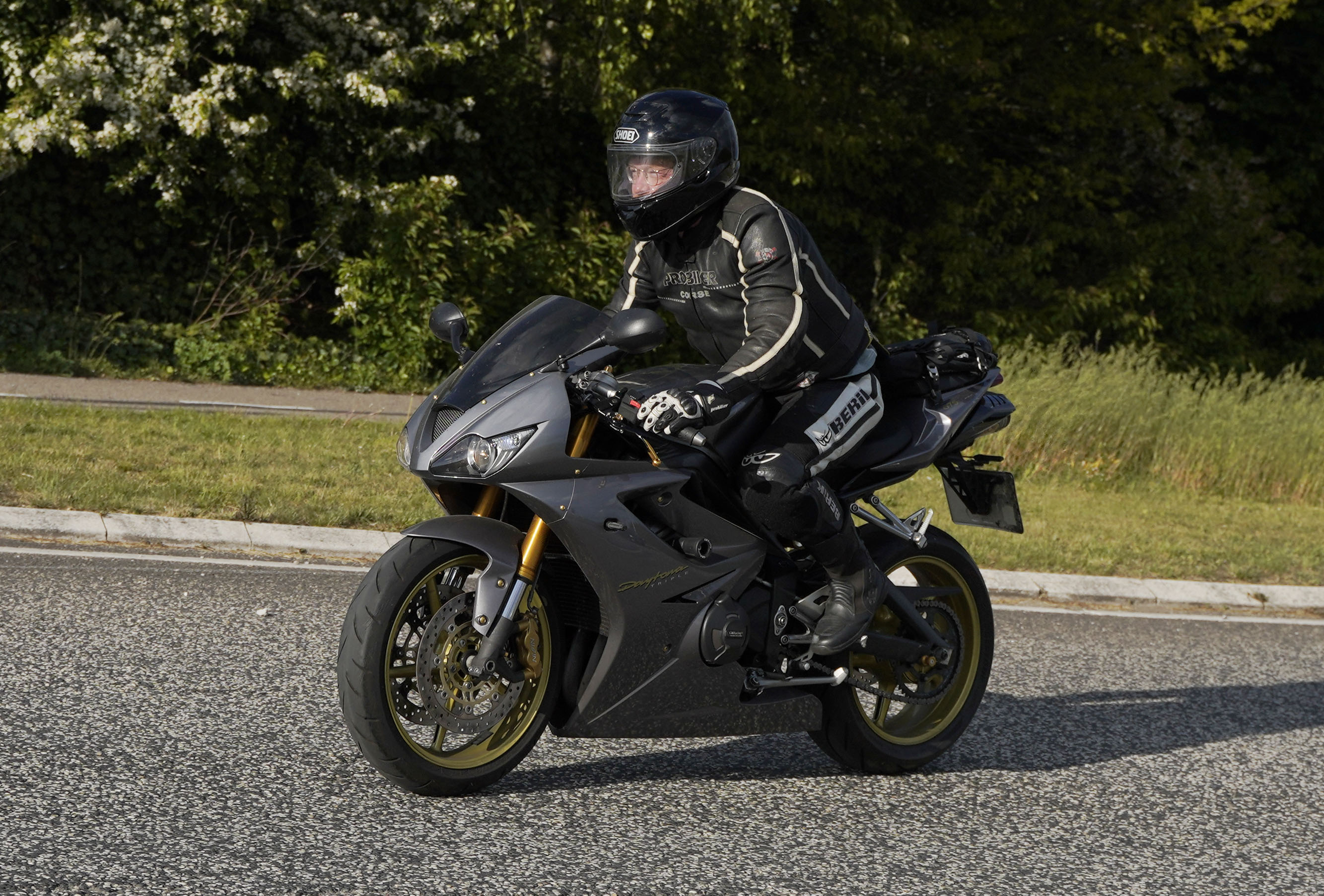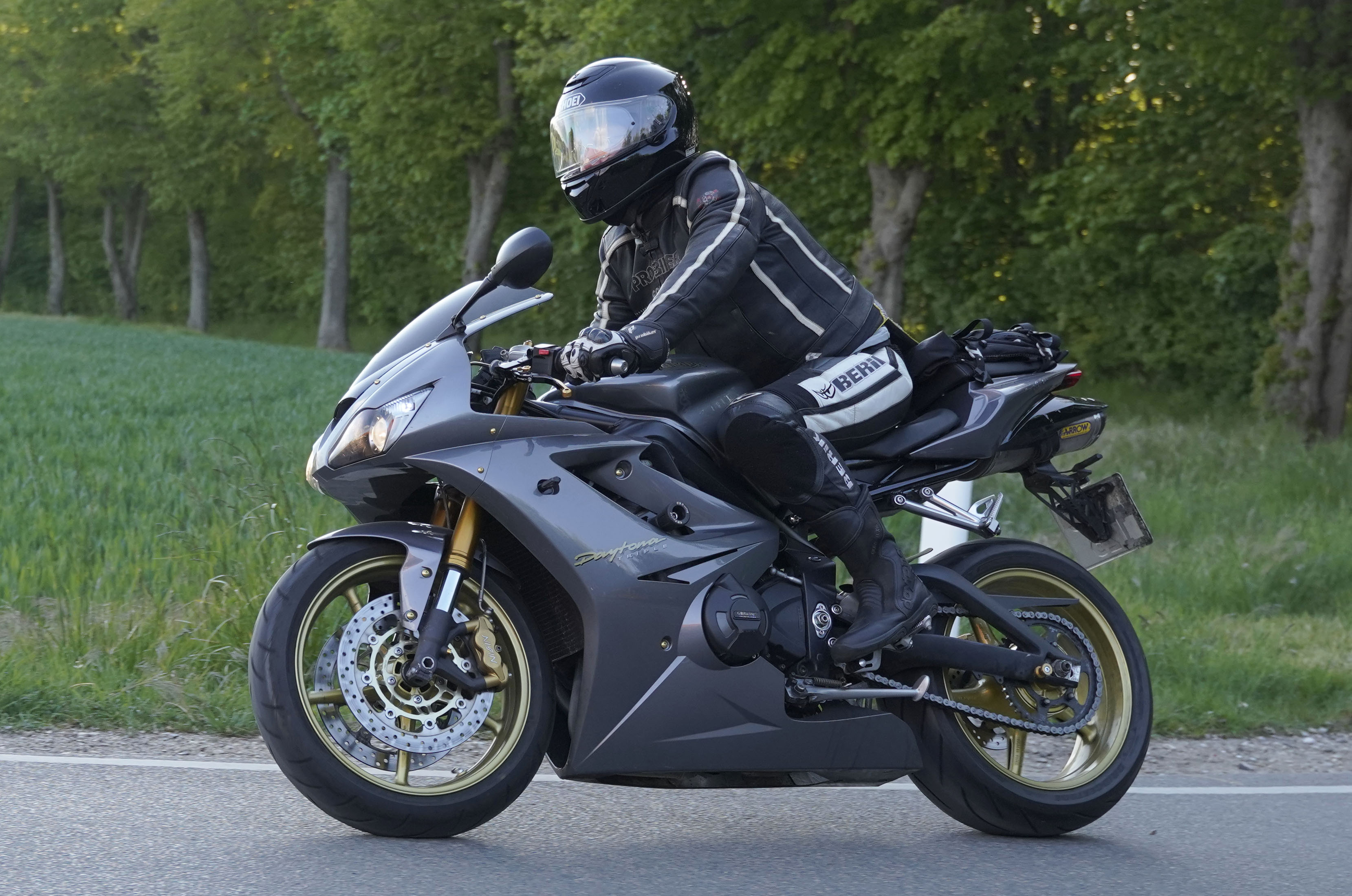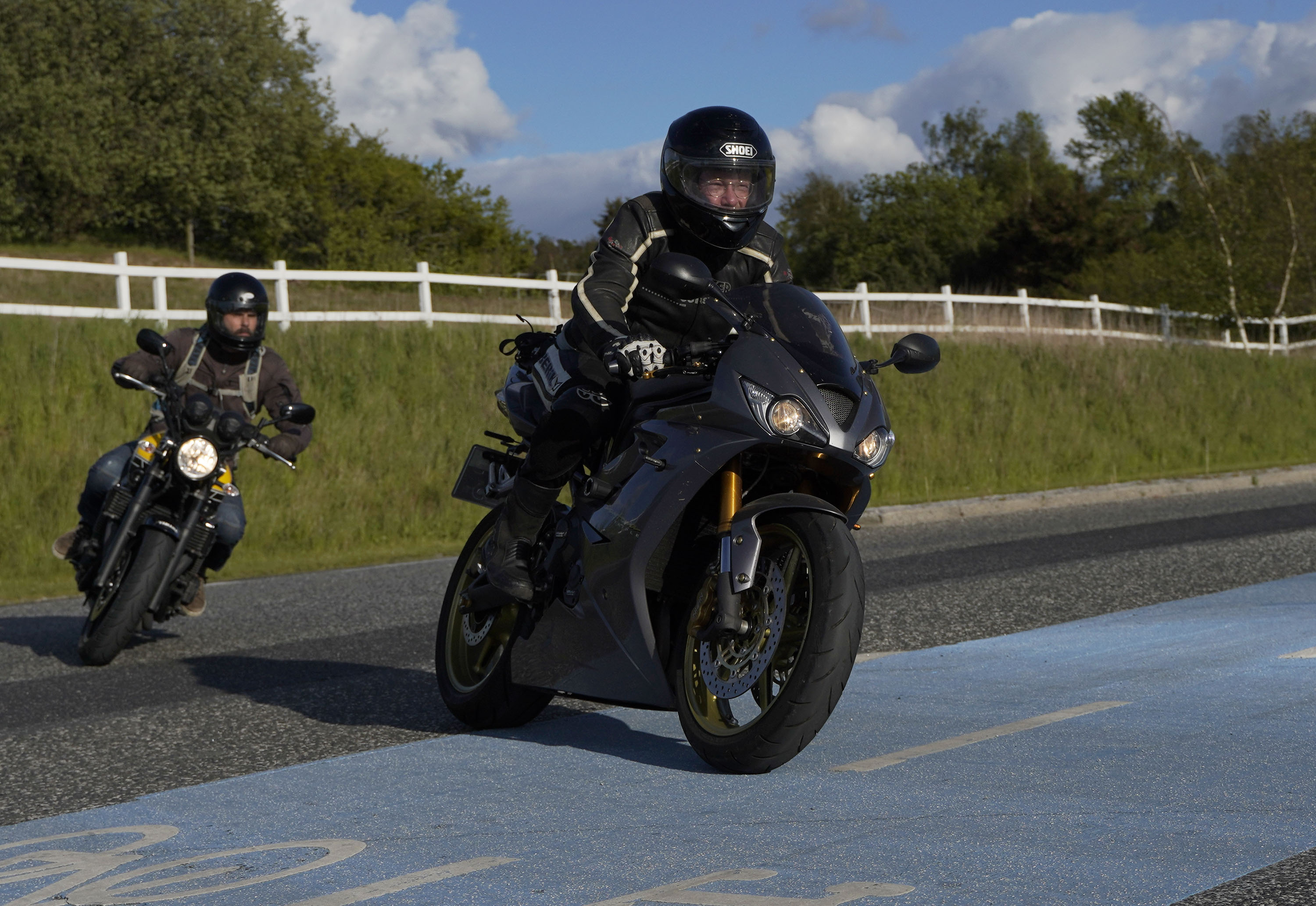Claus på en grå Daytona 675 -07, Torben på en mørkeblå BMW 1300 -10,