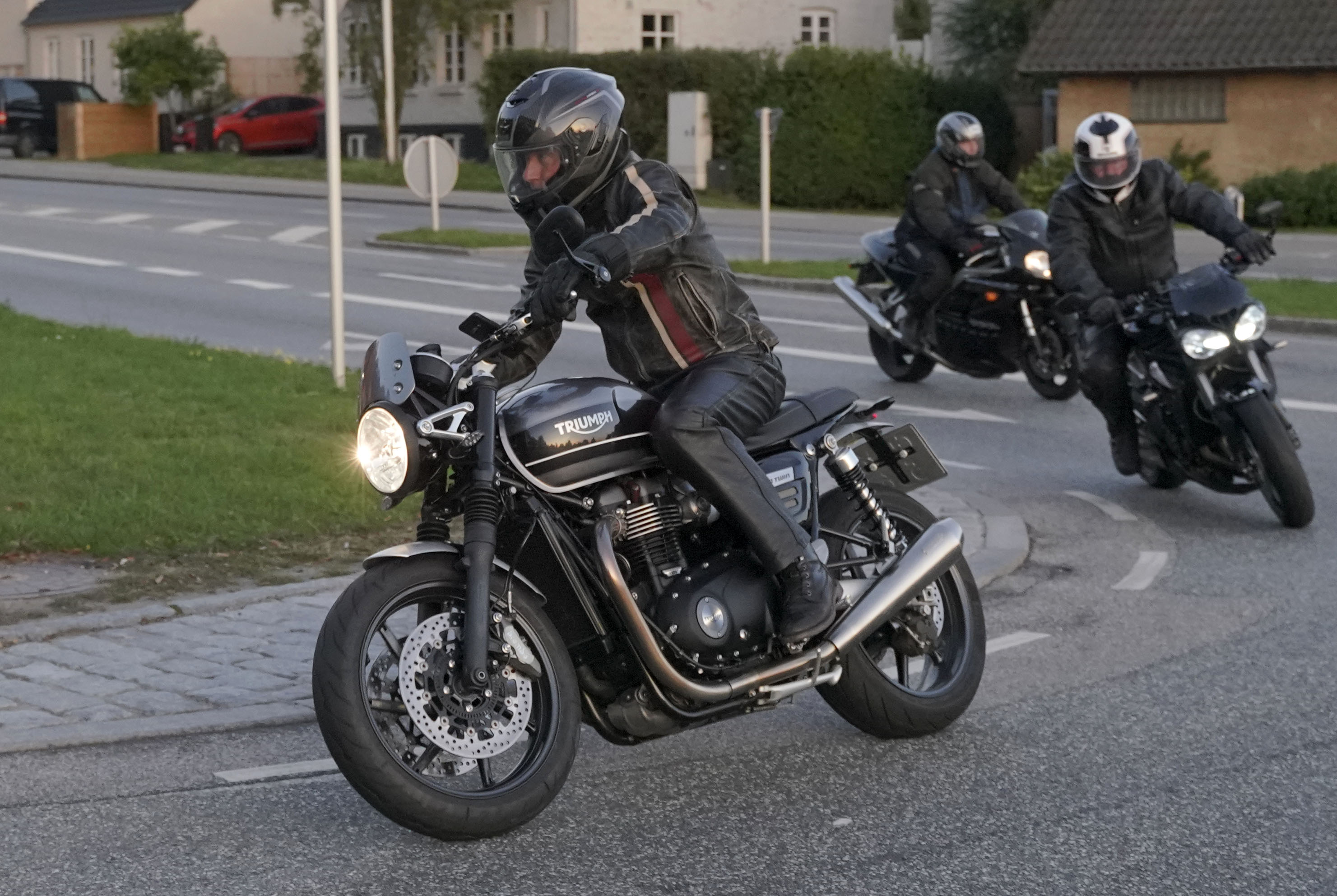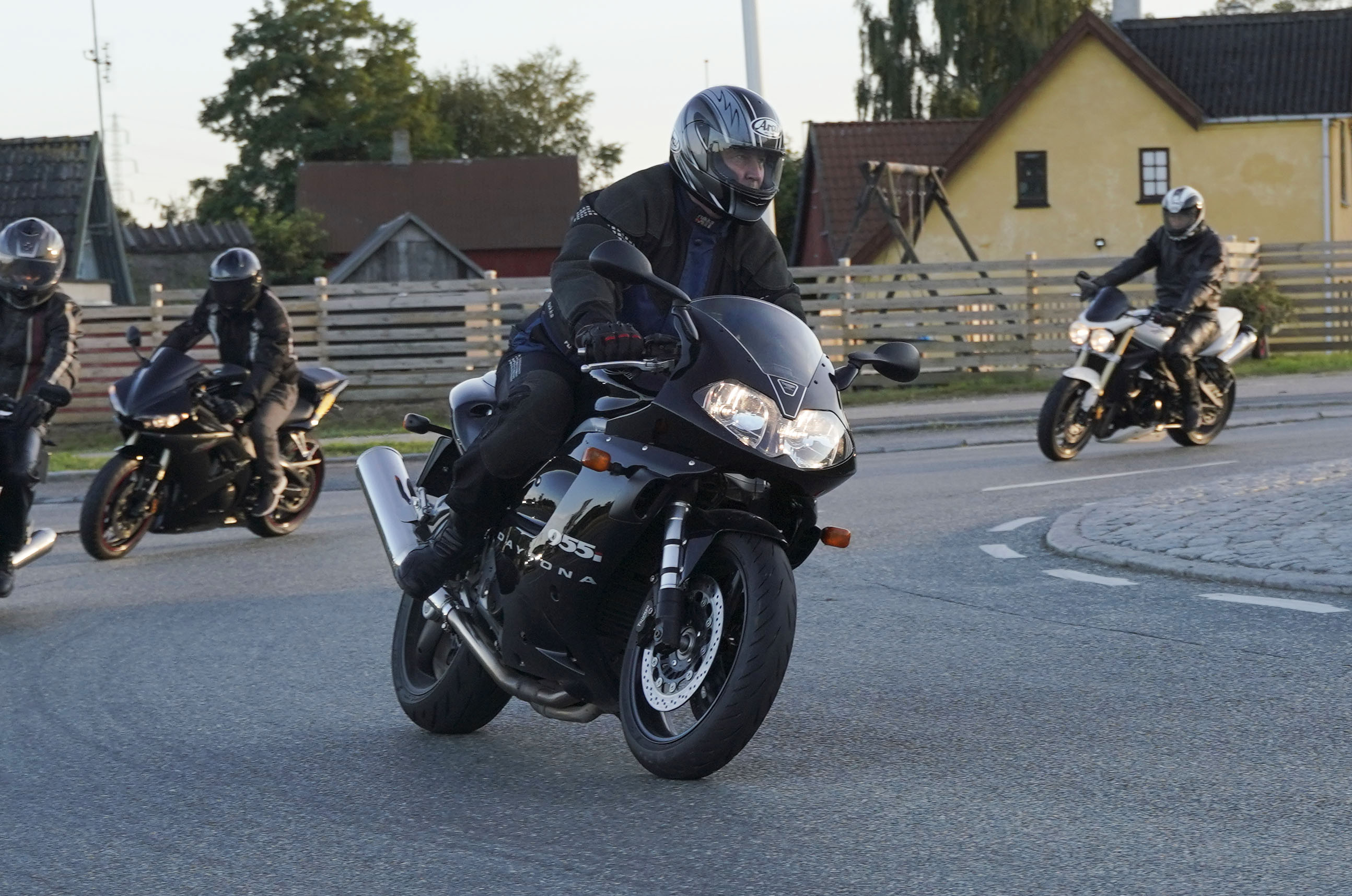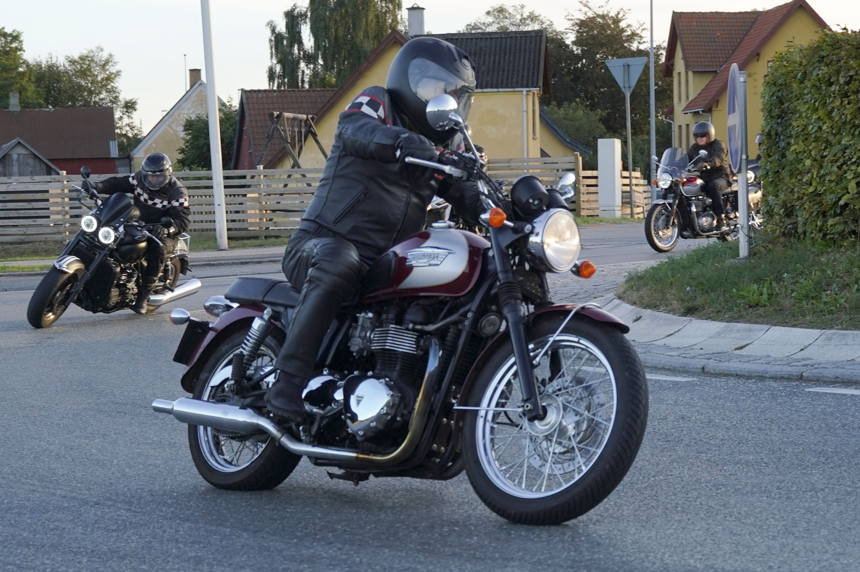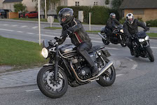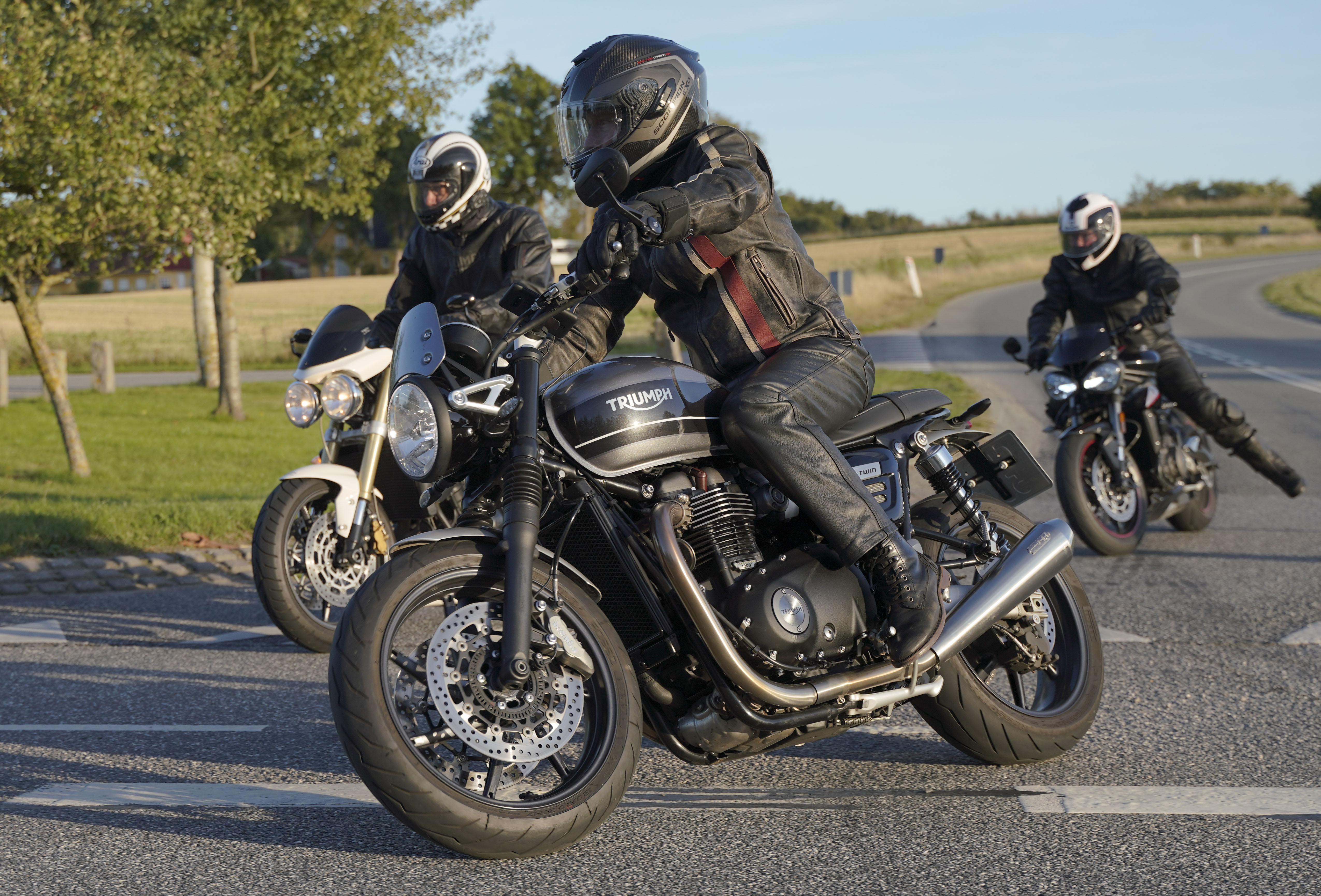 Så kommer Ib på en Street Triple RS -18, Mogens på en sort Bonneville -07, Jan på
