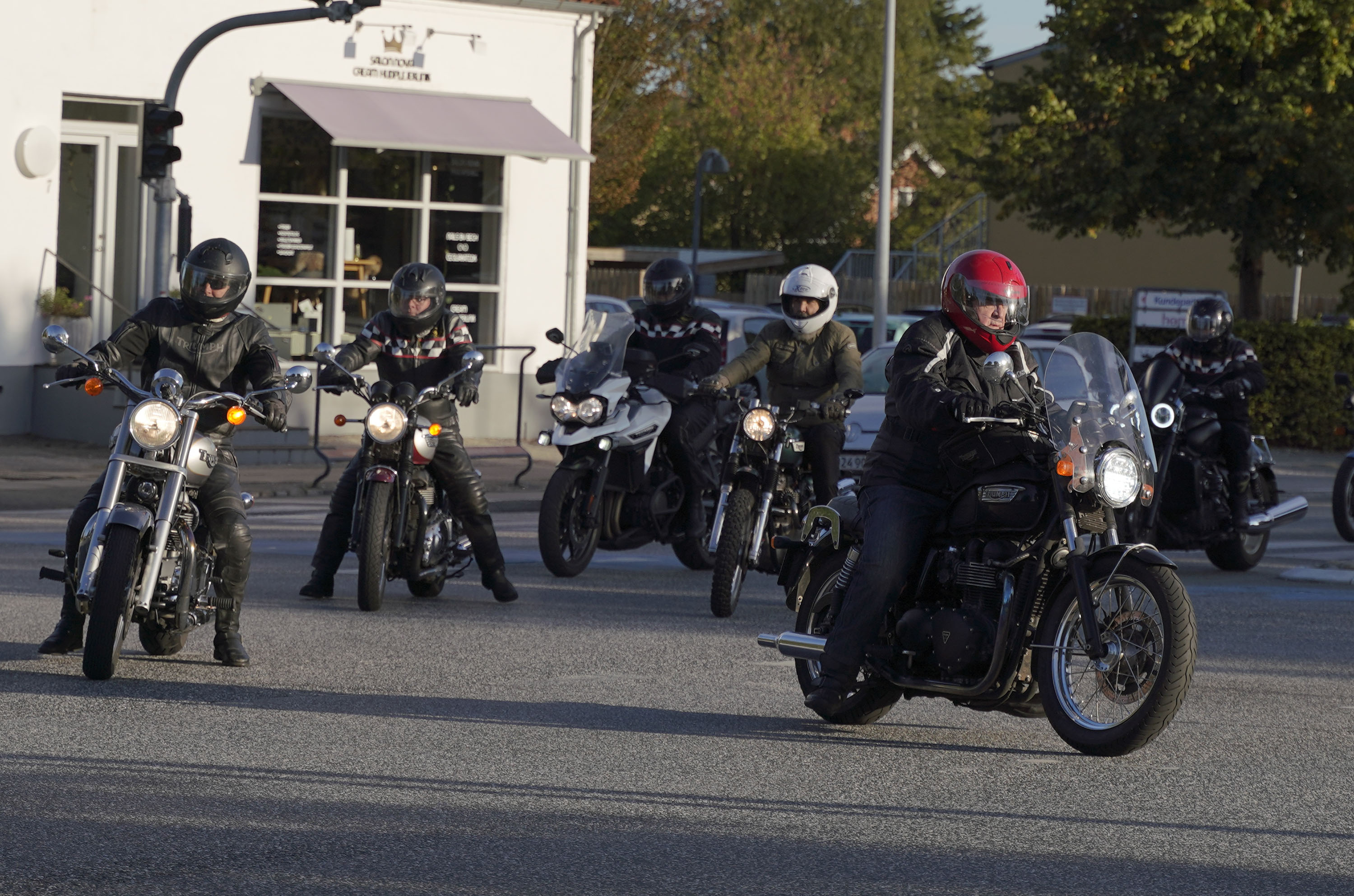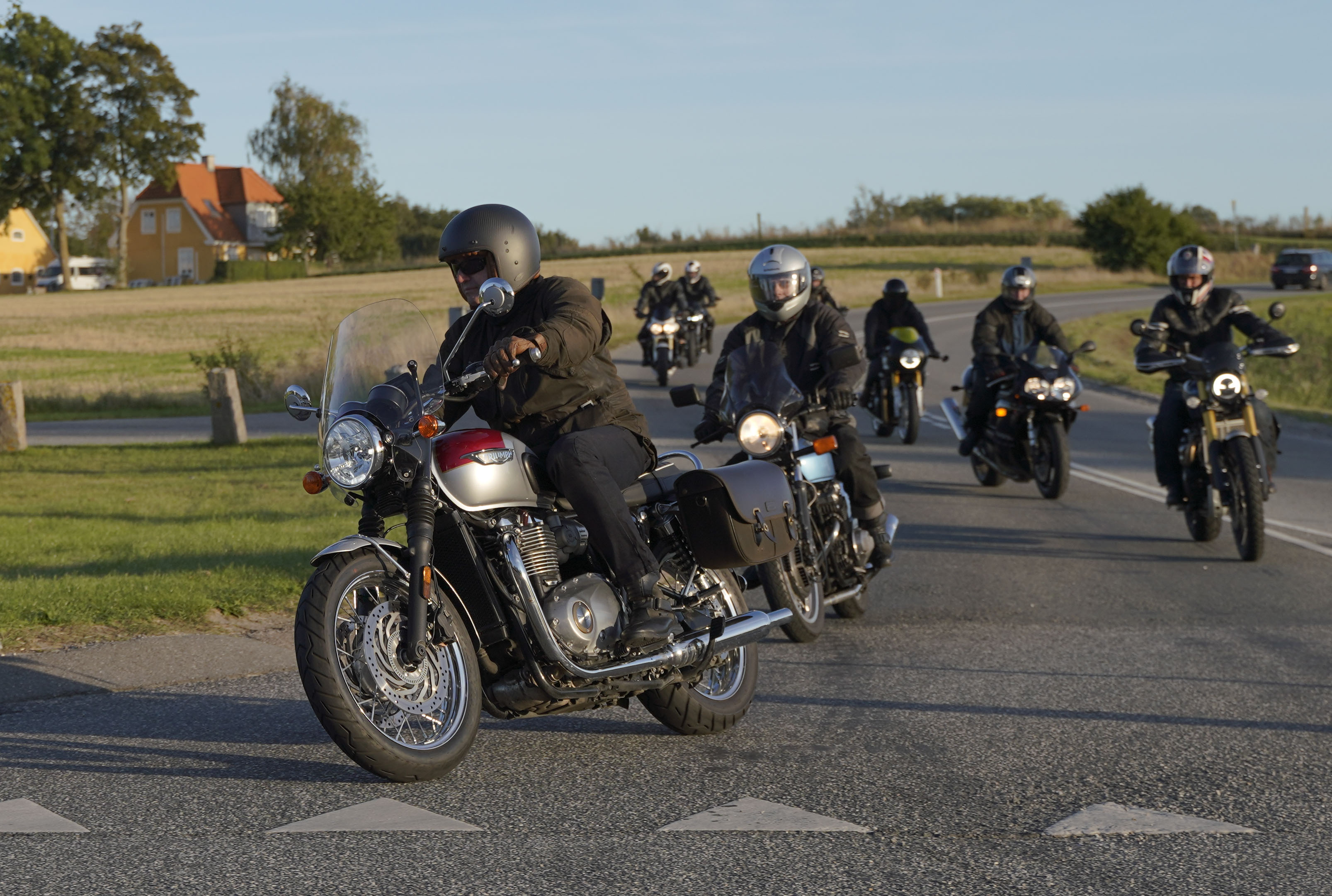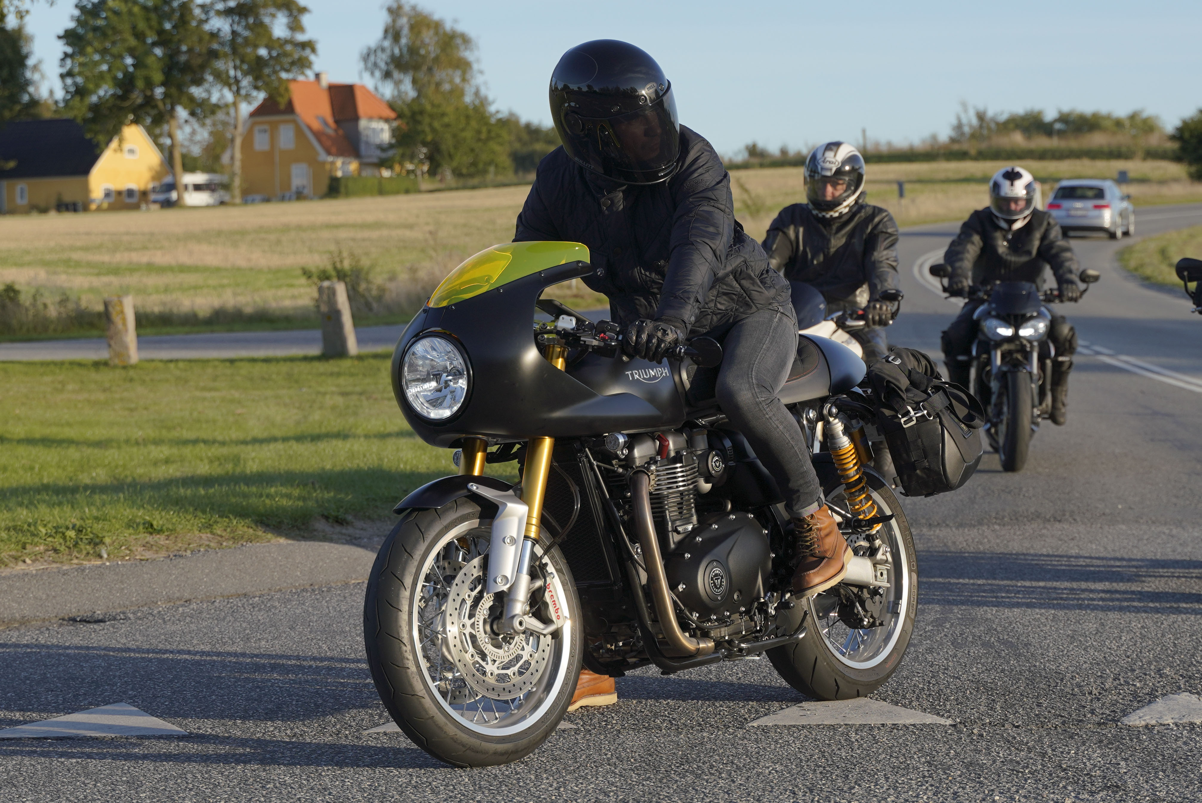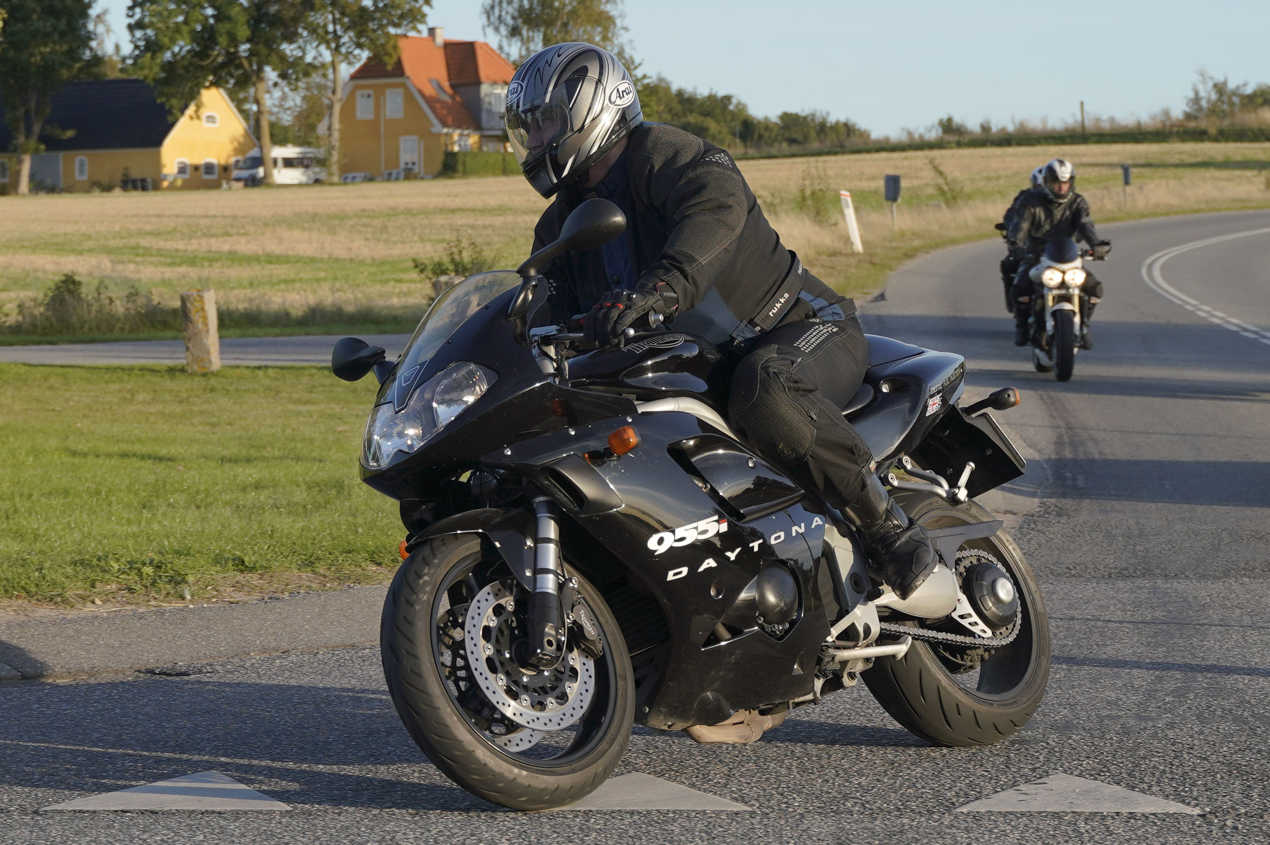 Så kommer Ib på en Street Triple RS -18, Mogens på en sort Bonneville -07, Jan på