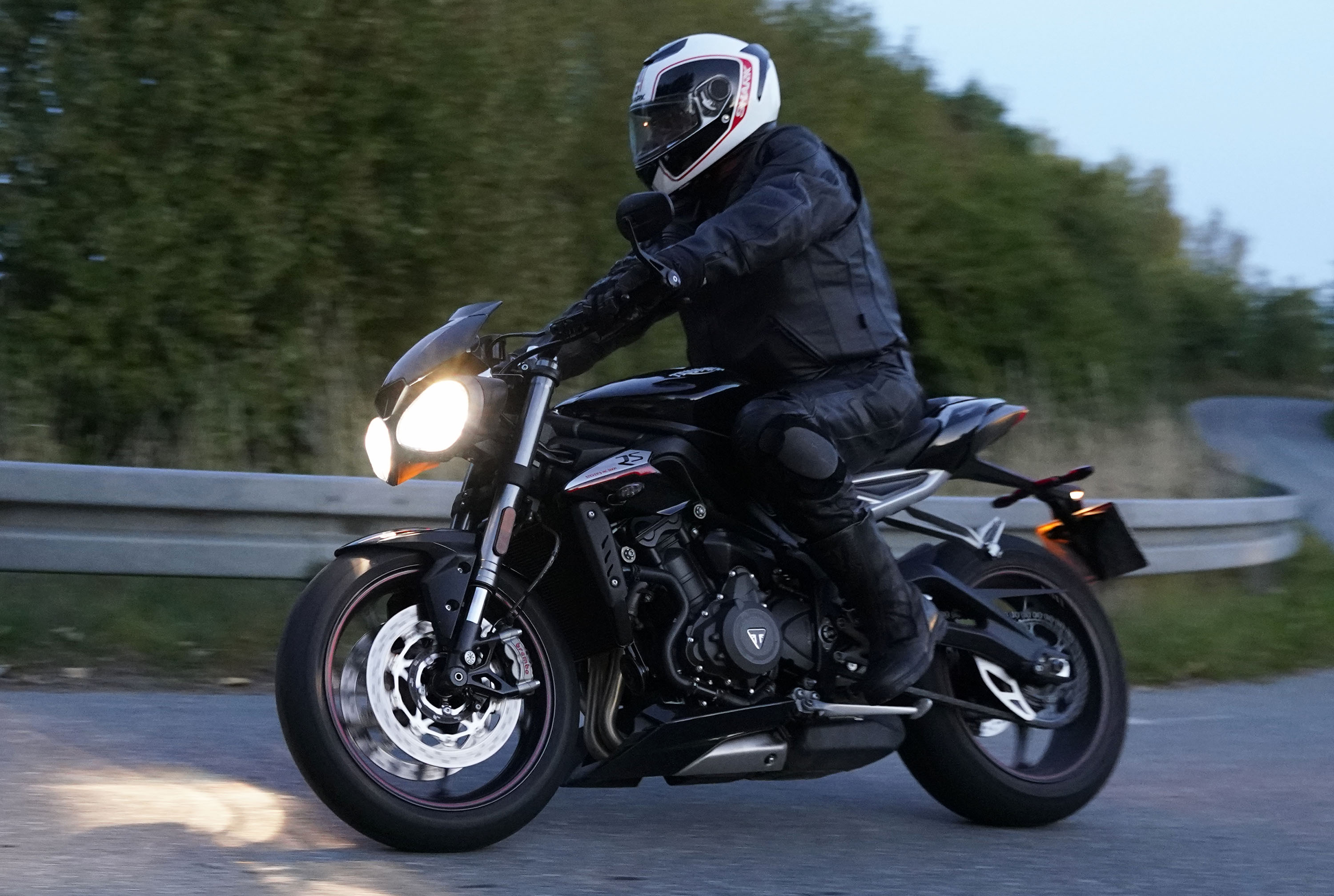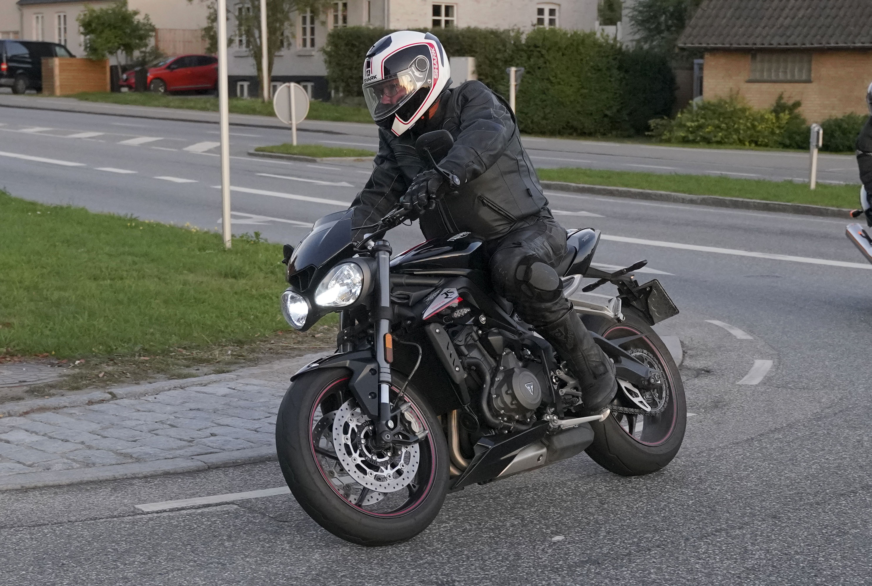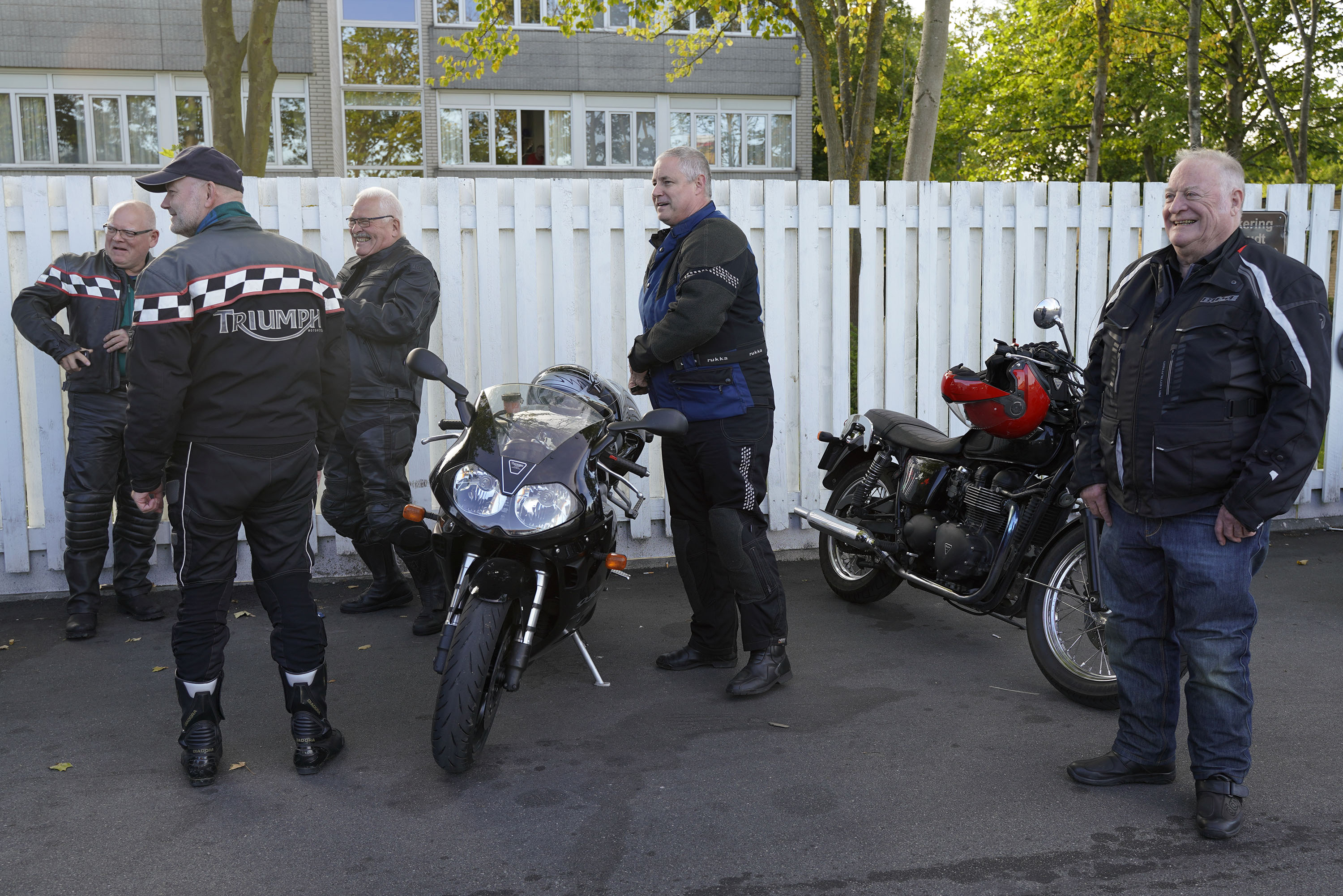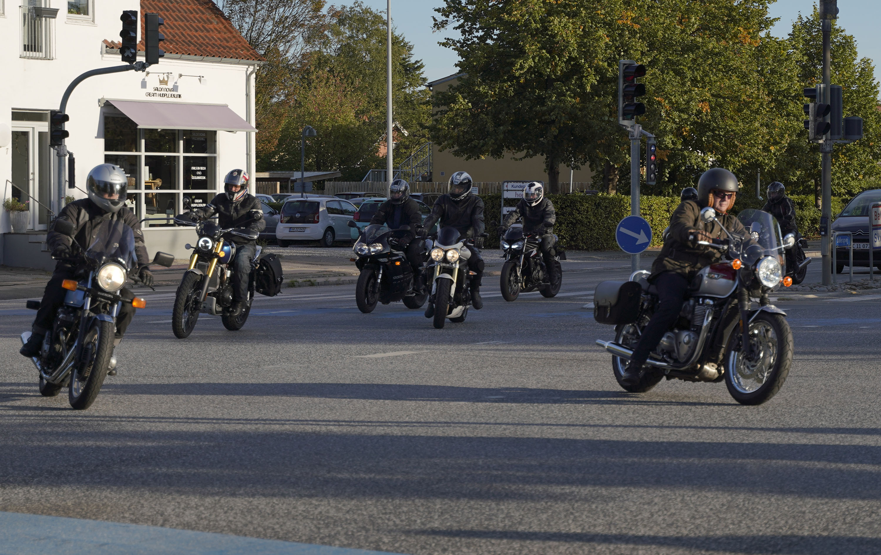 Så kommer Ib på en Street Triple RS -18, Mogens på en sort Bonneville -07, Jan på