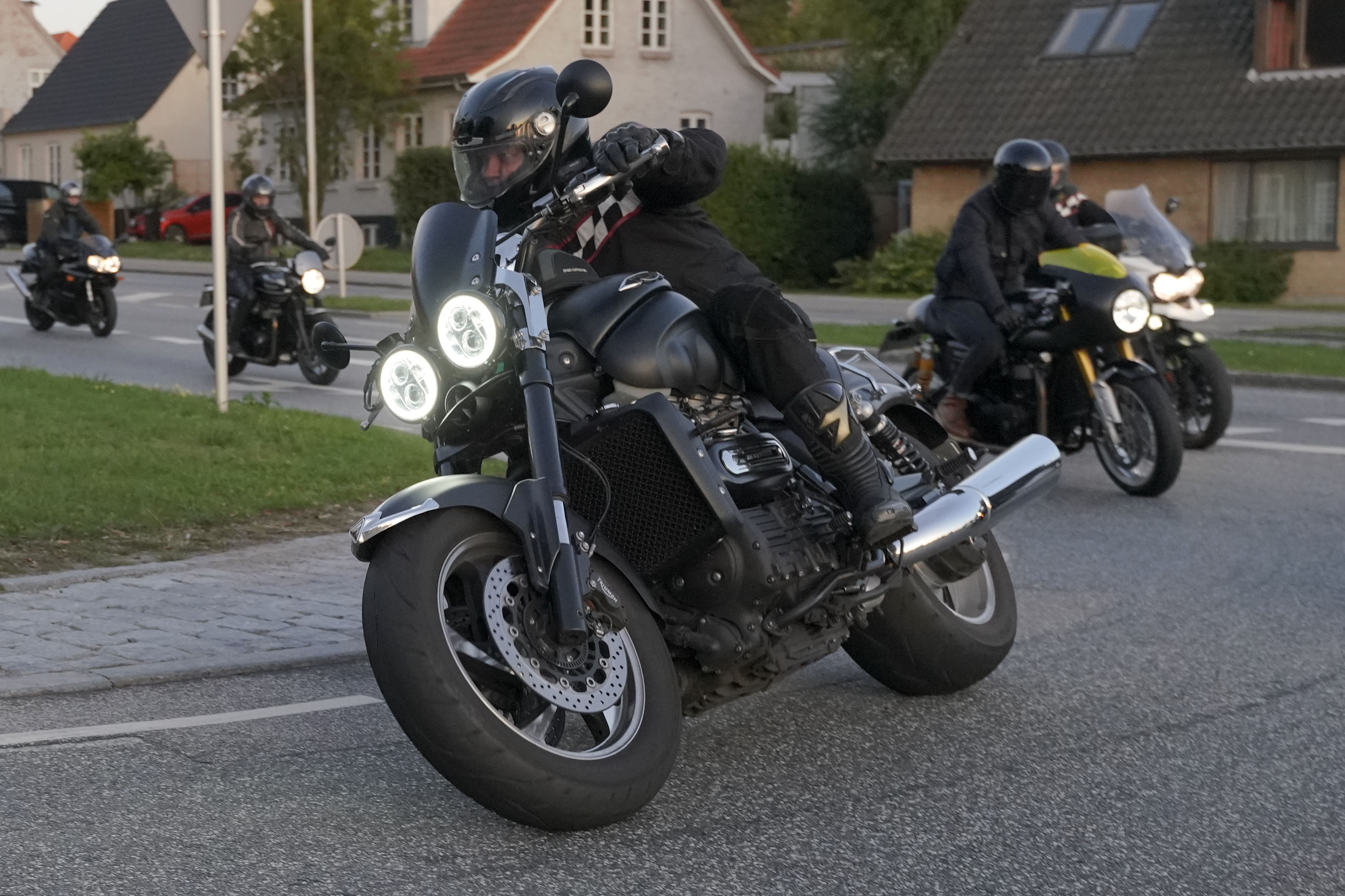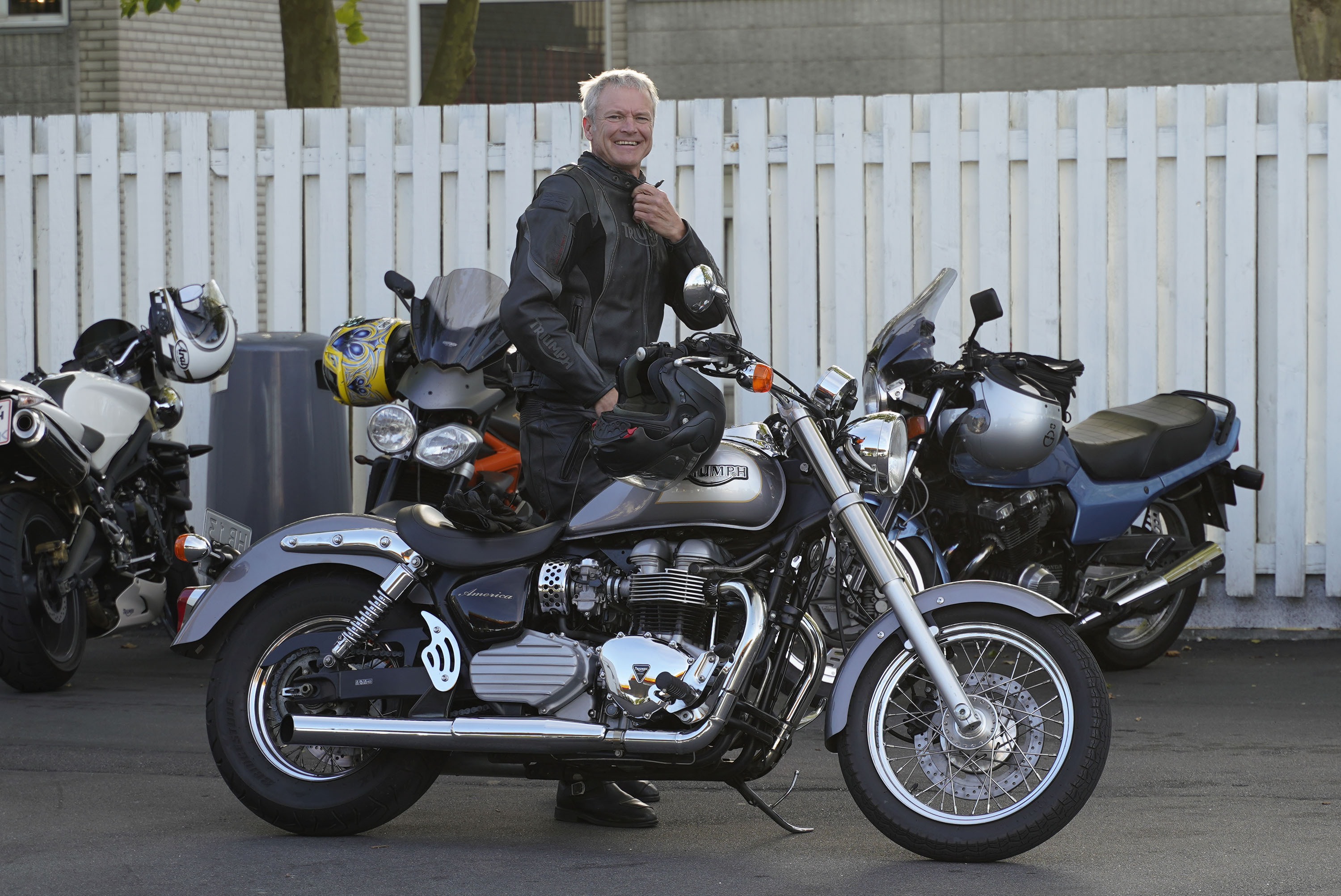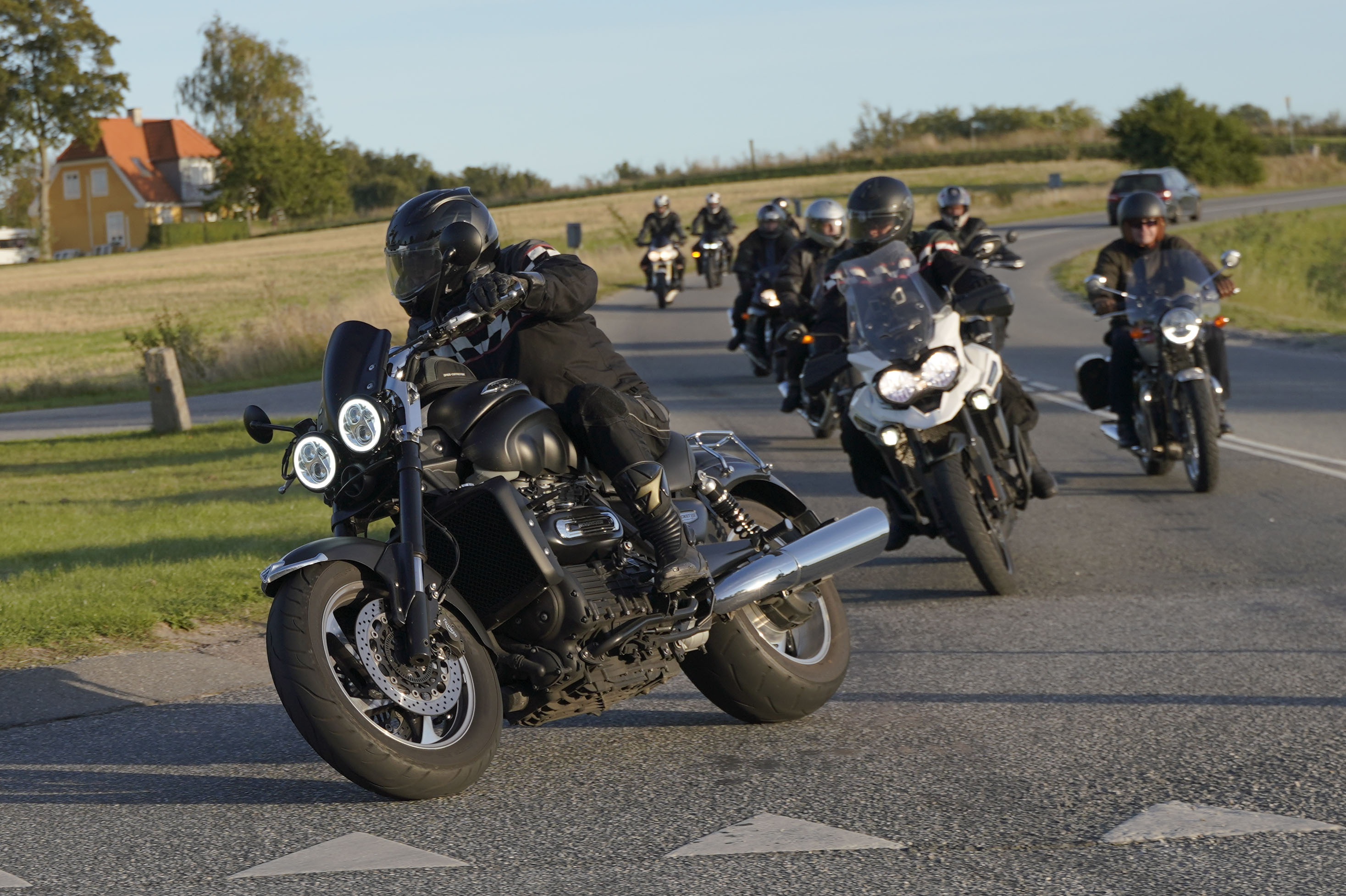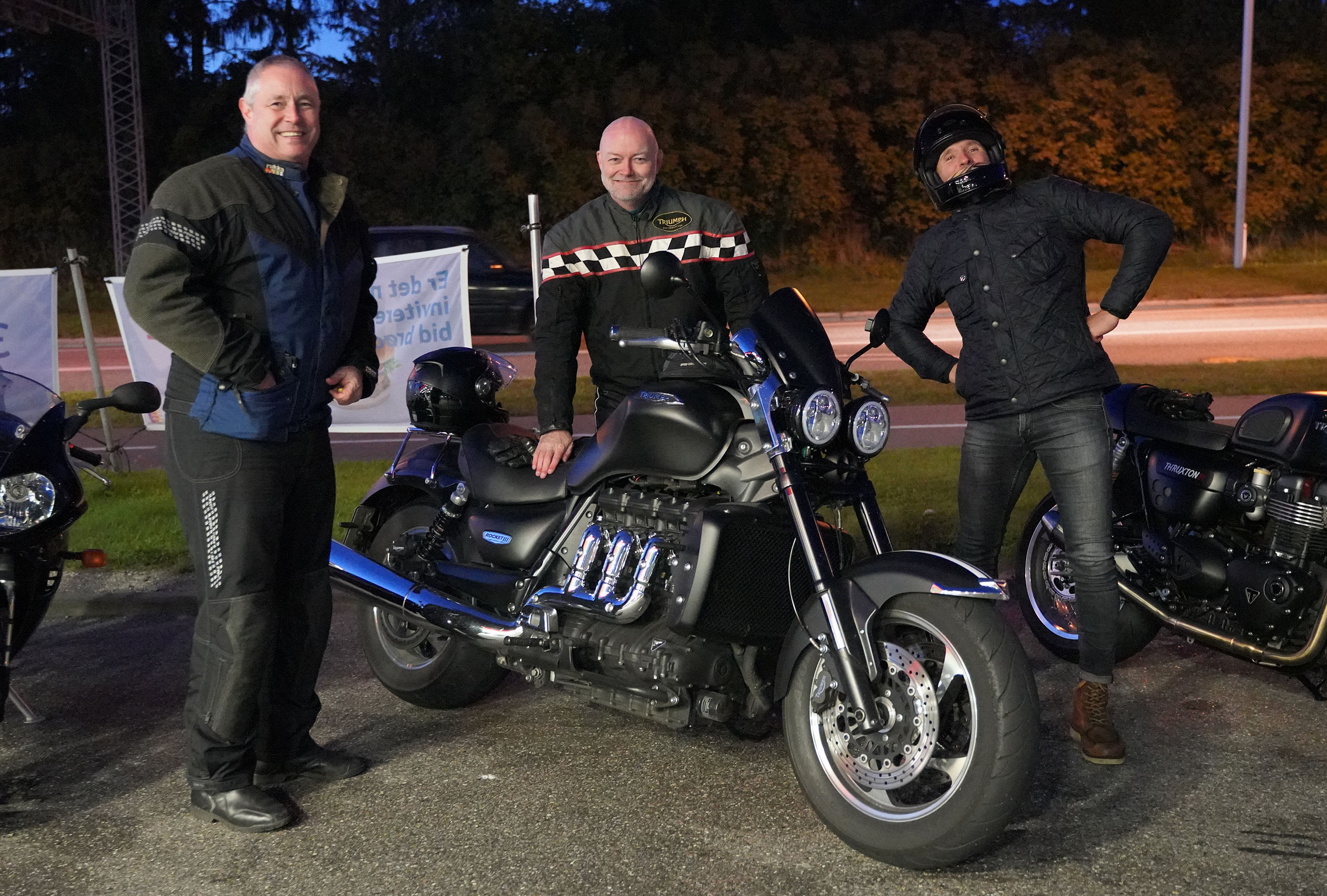 en Rocket III -14, Lars på en hvid Explorer XRT 1200 -16, Klaus på en hvid Street Triple -08.