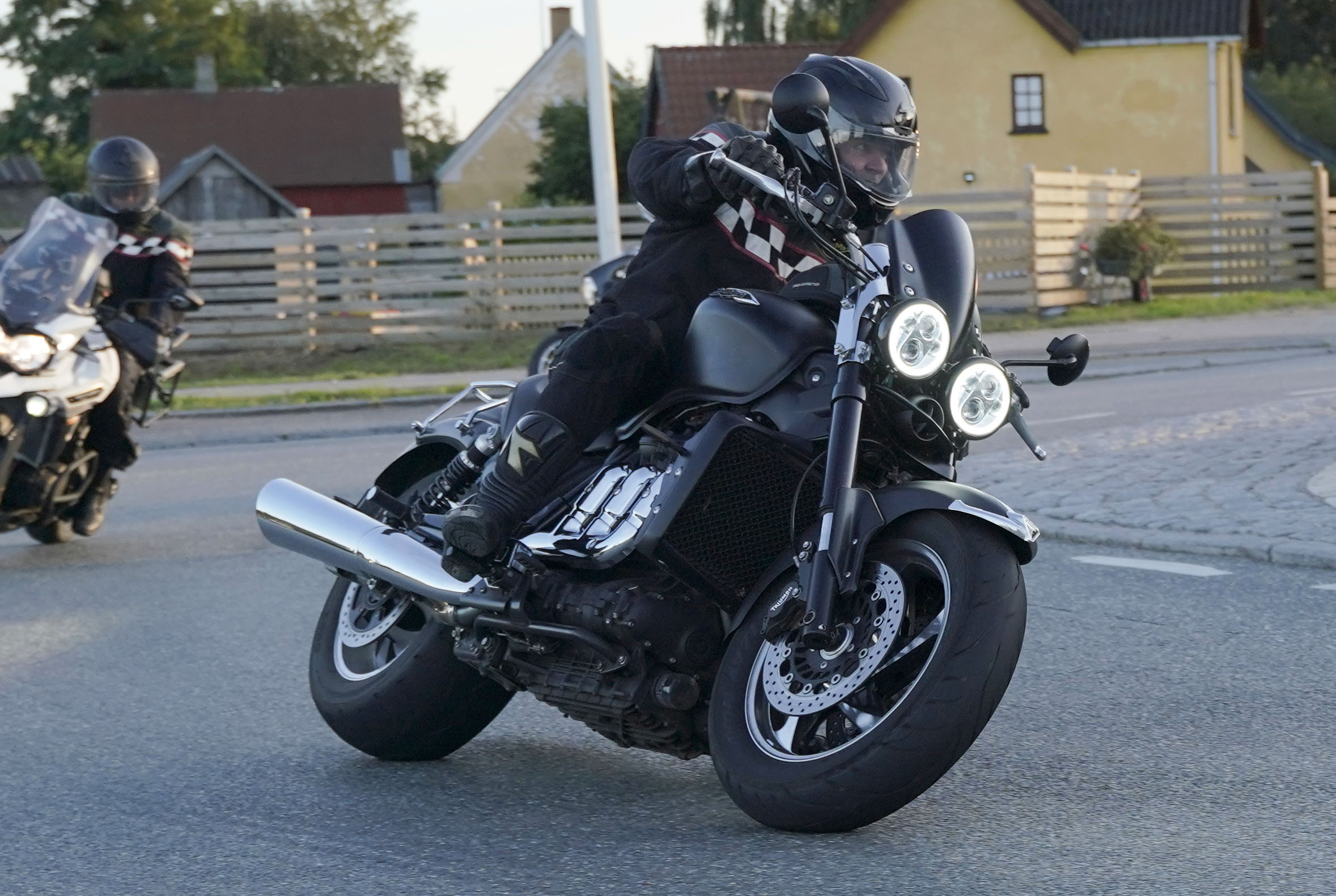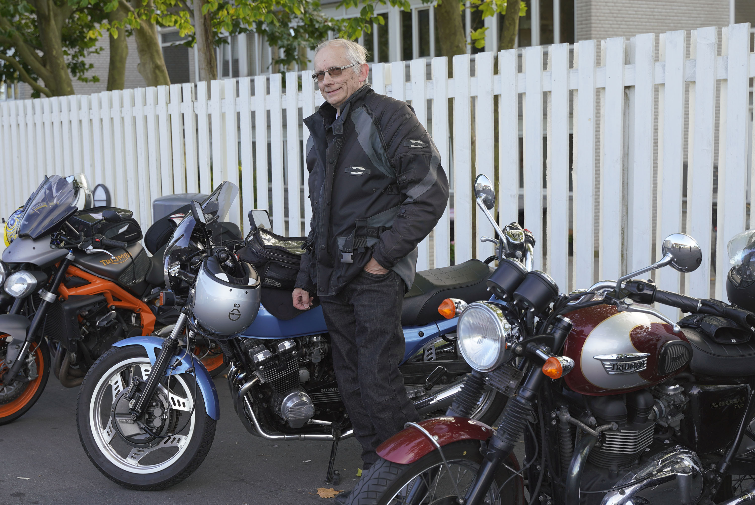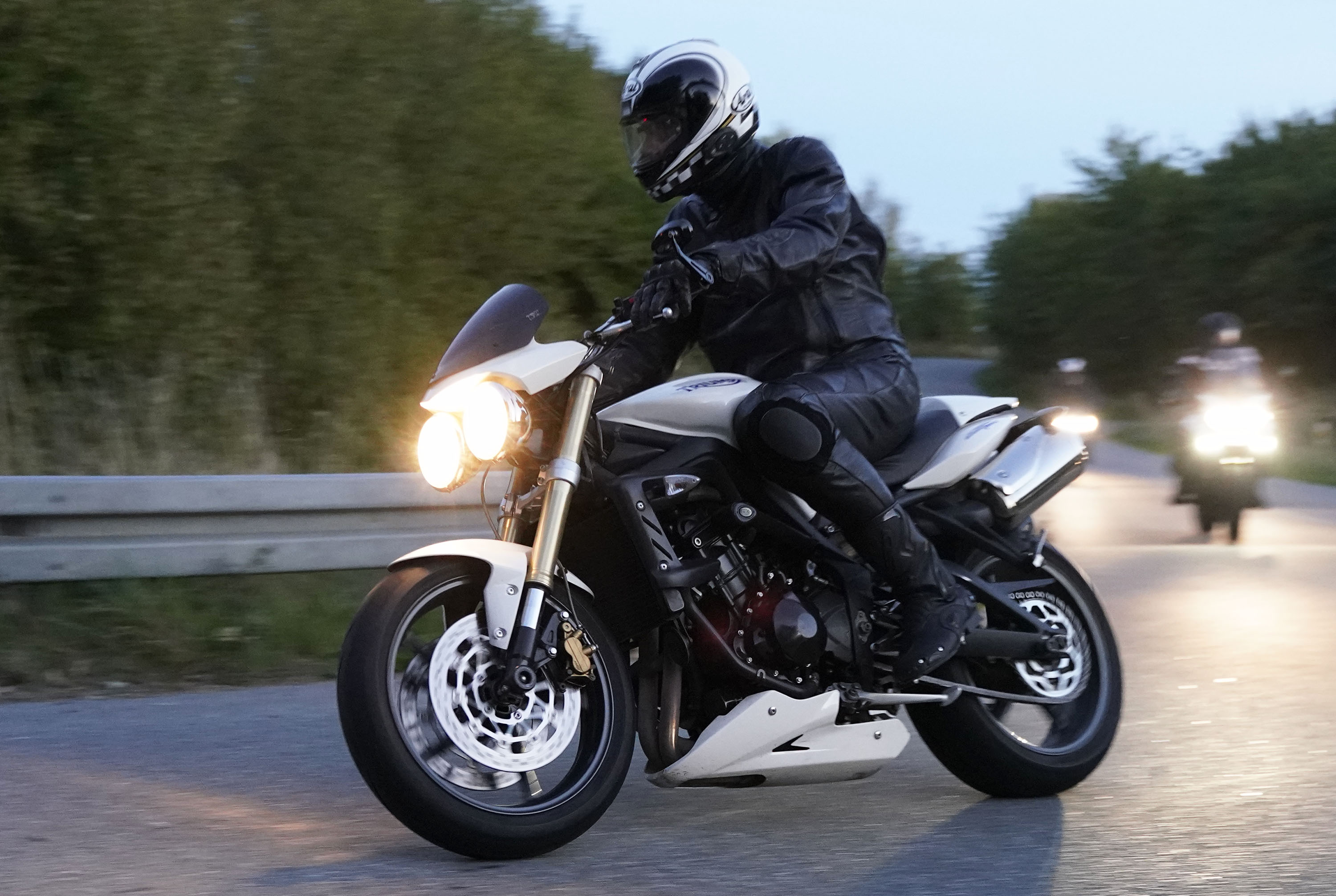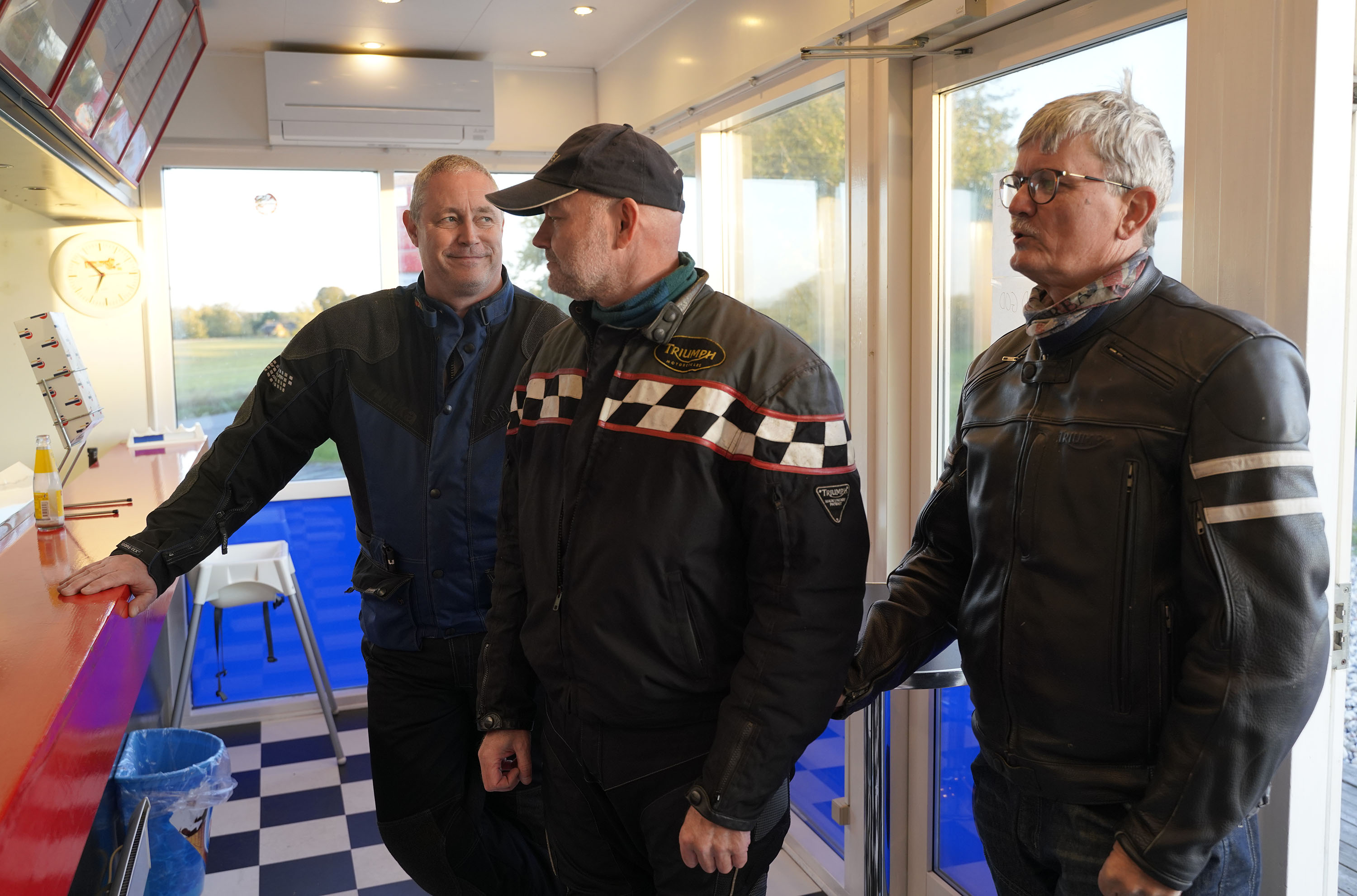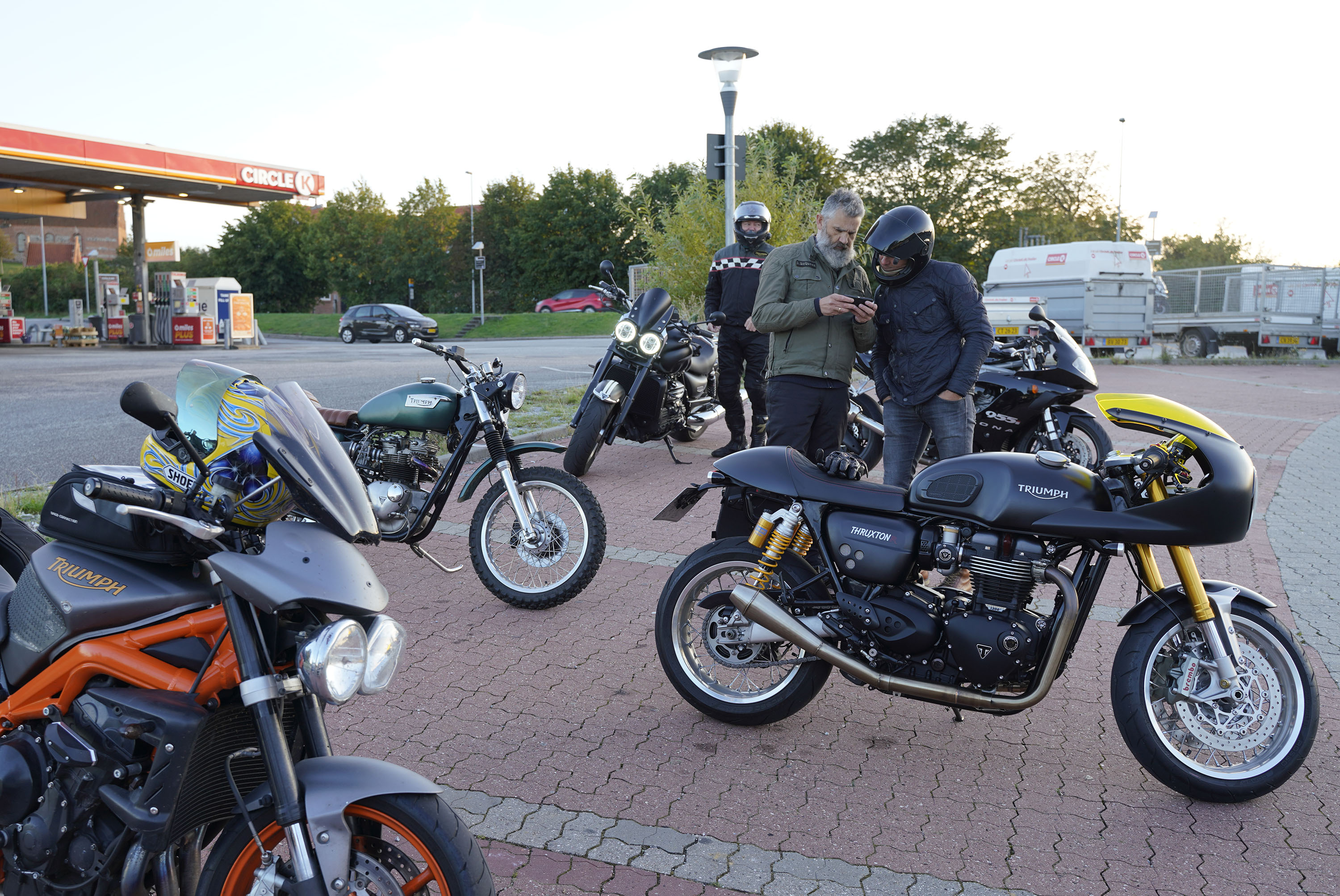 en Rocket III -14, Lars på en hvid Explorer XRT 1200 -16, Klaus på en hvid Street Triple -08.