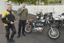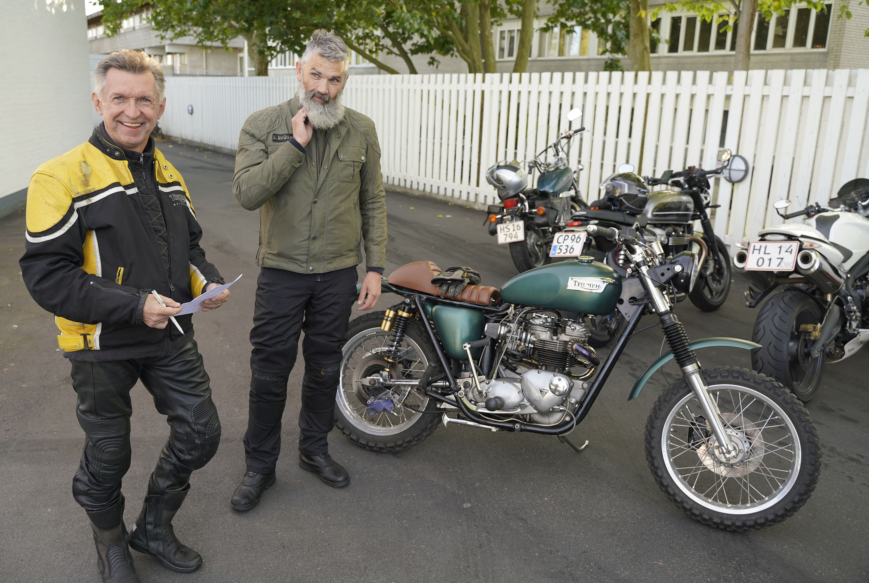 og Søren på en grøn Bonneville 750 -74 (det meste af den). Og så var det mig selv