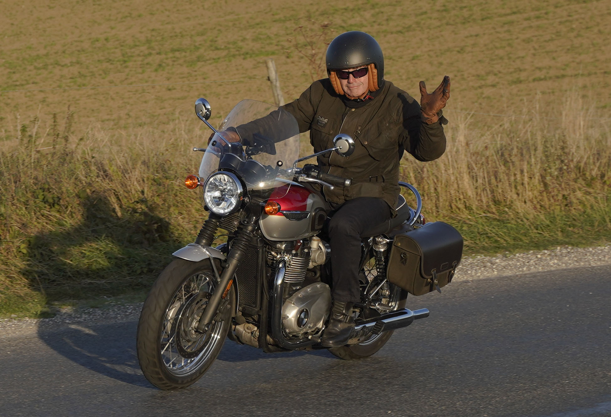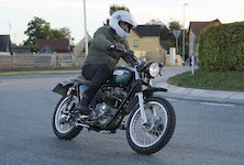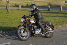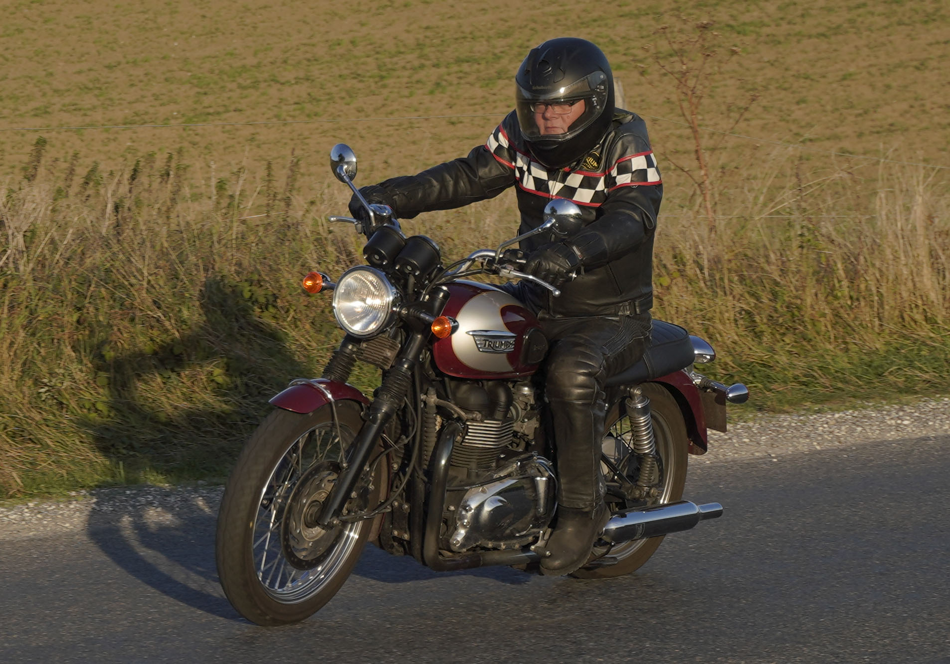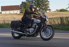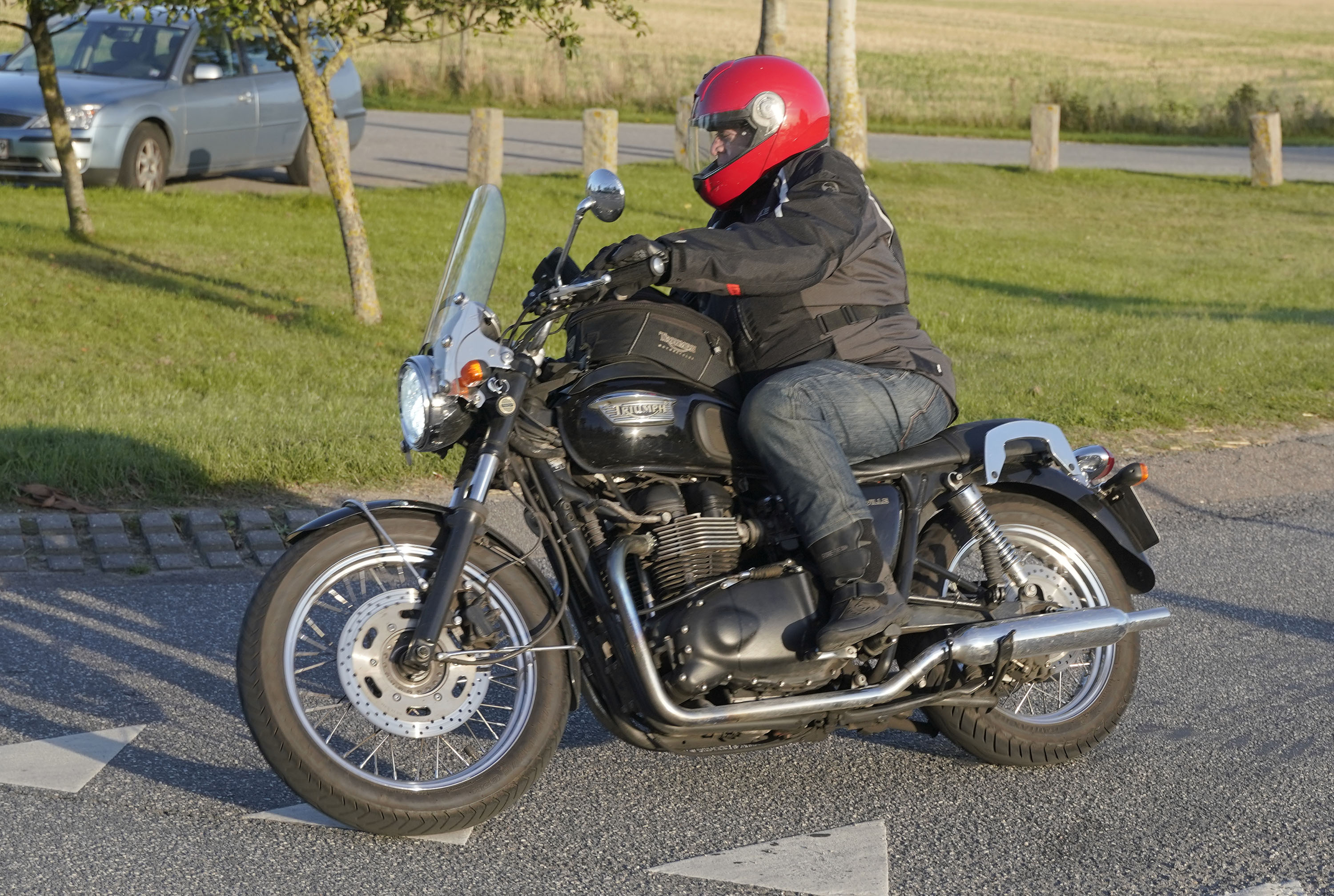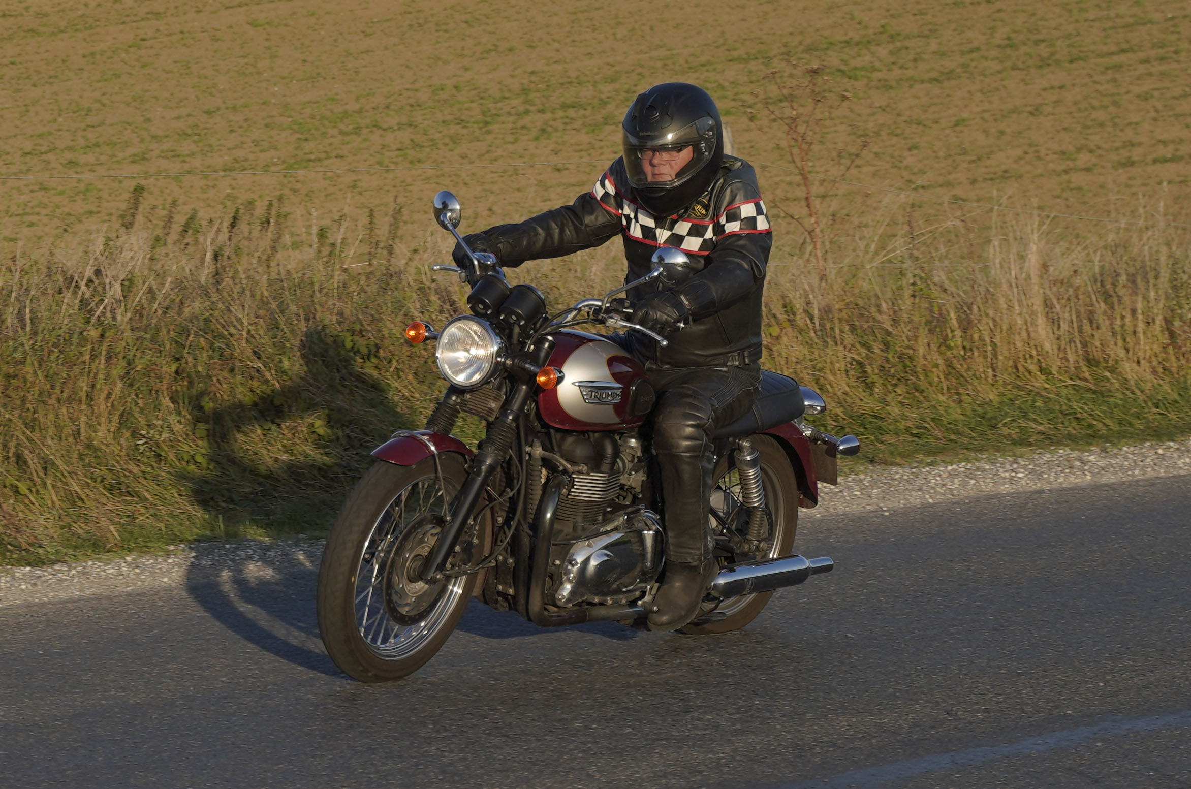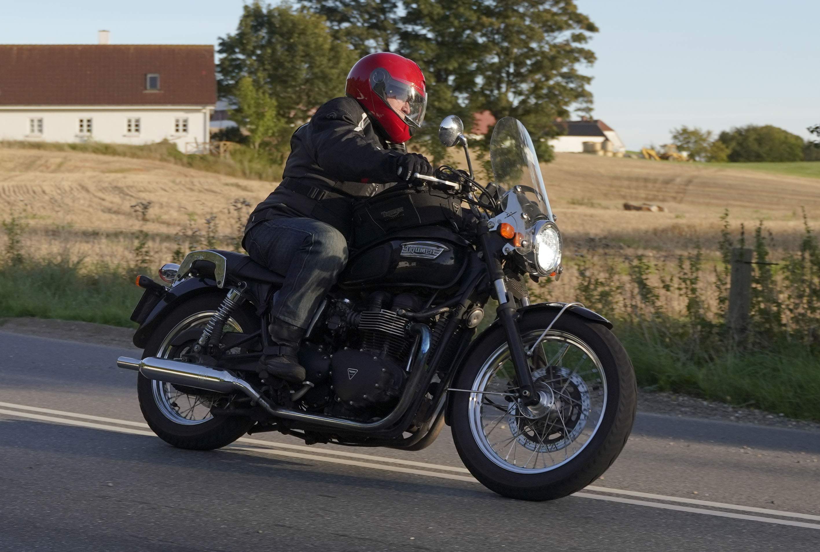den lavt stående sol fra forkert retning. Alligevel kan du se Finns Bonneville mangler