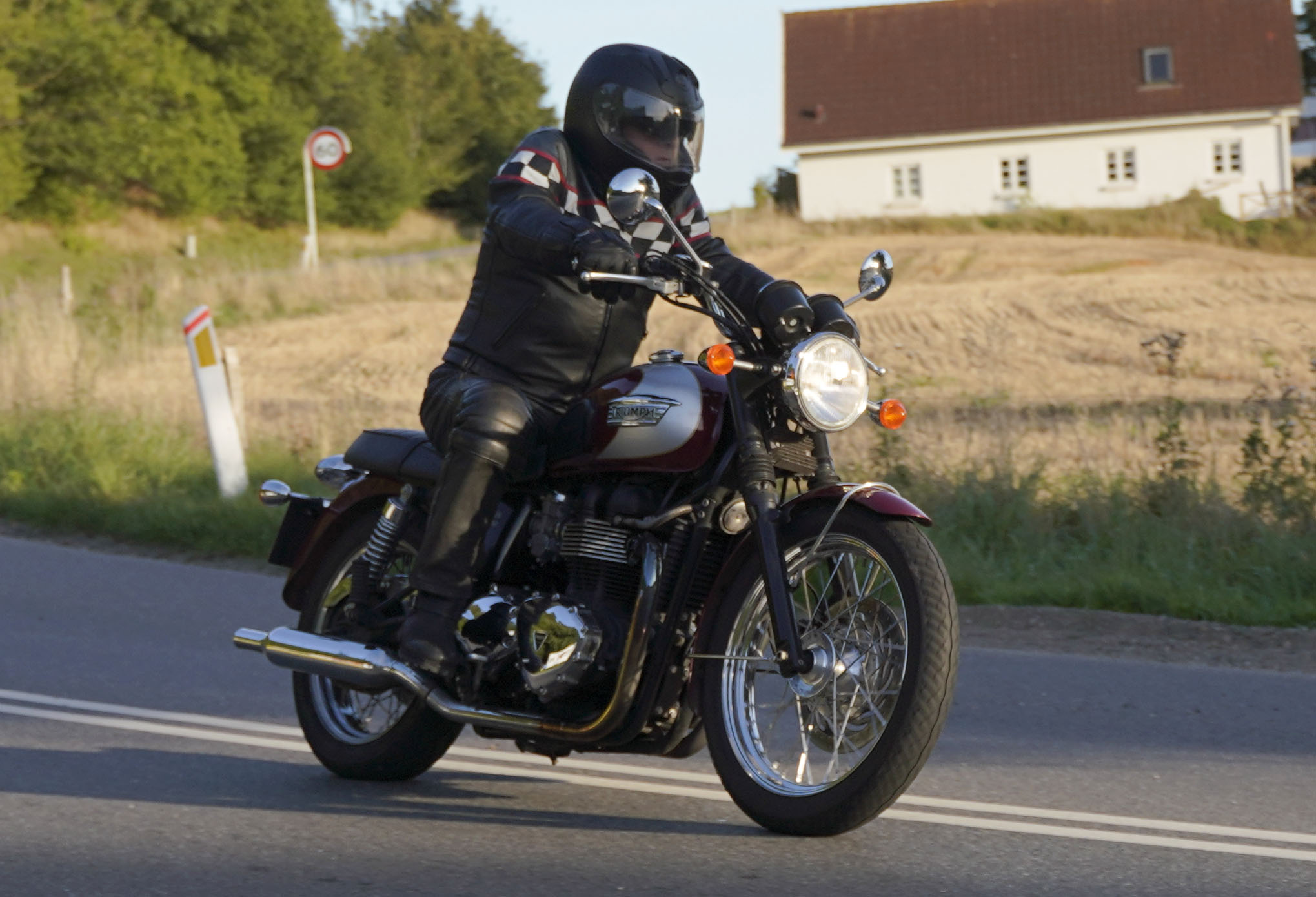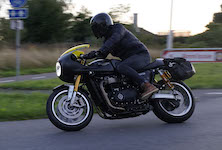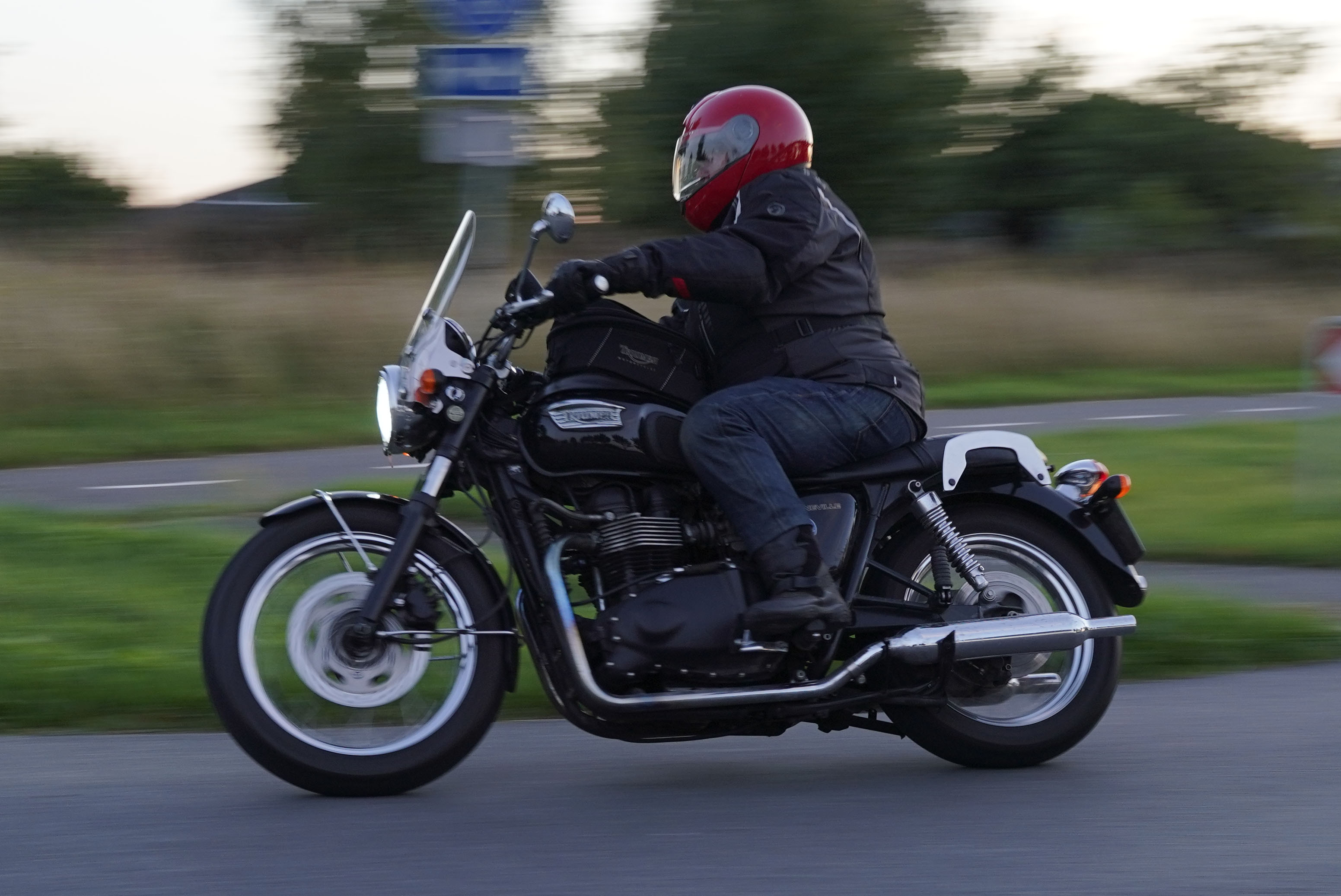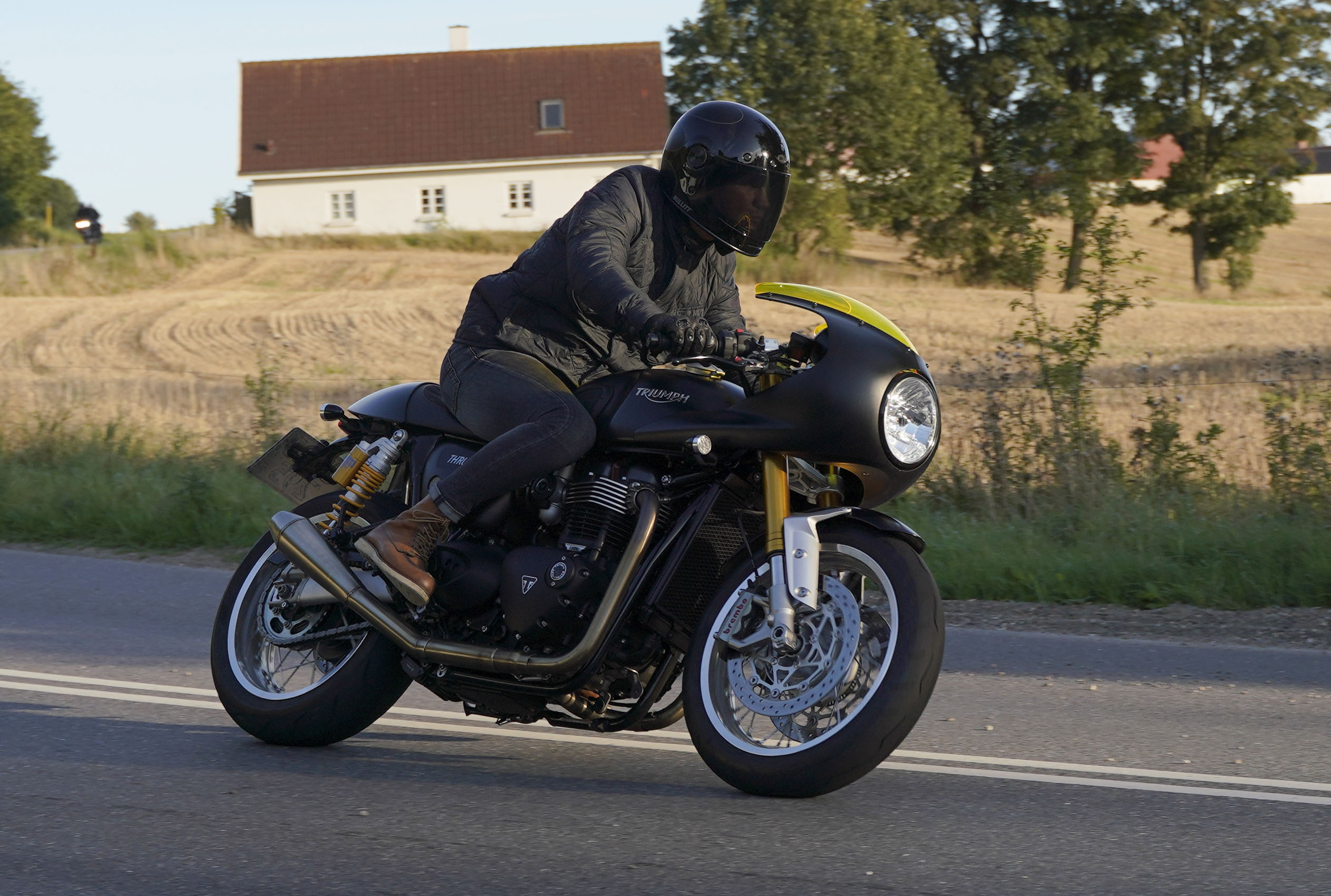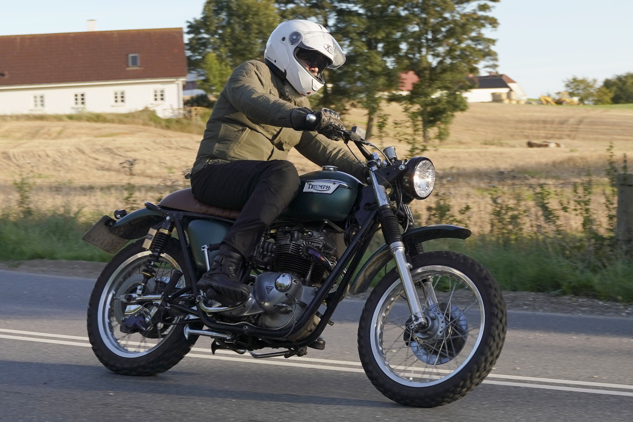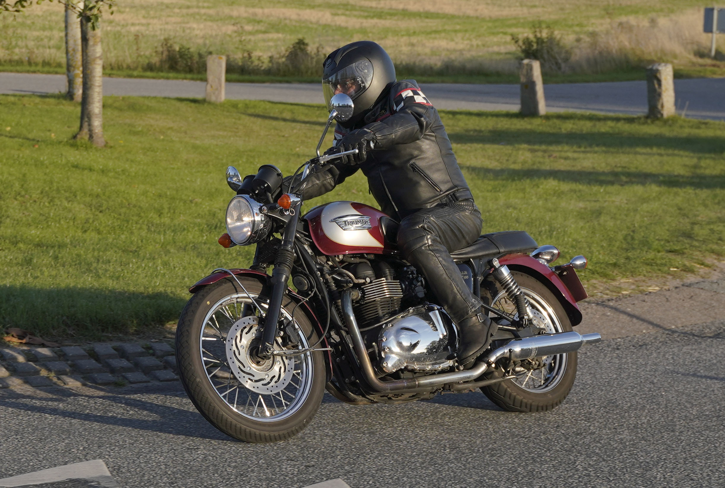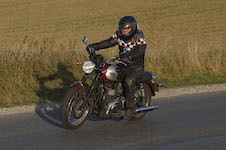 den lavt stående sol fra forkert retning. Alligevel kan du se Finns Bonneville mangler