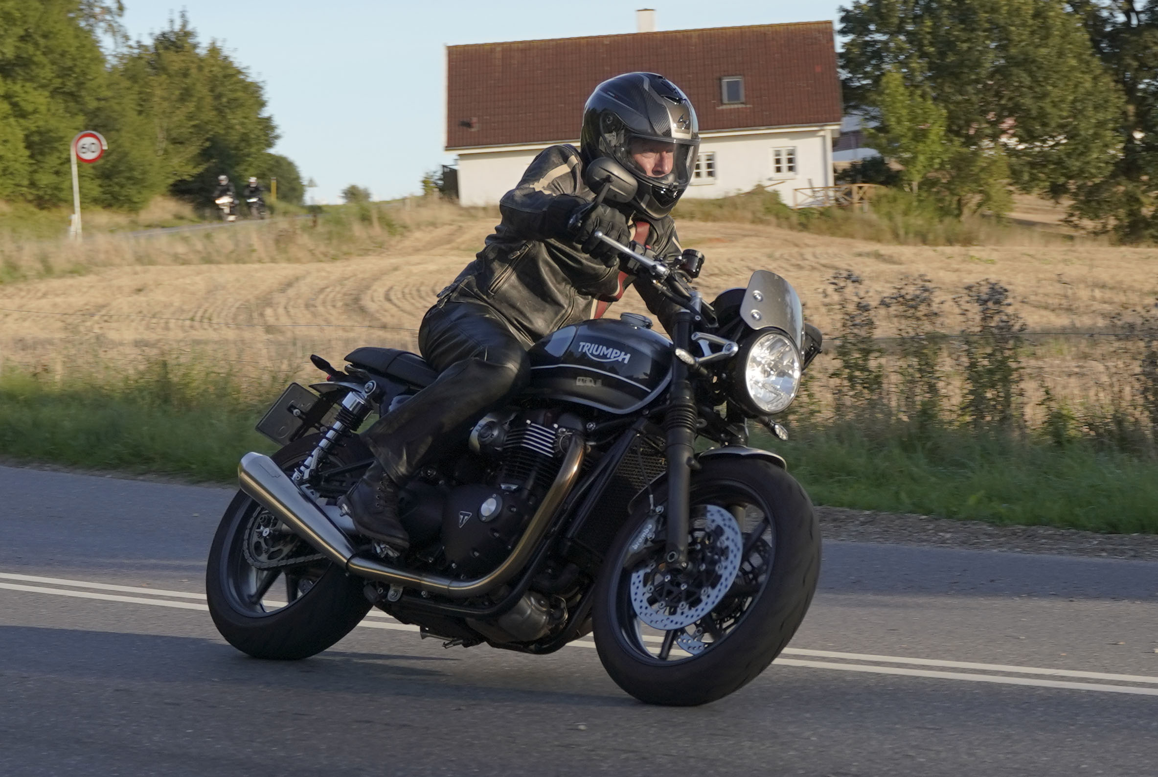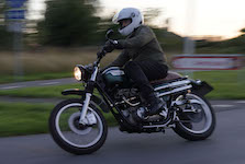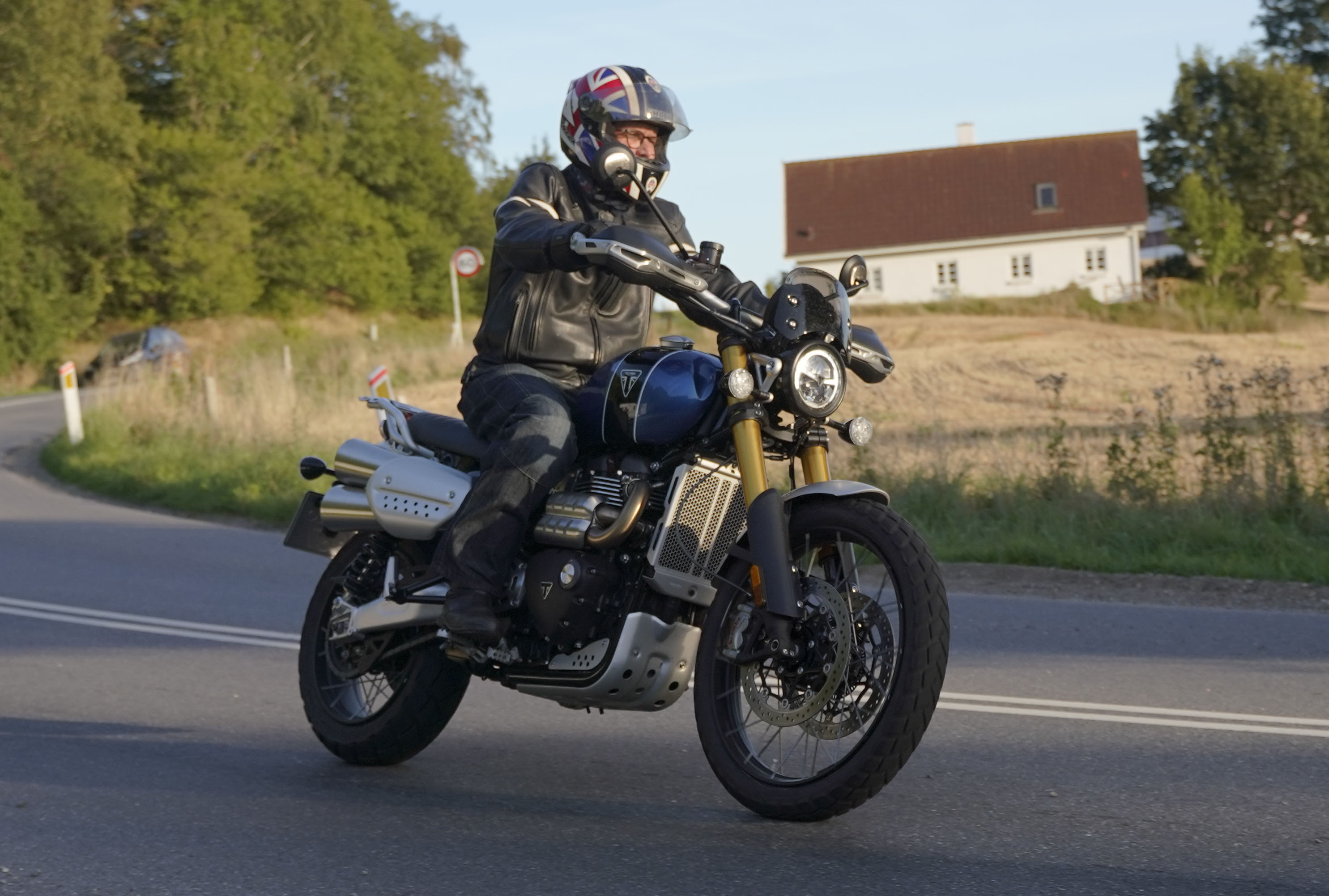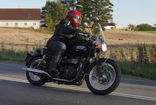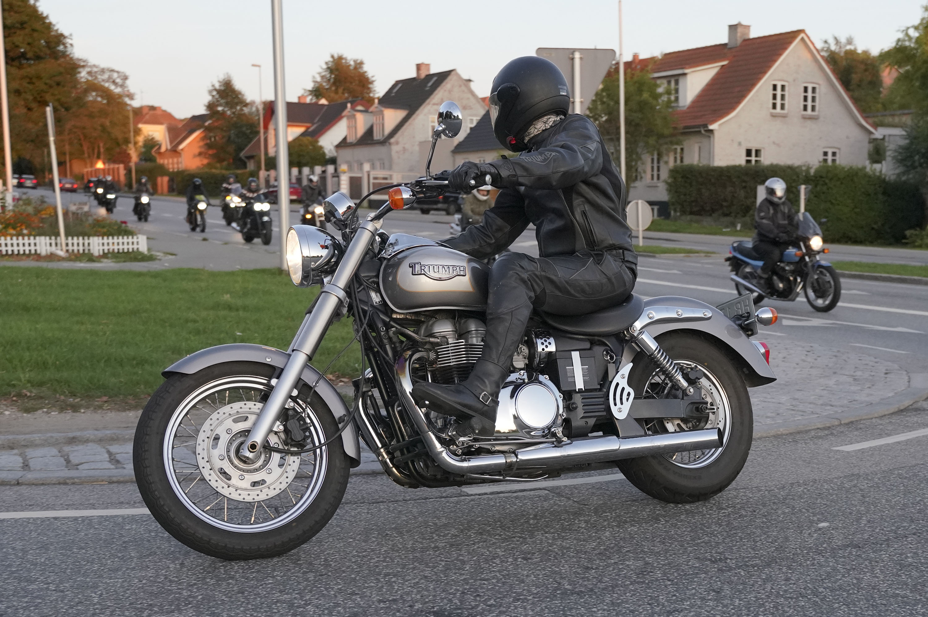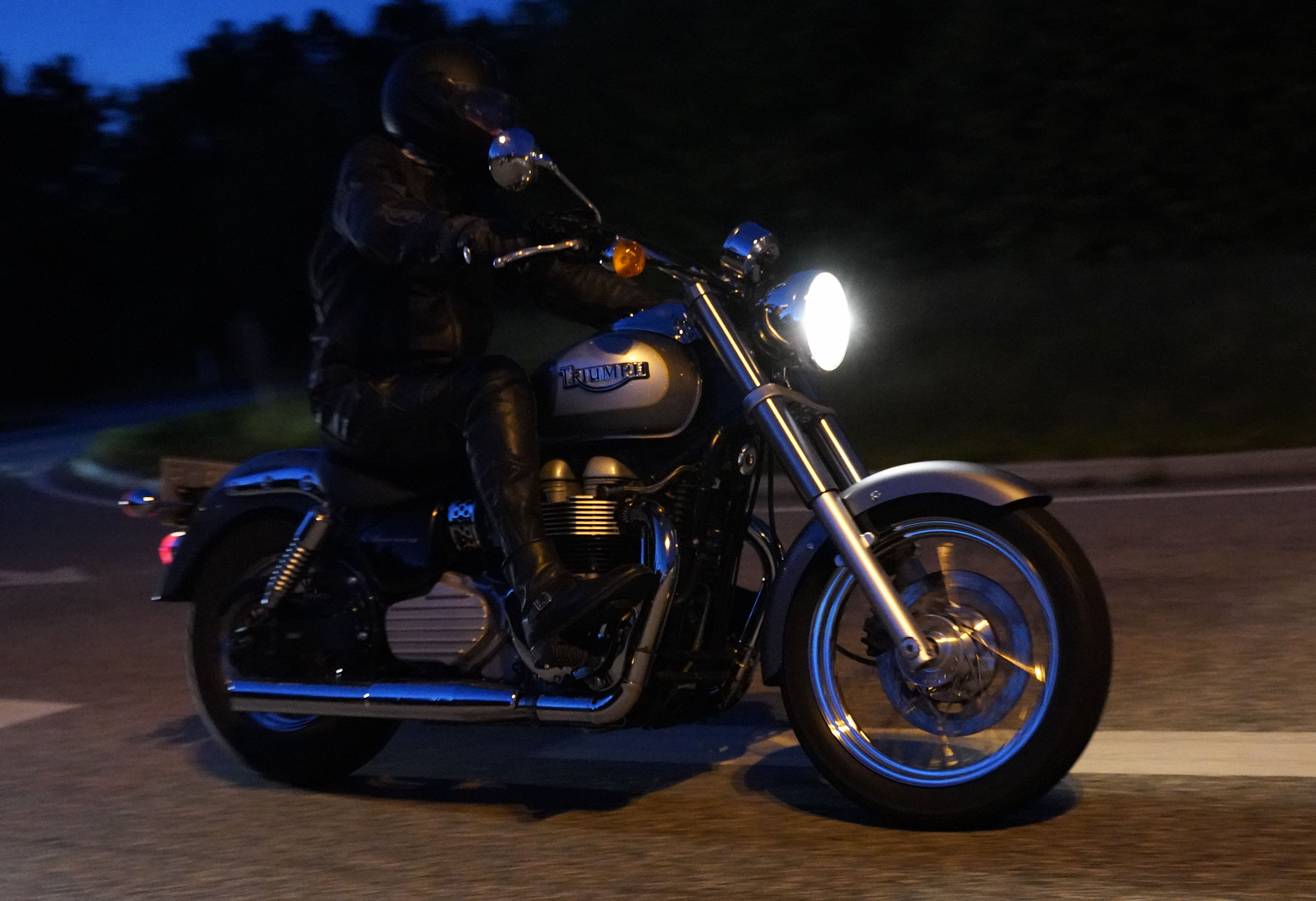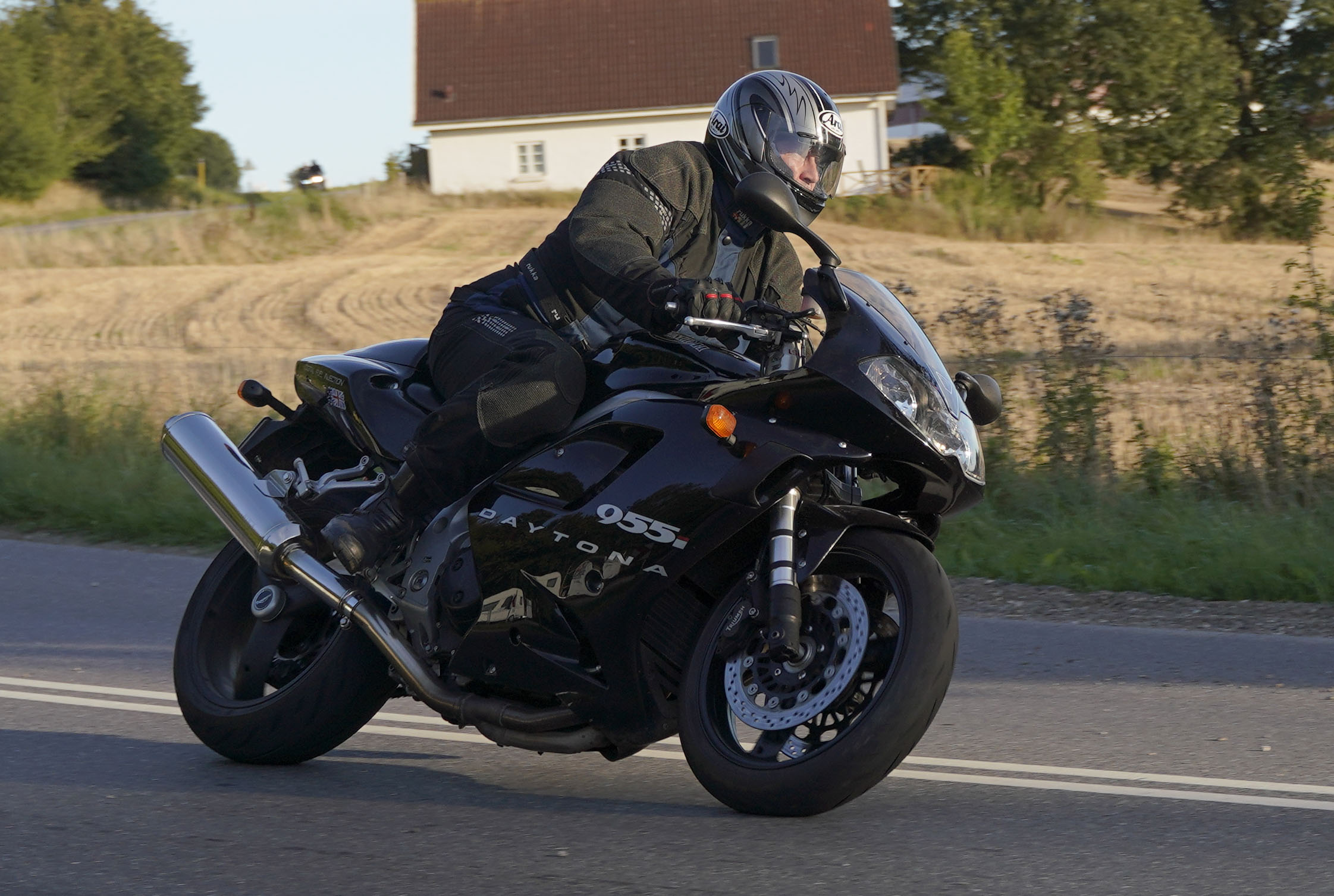 den lavt stående sol fra forkert retning. Alligevel kan du se Finns Bonneville mangler