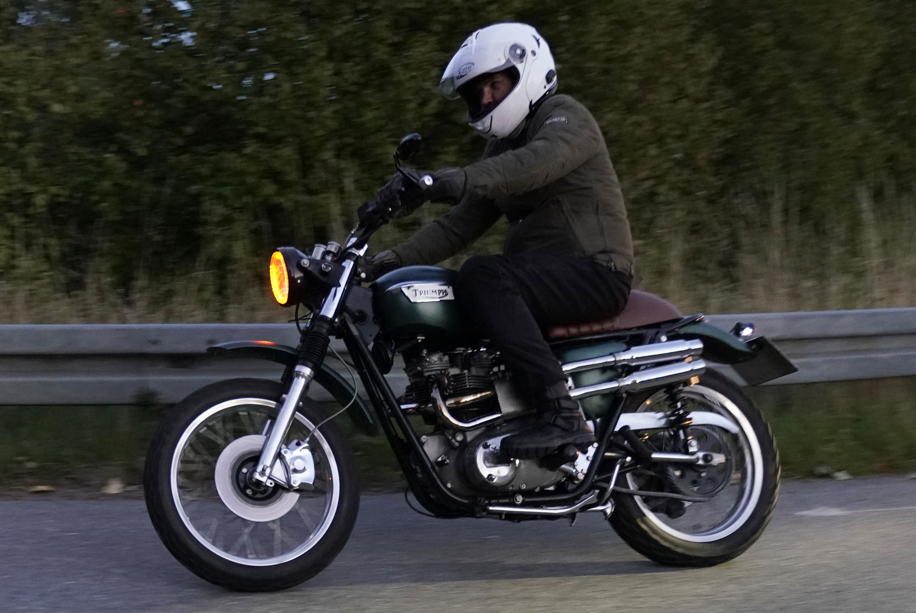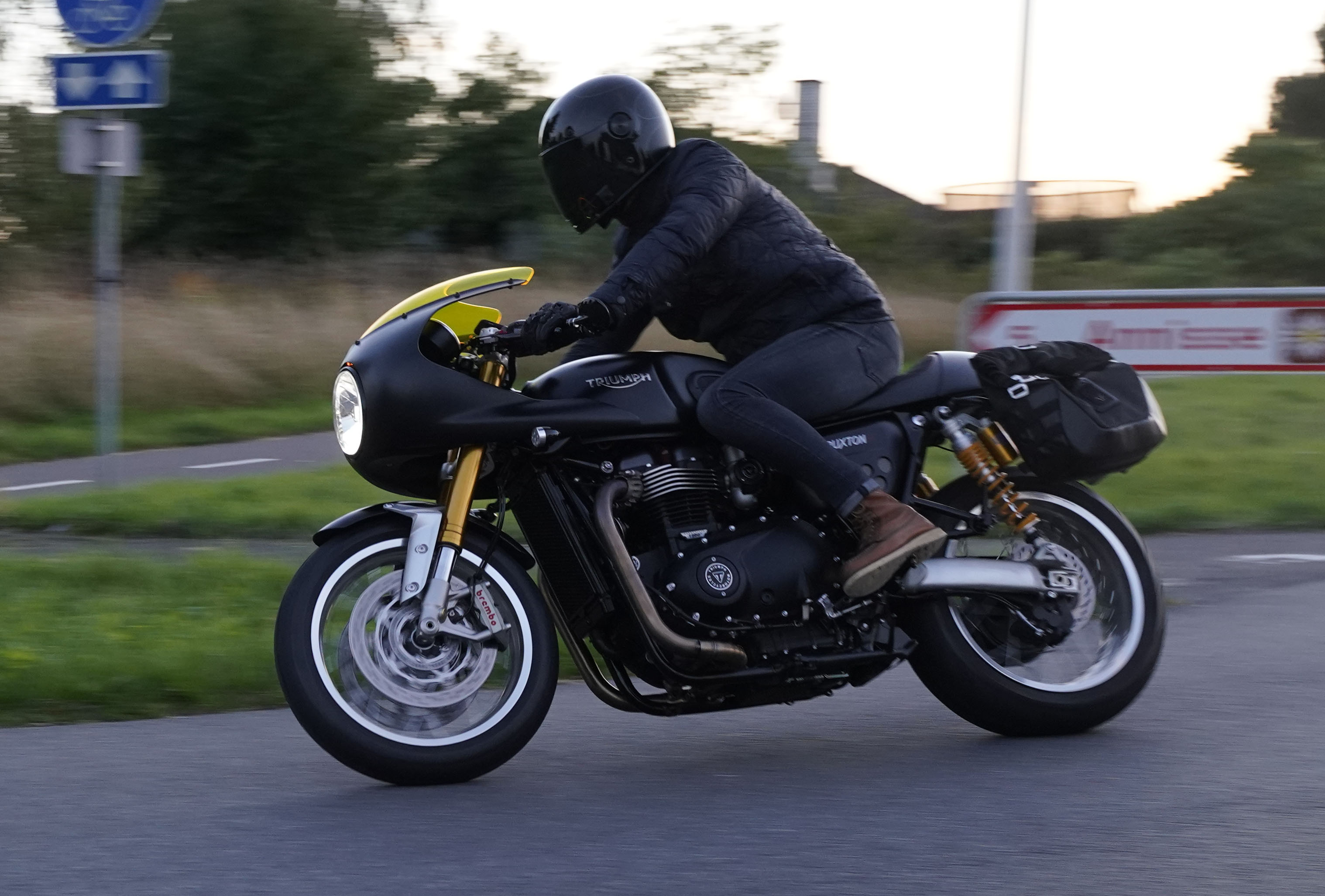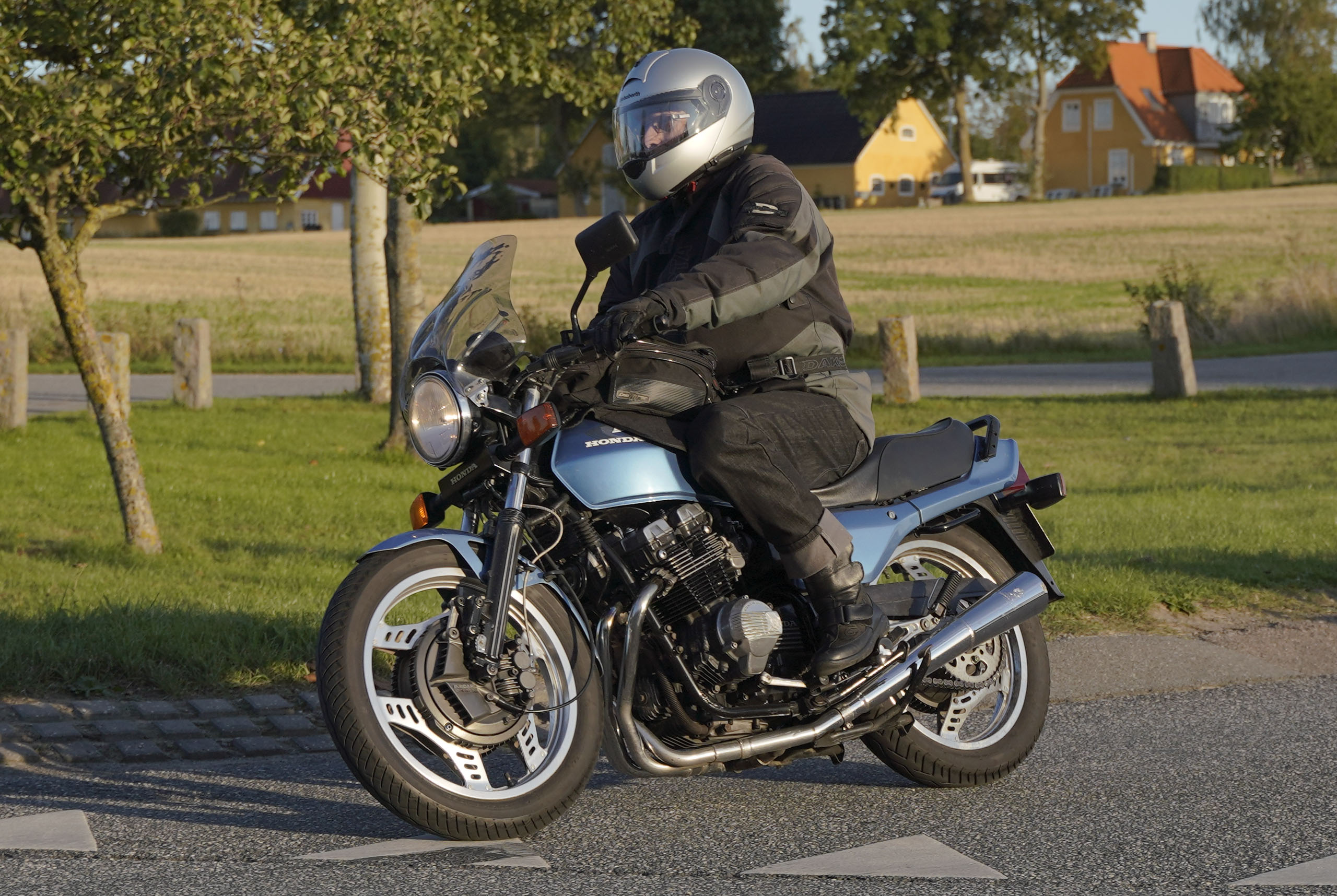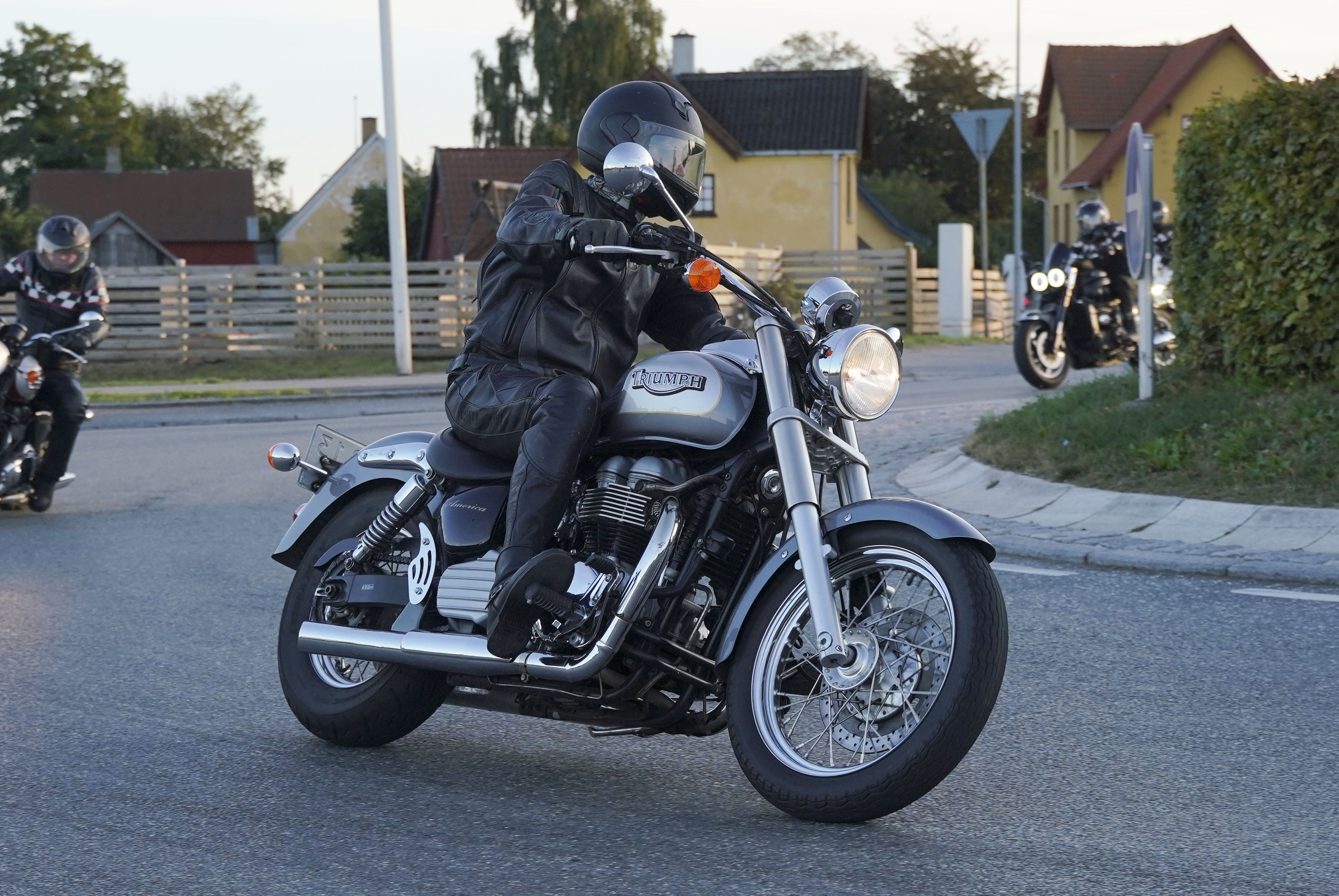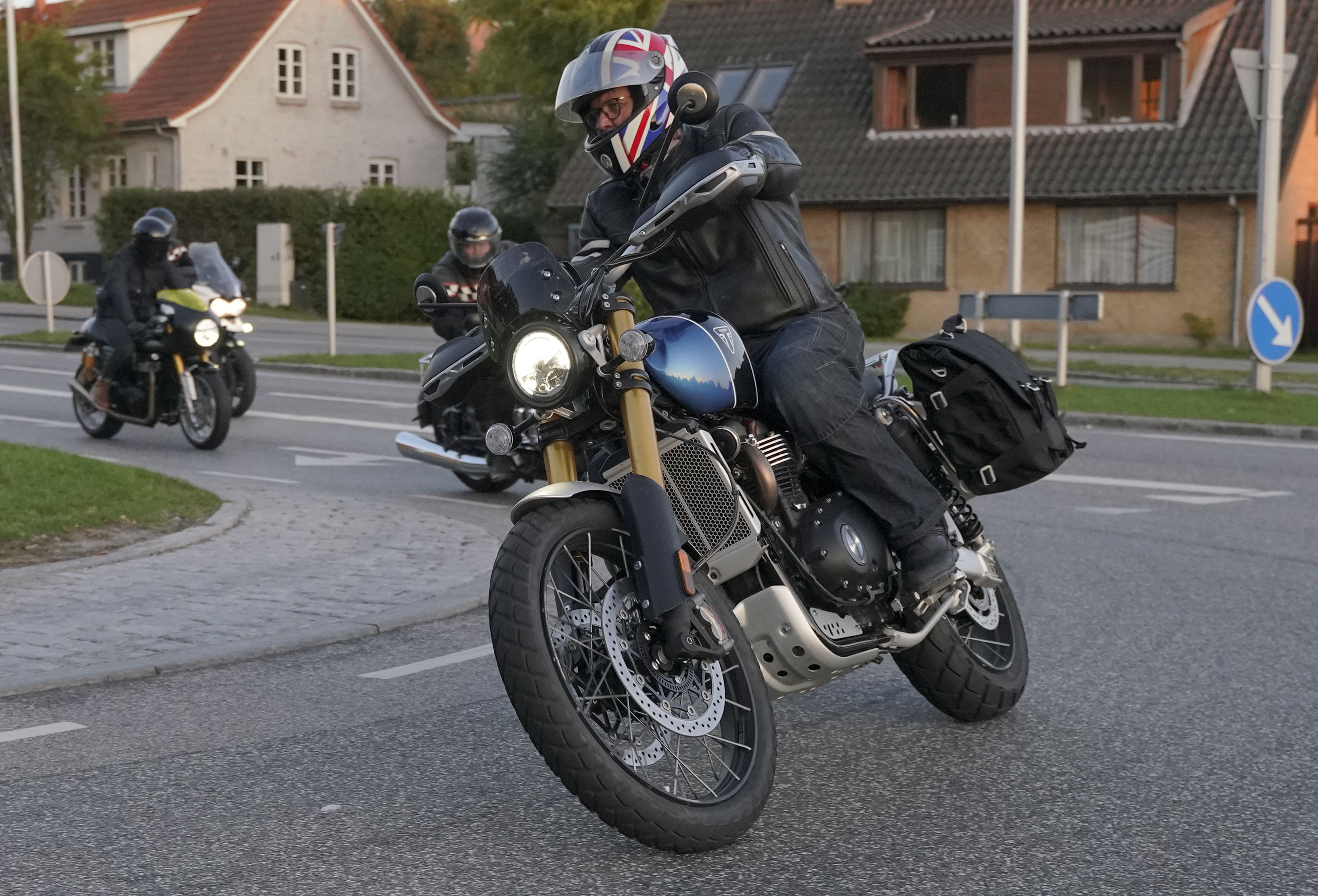 den lavt stående sol fra forkert retning. Alligevel kan du se Finns Bonneville mangler