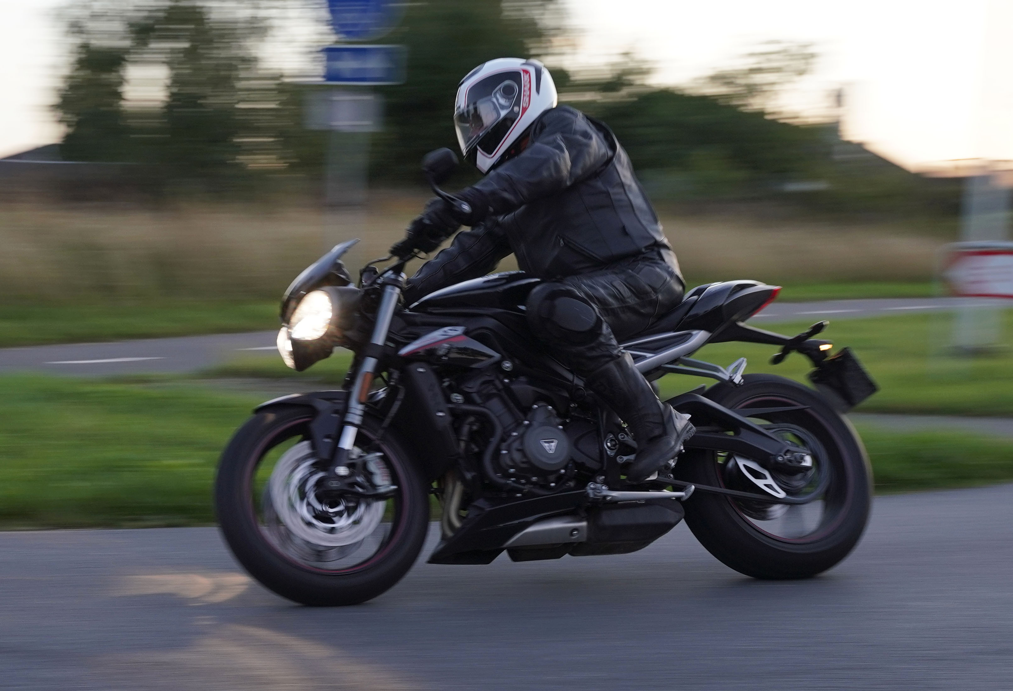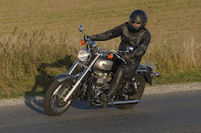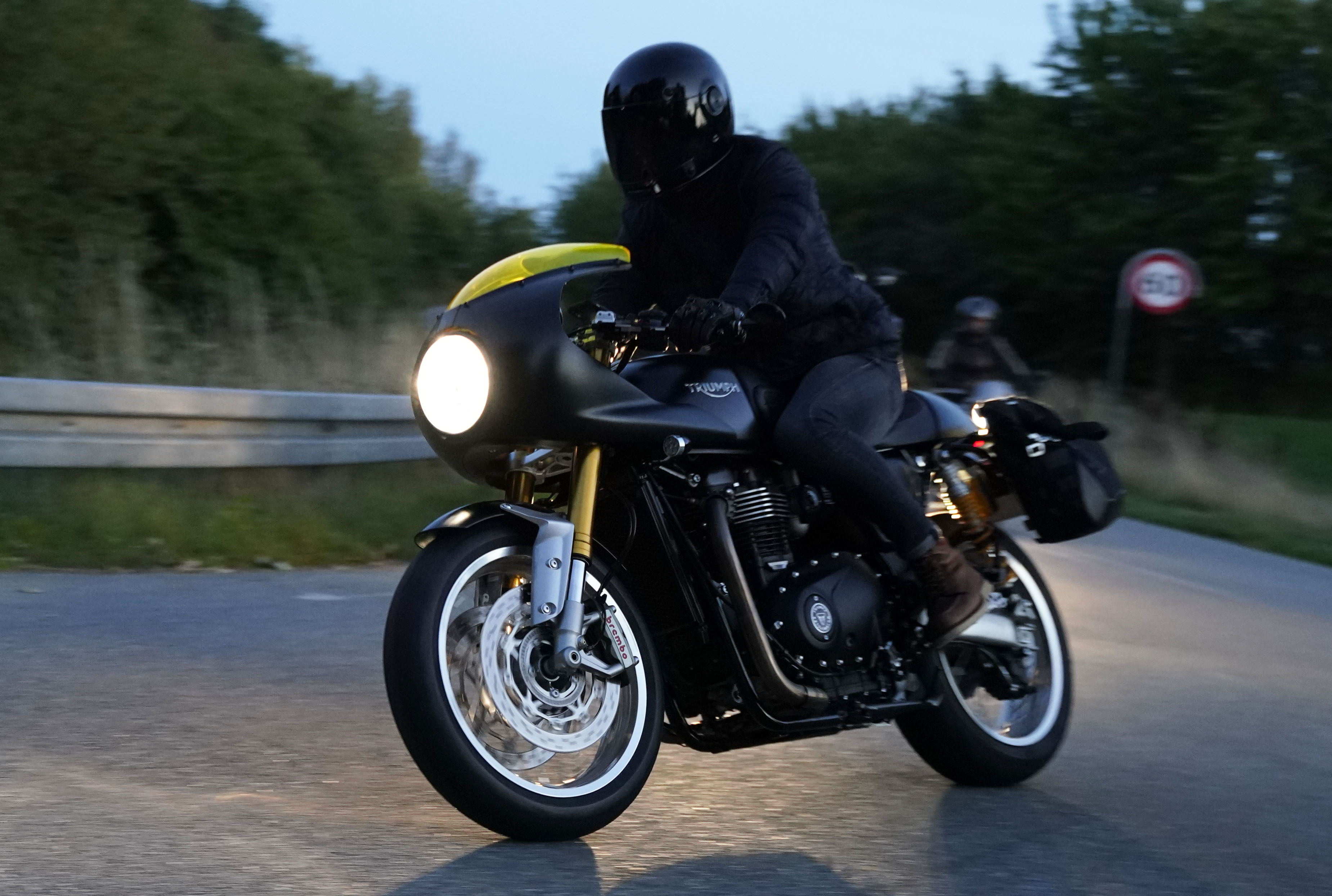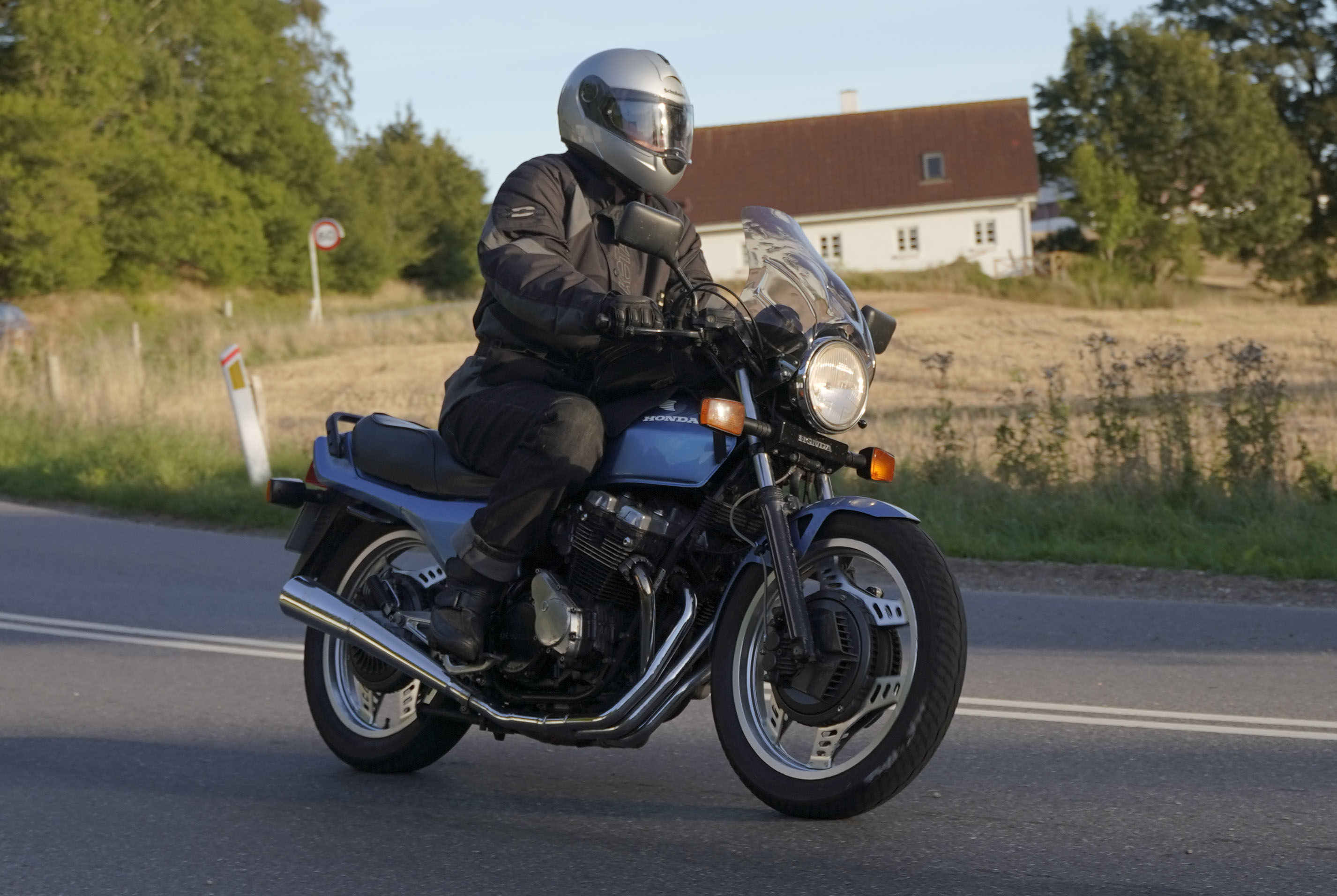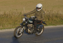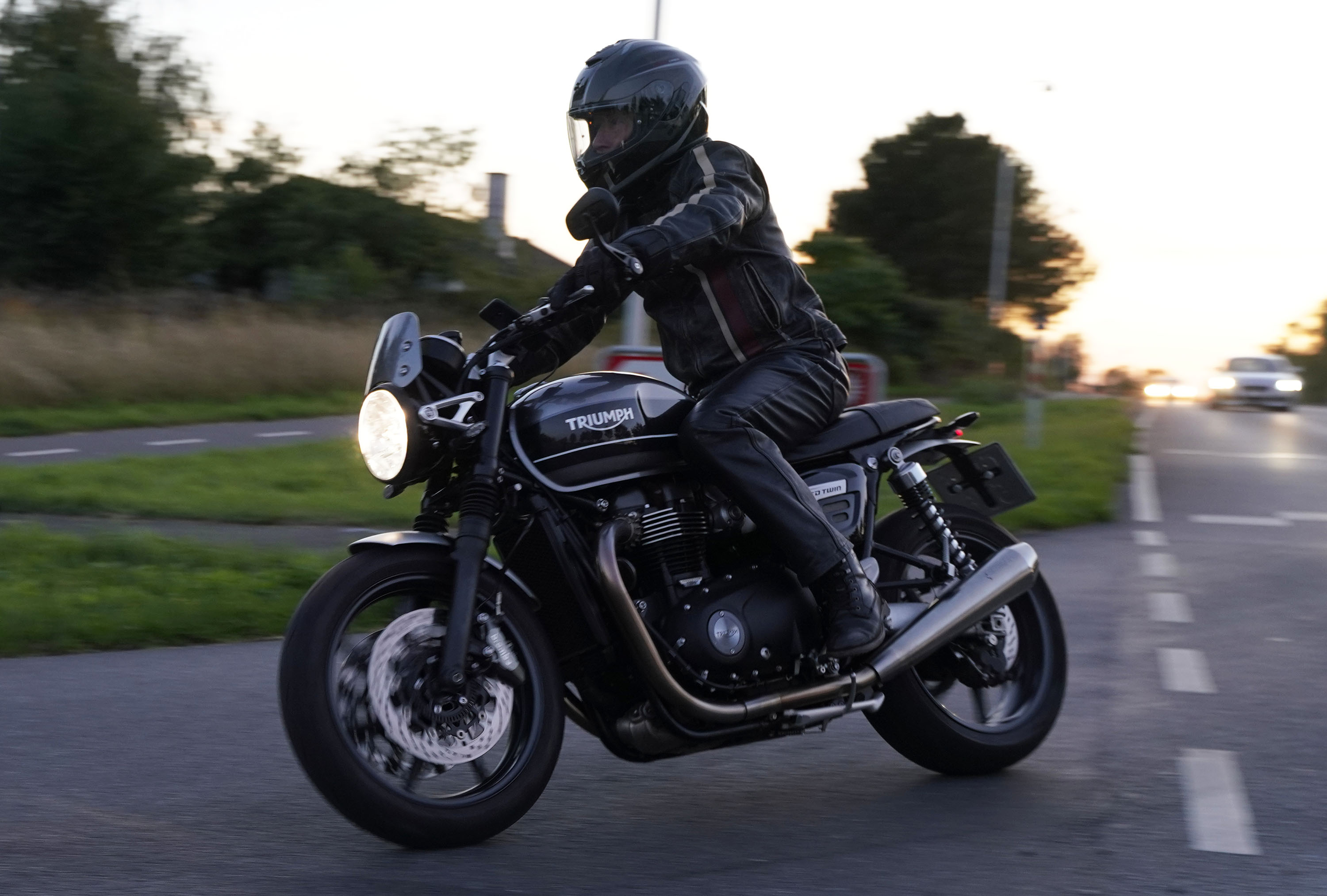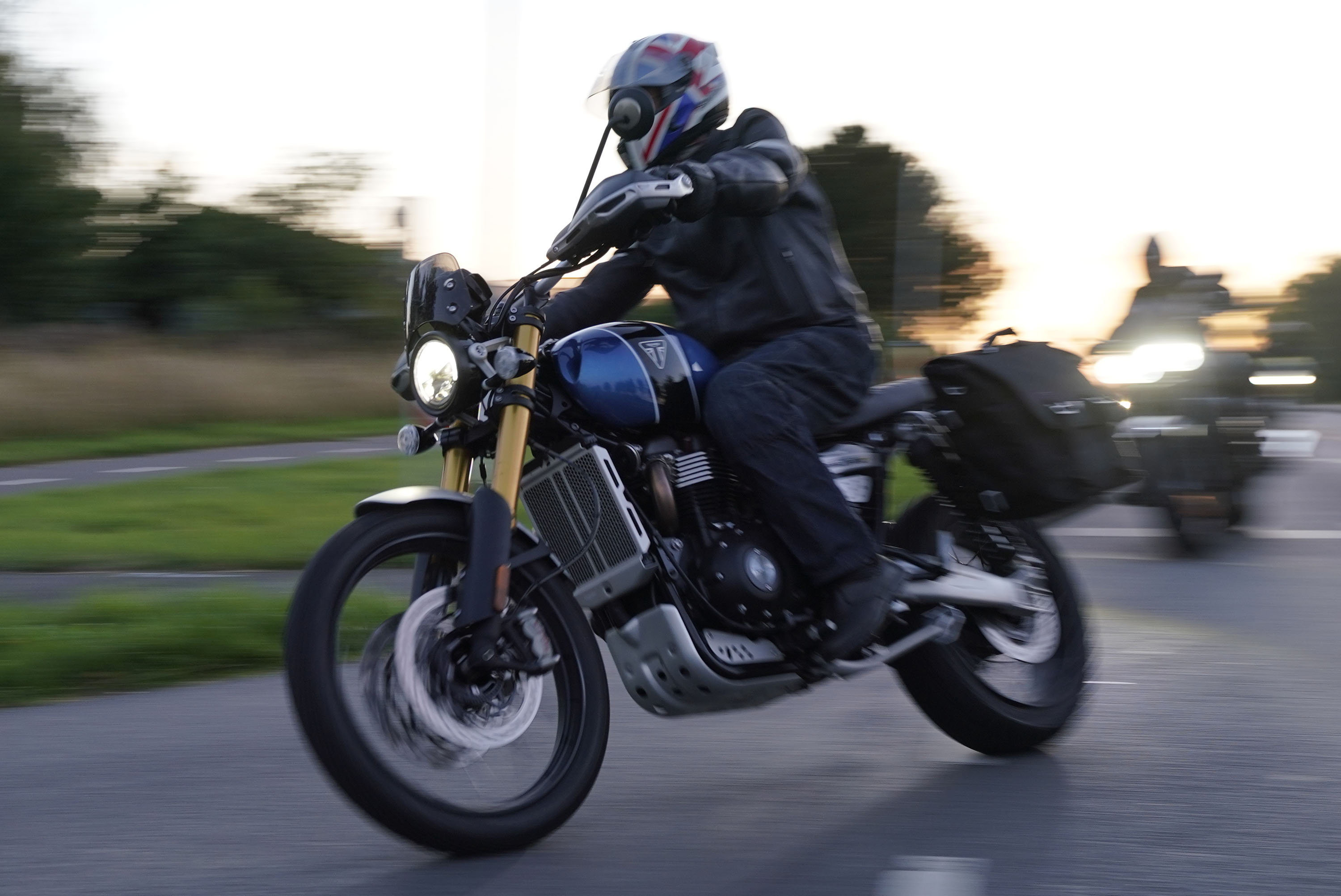 den lavt stående sol fra forkert retning. Alligevel kan du se Finns Bonneville mangler