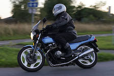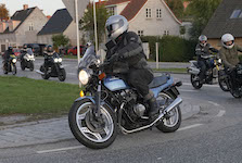Deltegerne til dagens tur er Finn på en rød/sølv Bonneville -01, Søren på en blå CBX550 -84,