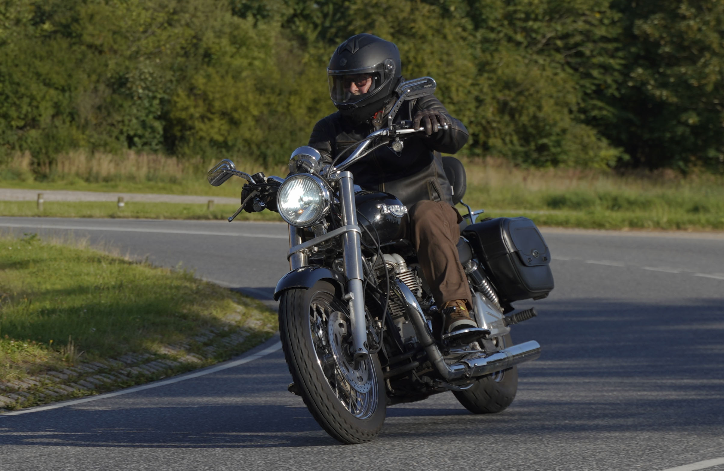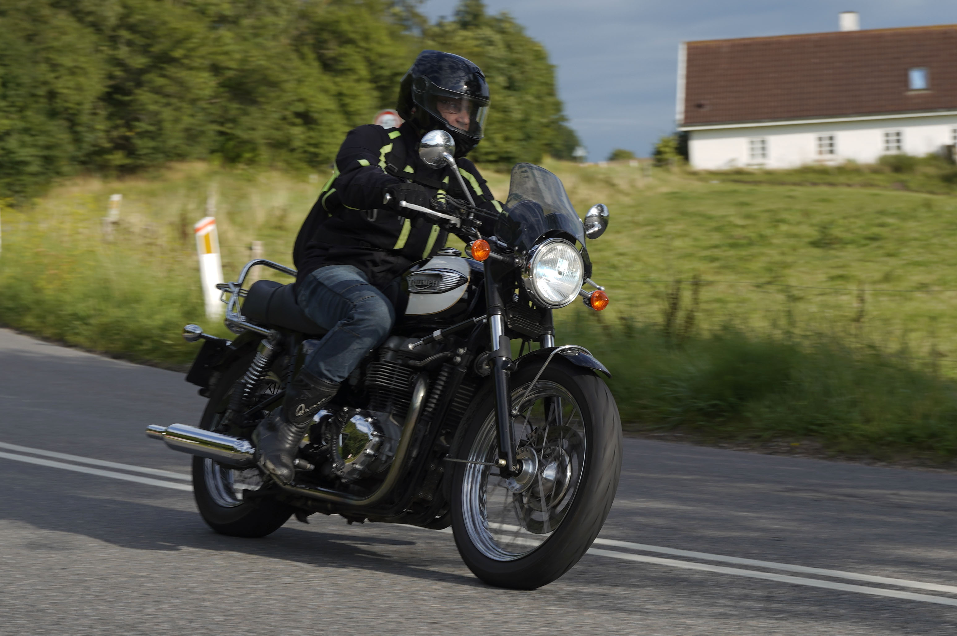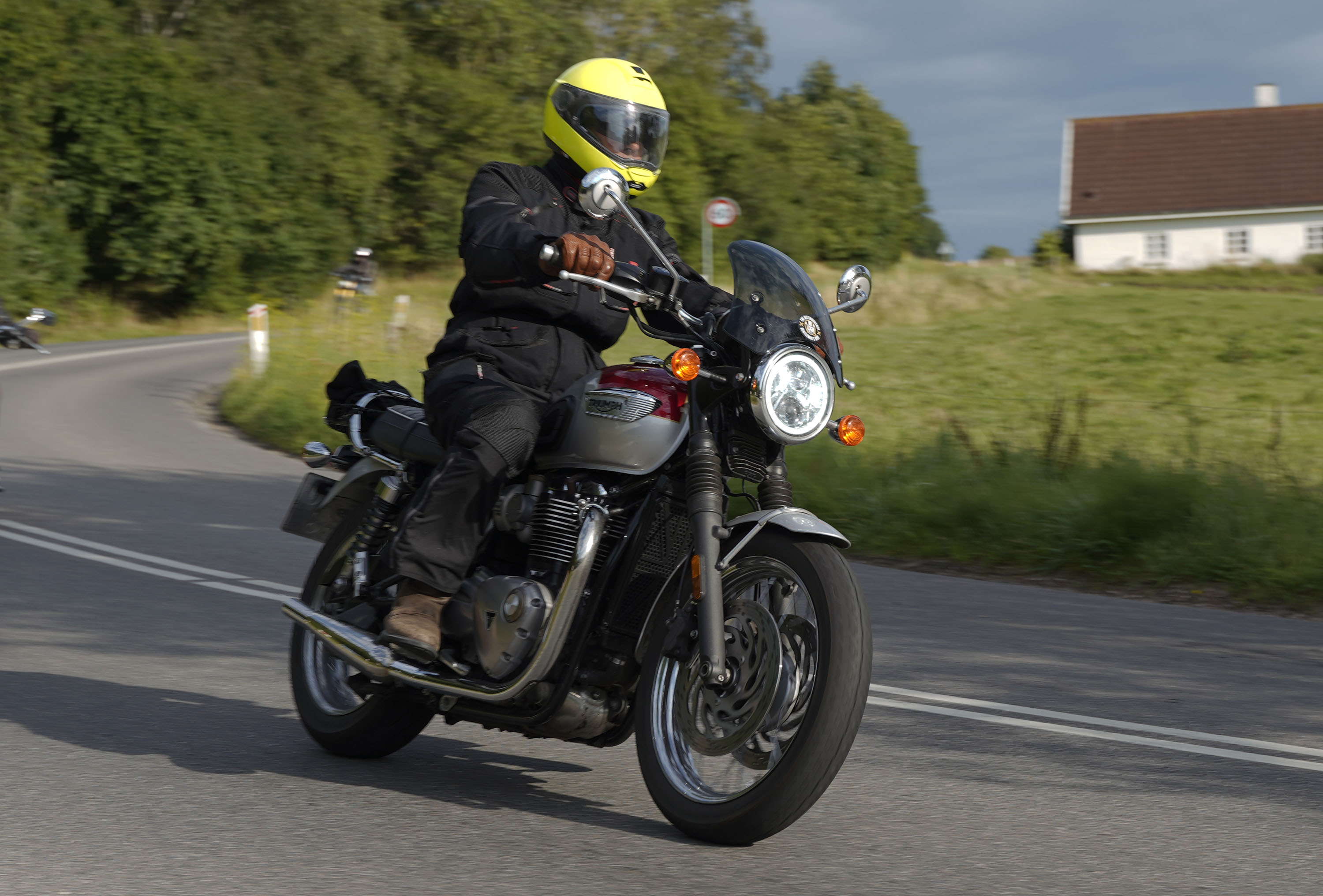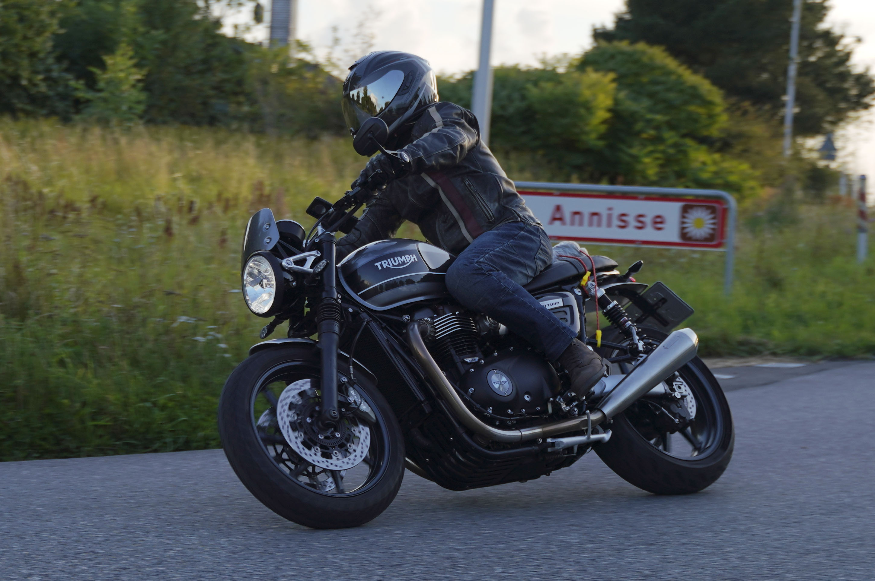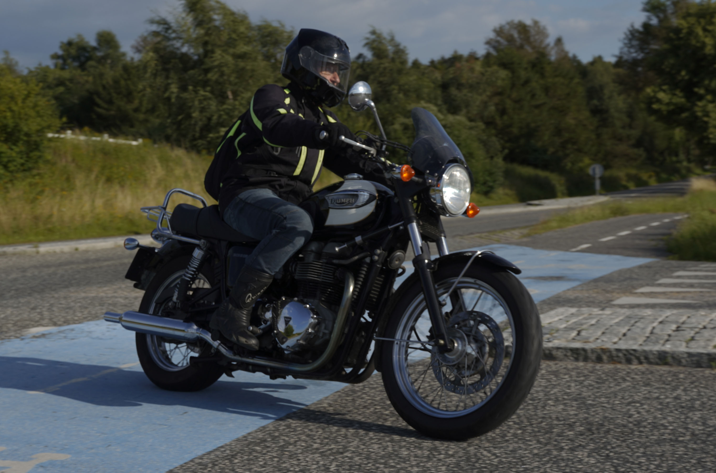 Jeg ankom til mødestedet på tanken, og der var flere der hade tænkt det samme. Der var Mogens på den sorte Bonneville -07, Tore på en sølv Trident 660 -21, Eva på en champagne/sort Street Twin -20, Niels Jørgen på en sort/hvis Bonneville T100 -05, Allan på en sort America -06, Torben på en sølv Harley Sprotster -99, Finn på en blå Scrambler 1200 -19, Per på en rød Tiger 900 -17, Julius på en rød/sølv Bonneville T120 -12, og mig selv på den grå/orange Street Triple KM-spec -08.Kl 17.30 startede vi turen og kørte gennem skoven til Værløse hvor vi drejede nord-vest mod Ganløse og Slagslunde.
