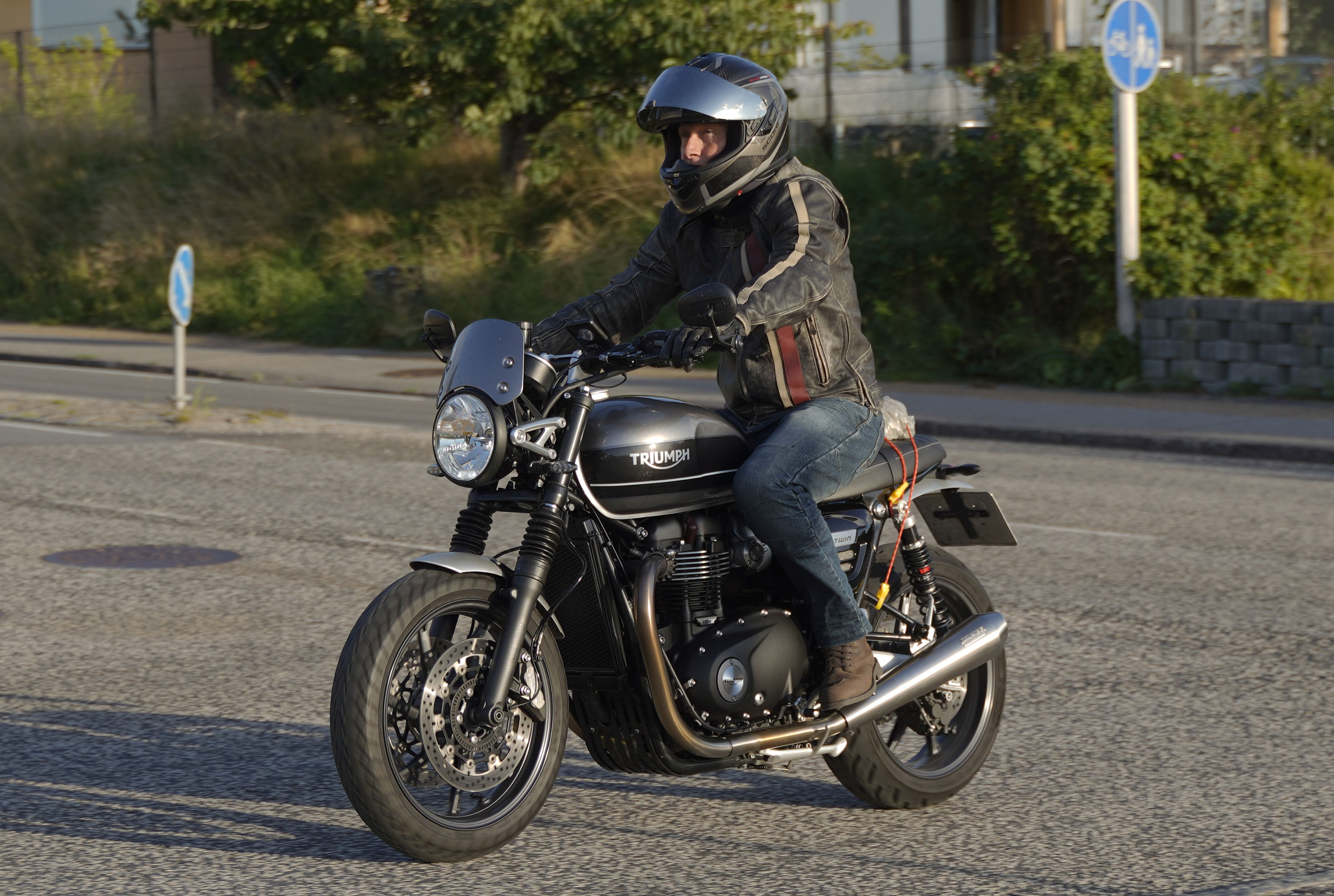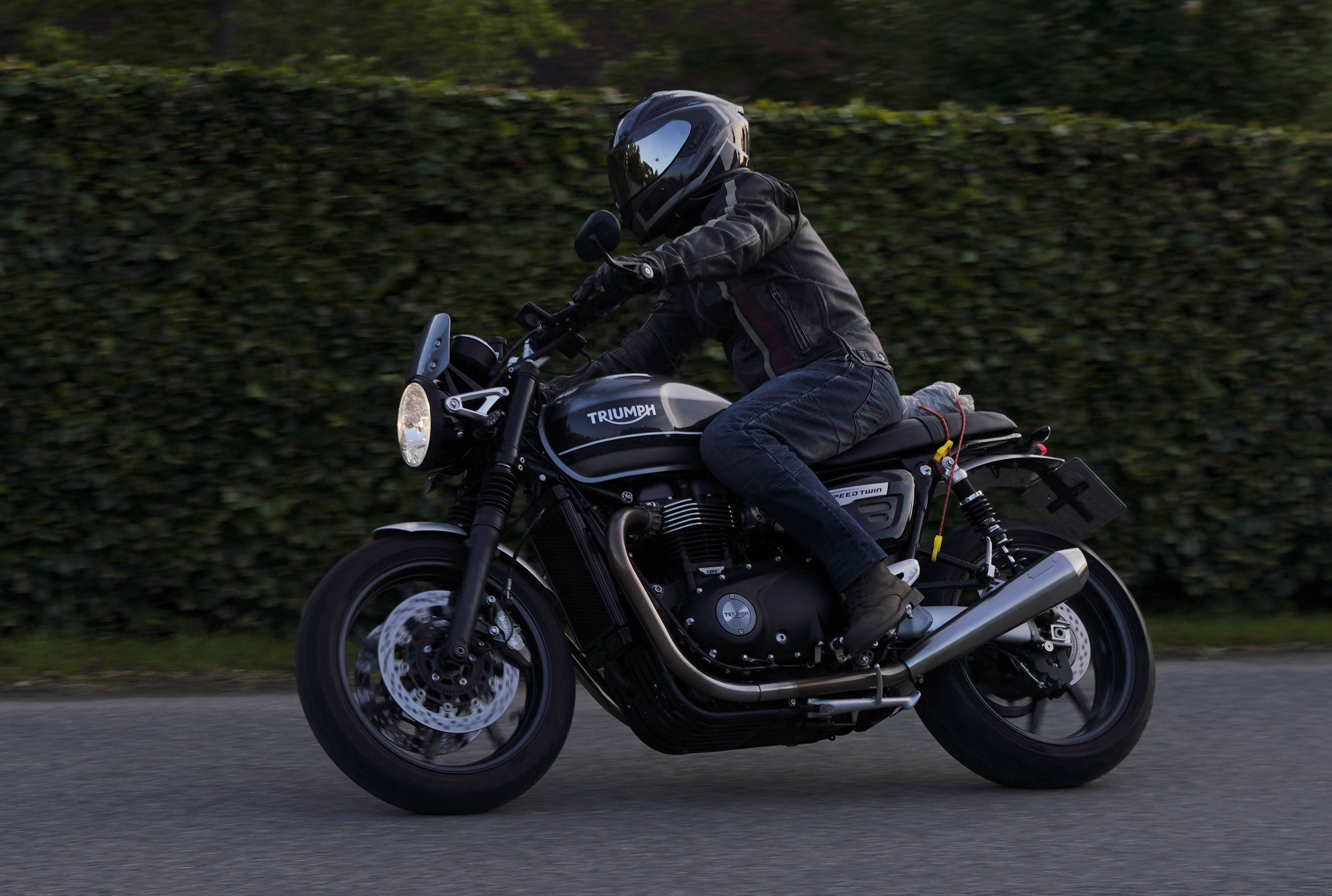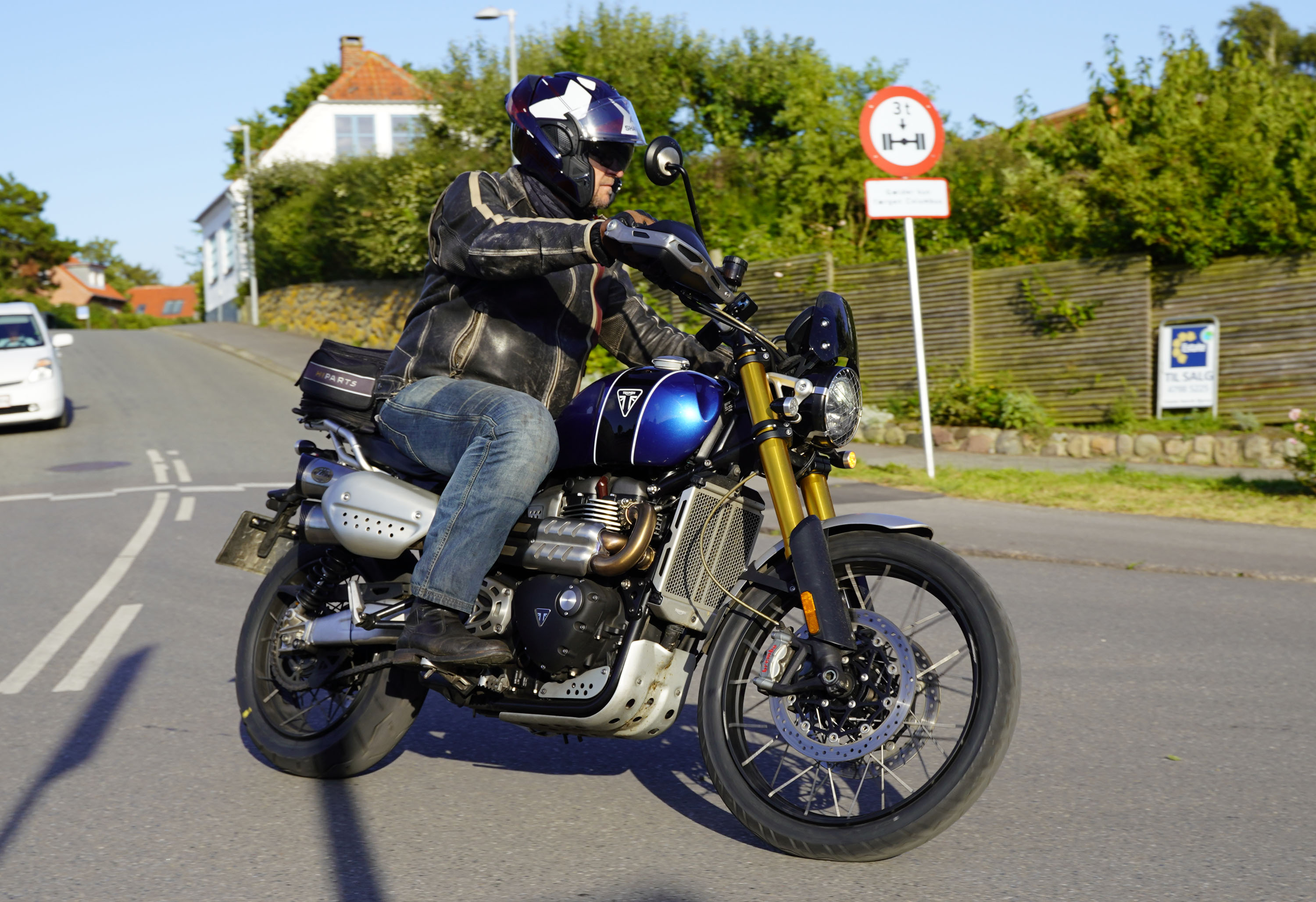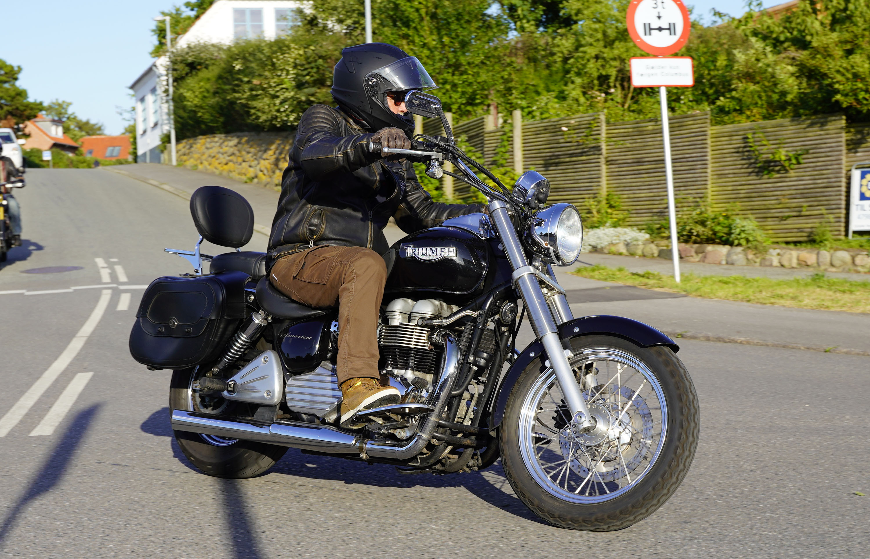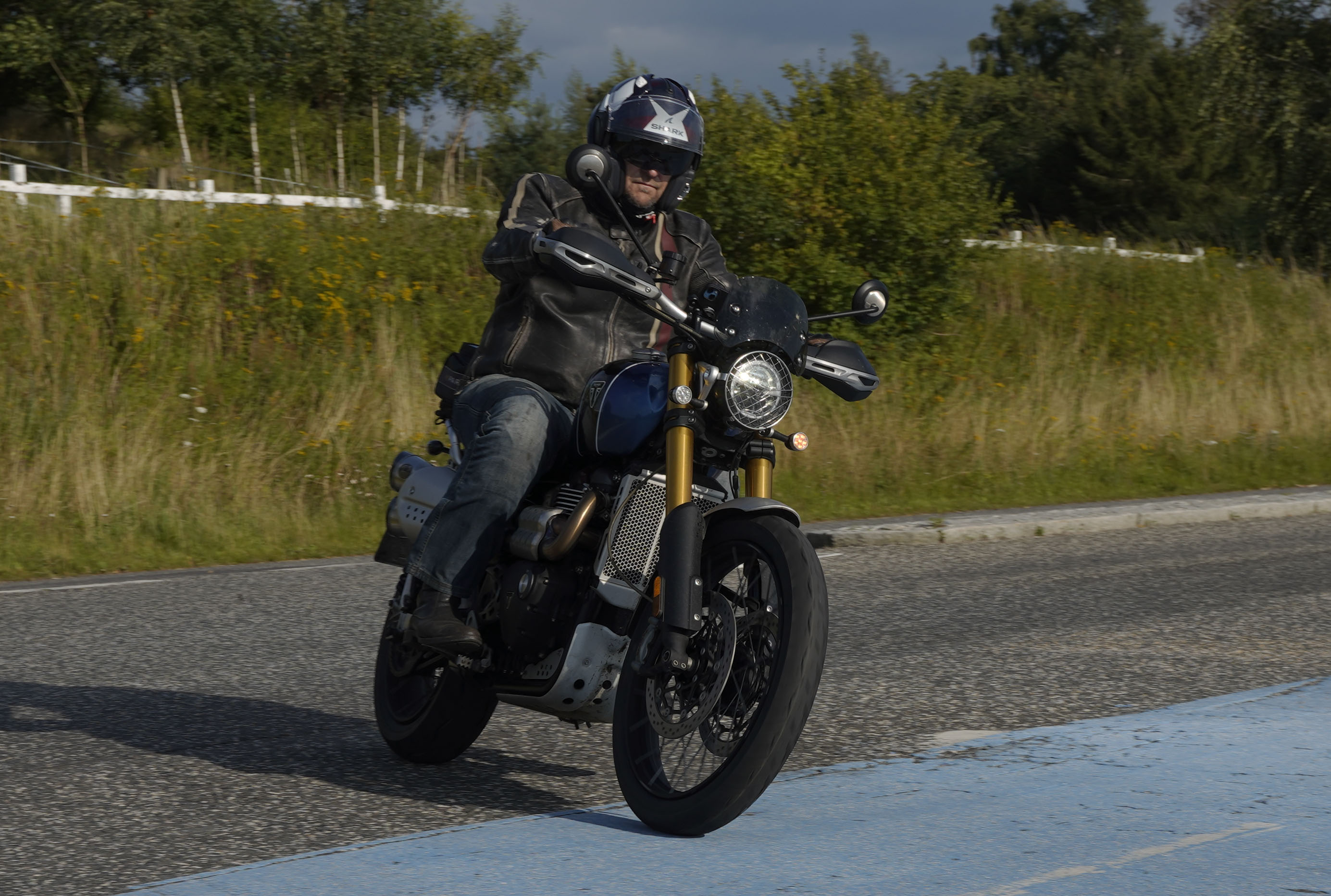 Jeg ankom til mødestedet på tanken, og der var flere der hade tænkt det samme. Der var Mogens på den sorte Bonneville -07, Tore på en sølv Trident 660 -21, Eva på en champagne/sort Street Twin -20, Niels Jørgen på en sort/hvis Bonneville T100 -05, Allan på en sort America -06, Torben på en sølv Harley Sprotster -99, Finn på en blå Scrambler 1200 -19, Per på en rød Tiger 900 -17, Julius på en rød/sølv Bonneville T120 -12, og mig selv på den grå/orange Street Triple KM-spec -08.Kl 17.30 startede vi turen og kørte gennem skoven til Værløse hvor vi drejede nord-vest mod Ganløse og Slagslunde.