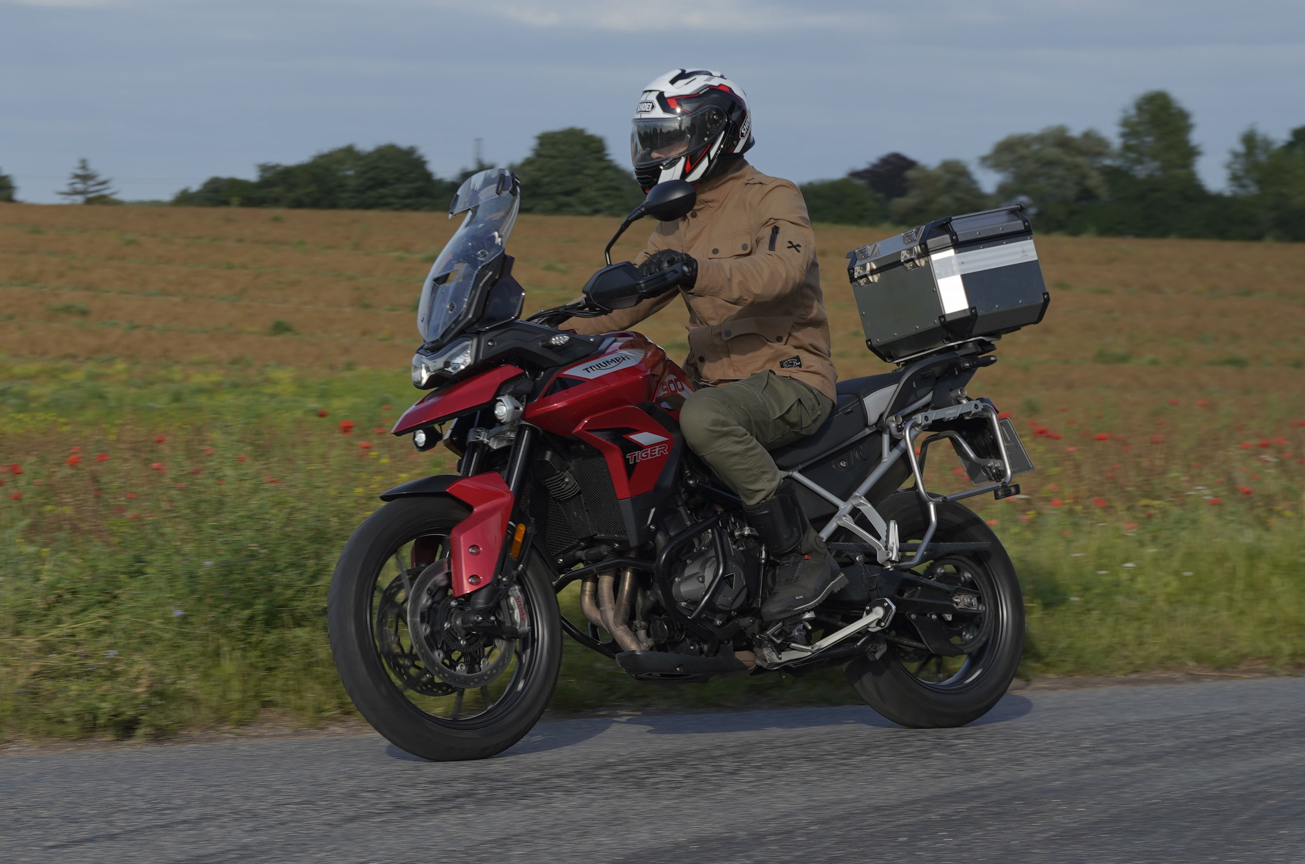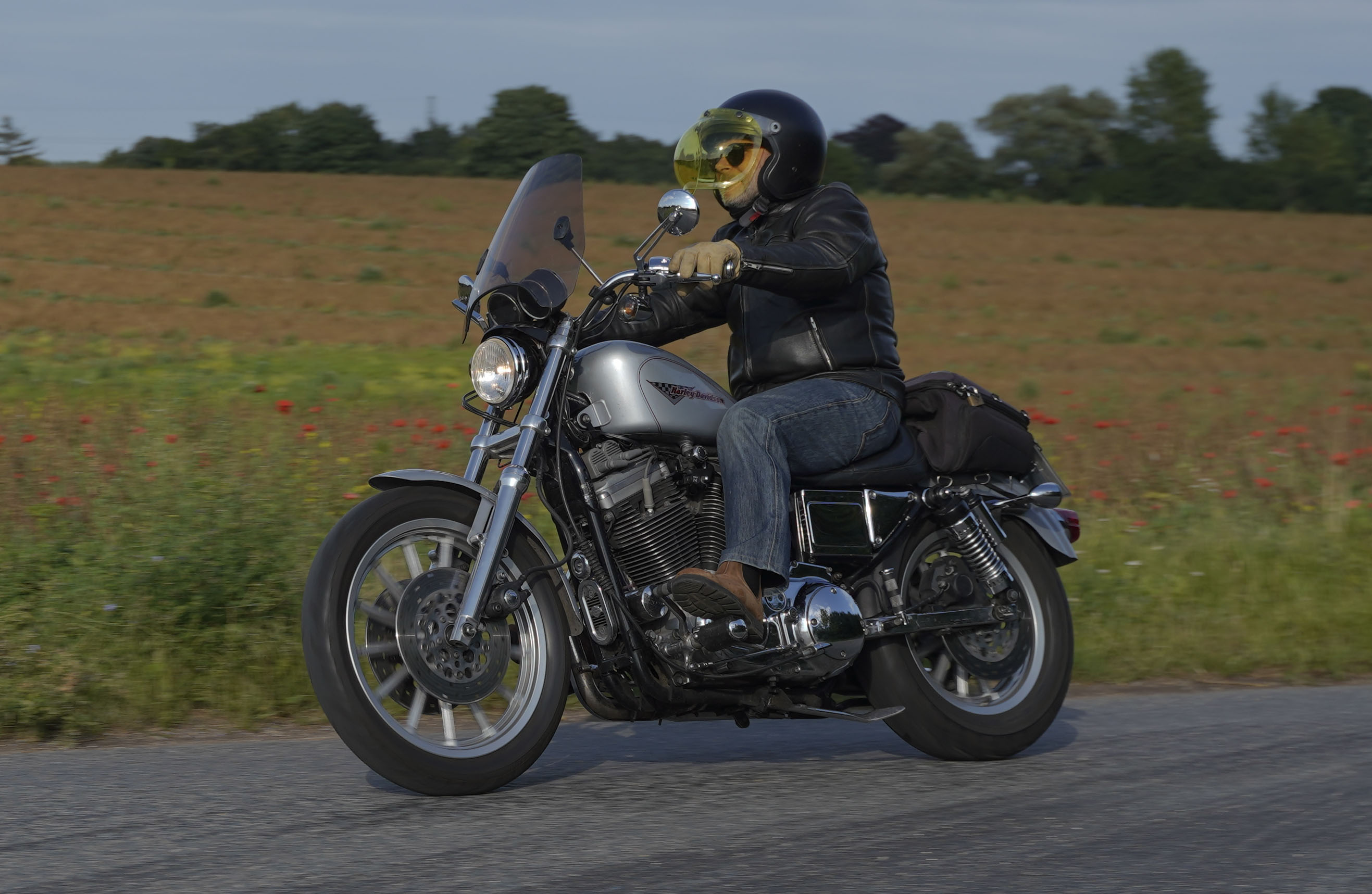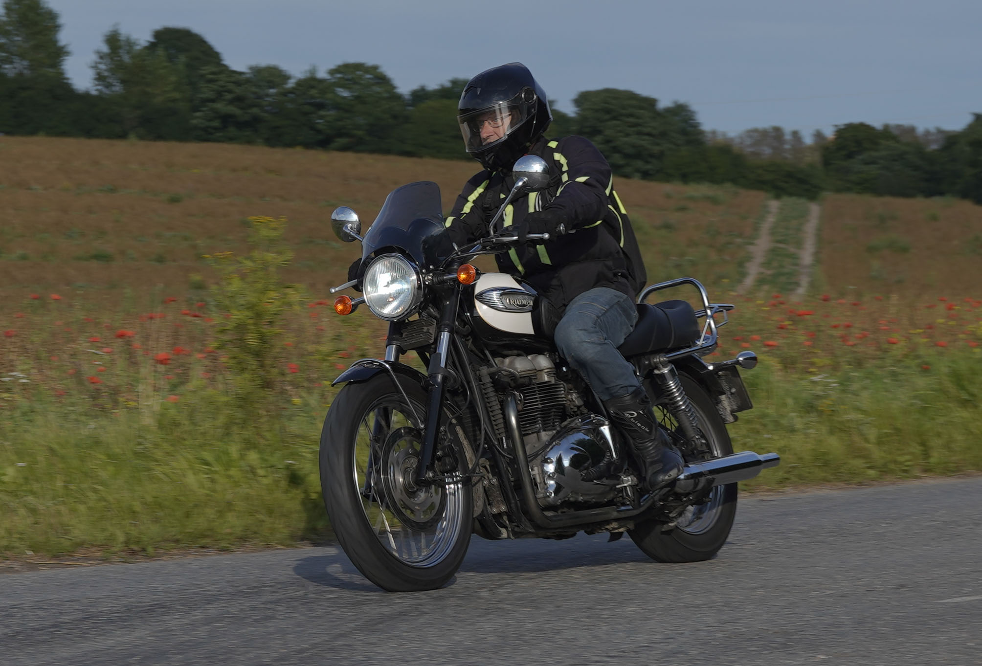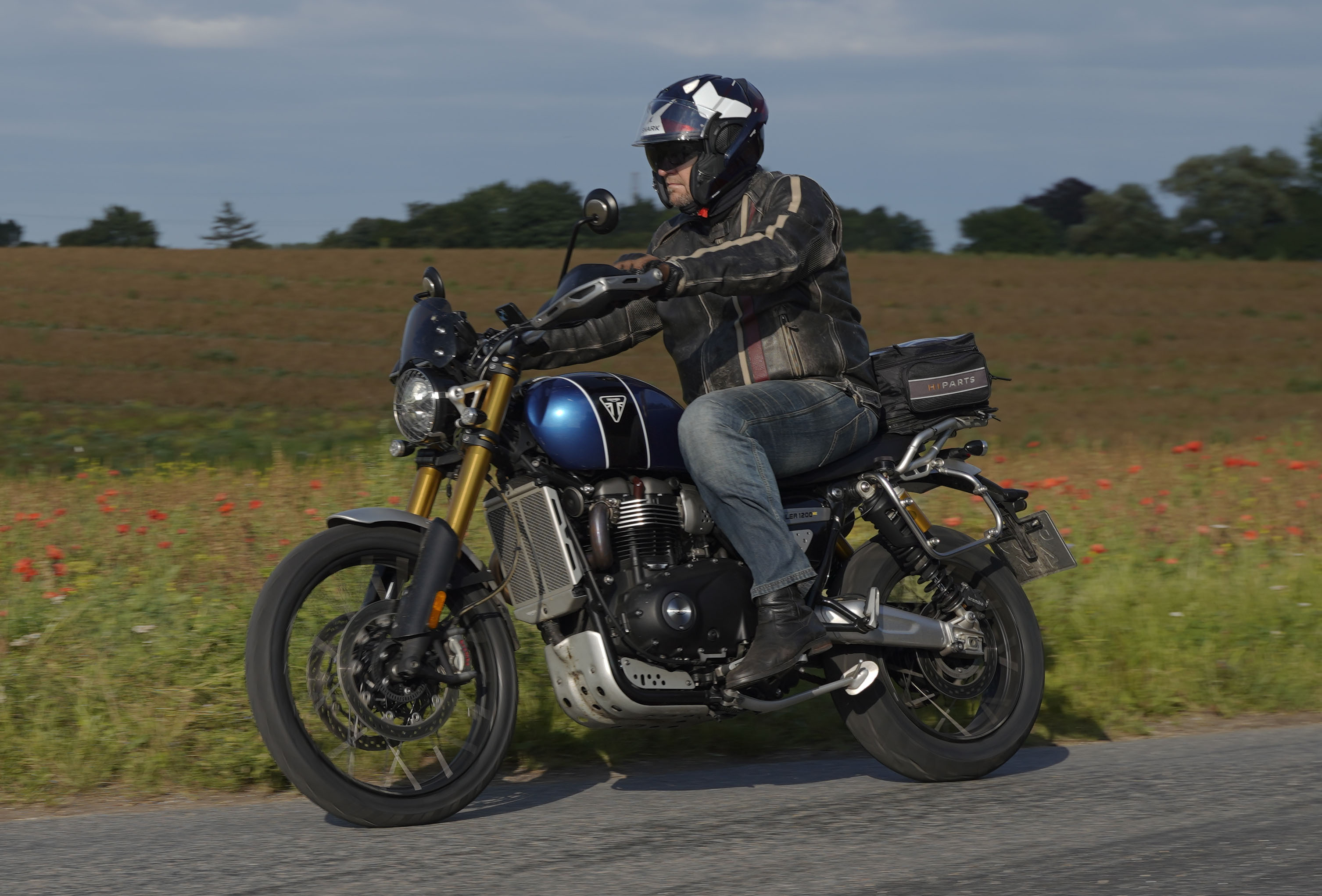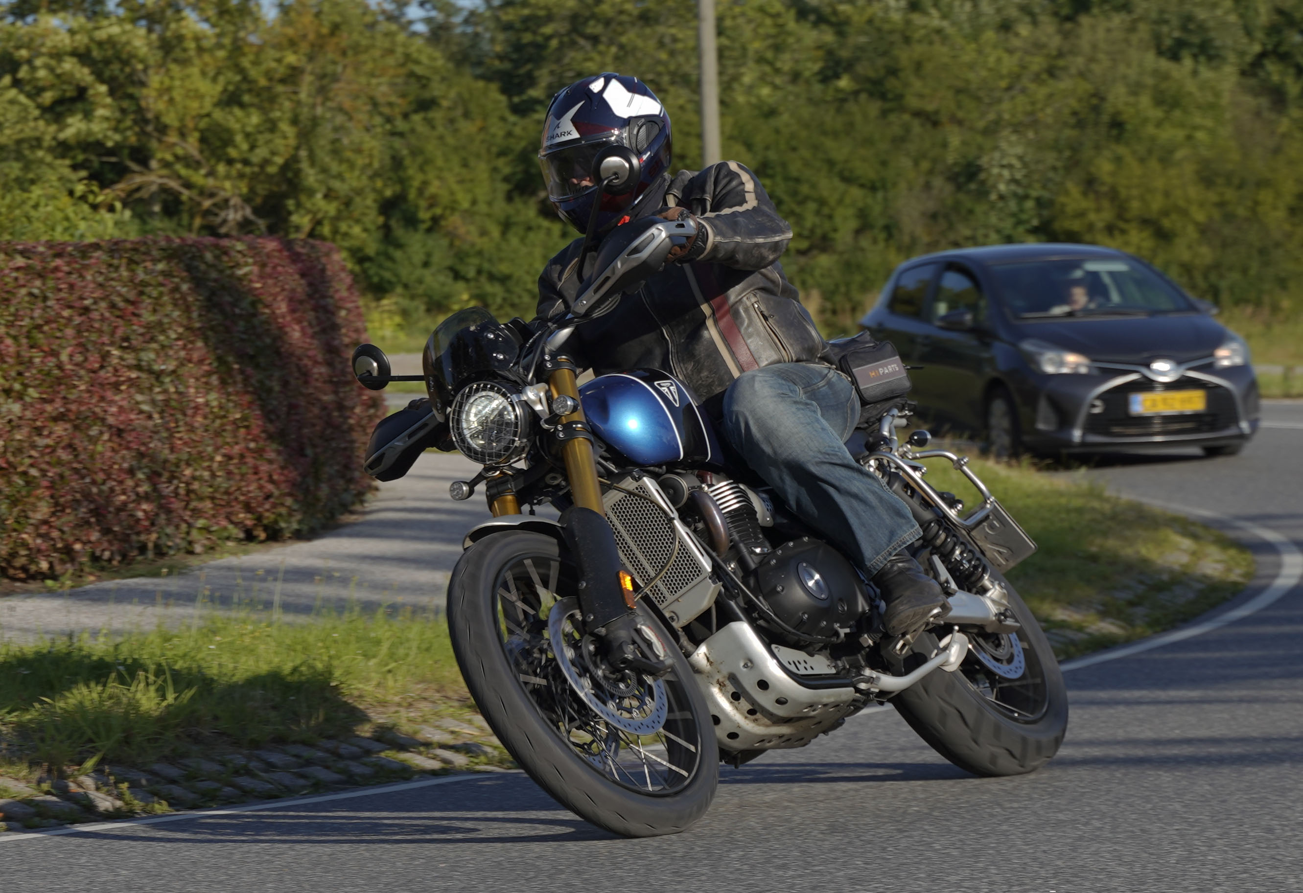 Jeg ankom til mødestedet på tanken, og der var flere der hade tænkt det samme. Der var Mogens på den sorte Bonneville -07, Tore på en sølv Trident 660 -21, Eva på en champagne/sort Street Twin -20, Niels Jørgen på en sort/hvis Bonneville T100 -05, Allan på en sort America -06, Torben på en sølv Harley Sprotster -99, Finn på en blå Scrambler 1200 -19, Per på en rød Tiger 900 -17, Julius på en rød/sølv Bonneville T120 -12, og mig selv på den grå/orange Street Triple KM-spec -08.Kl 17.30 startede vi turen og kørte gennem skoven til Værløse hvor vi drejede nord-vest mod Ganløse og Slagslunde.