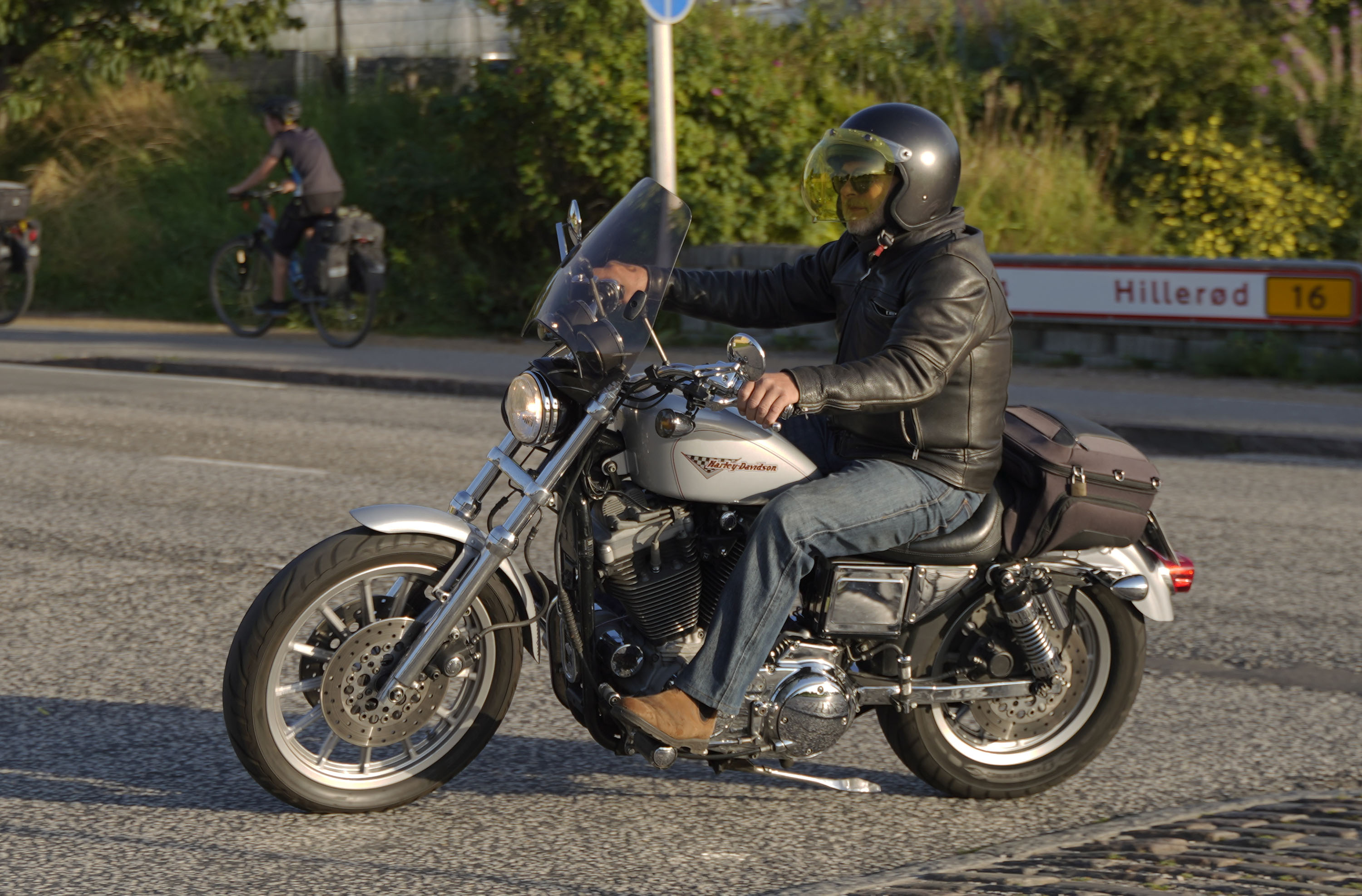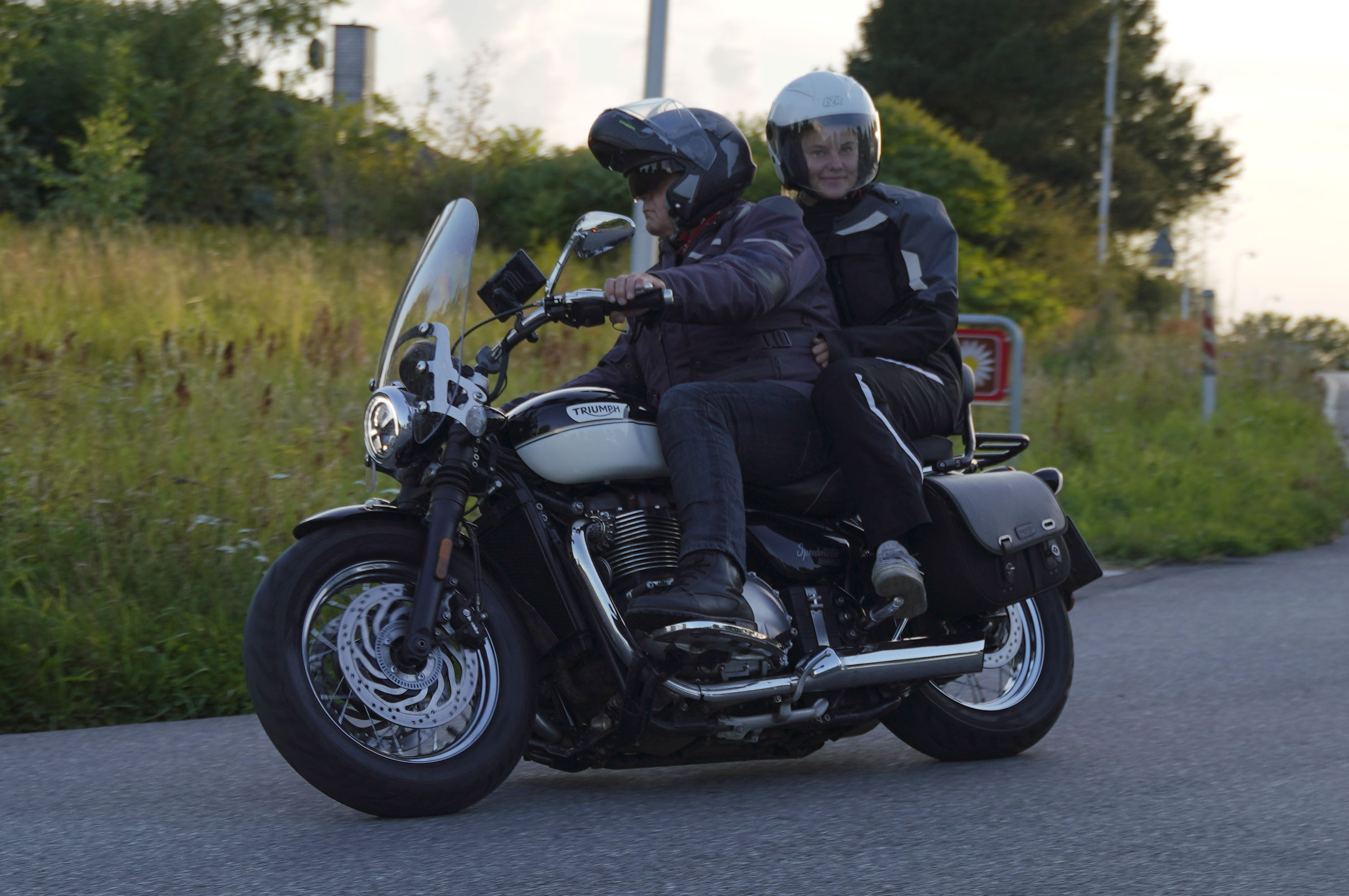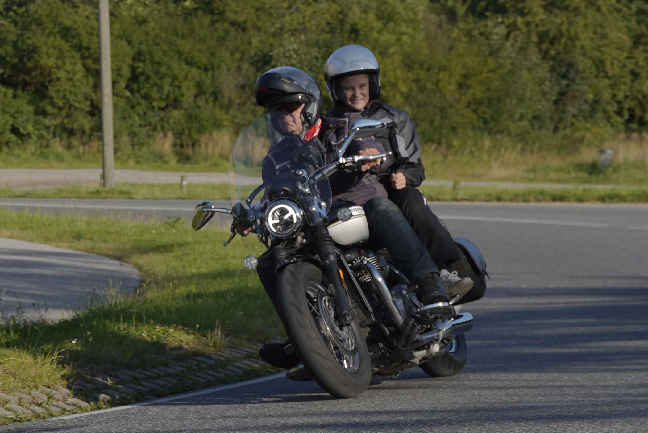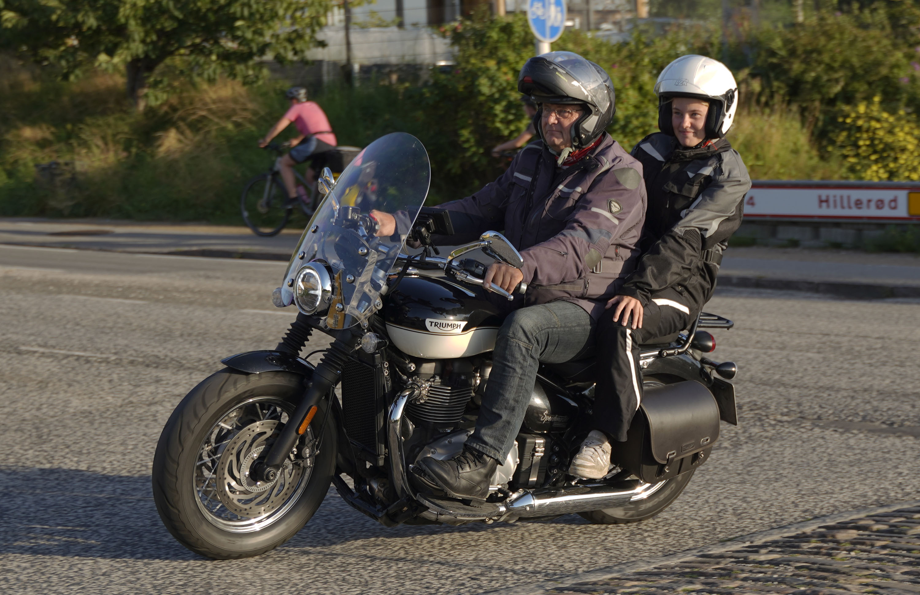 Så gik turen videre til Frederikssund og boren over Roskilde Fjord. Her kom der en to nye deltagere, Bo og Nina, på en blå/hvi Speedmaster -21. Fedt. Efter broen kørte vi nordpå gennem skoven og gennem Jægespris hvor der var en god højresving ud af byen.