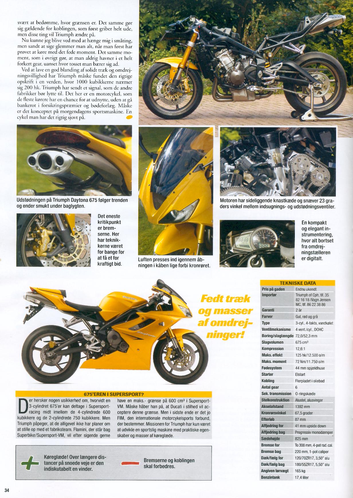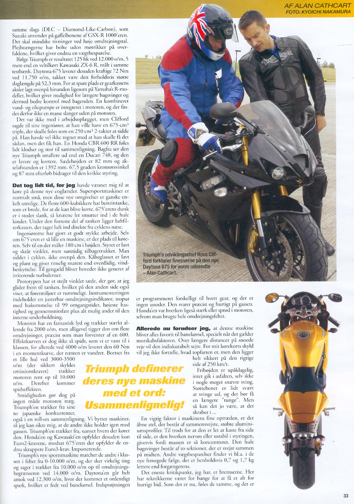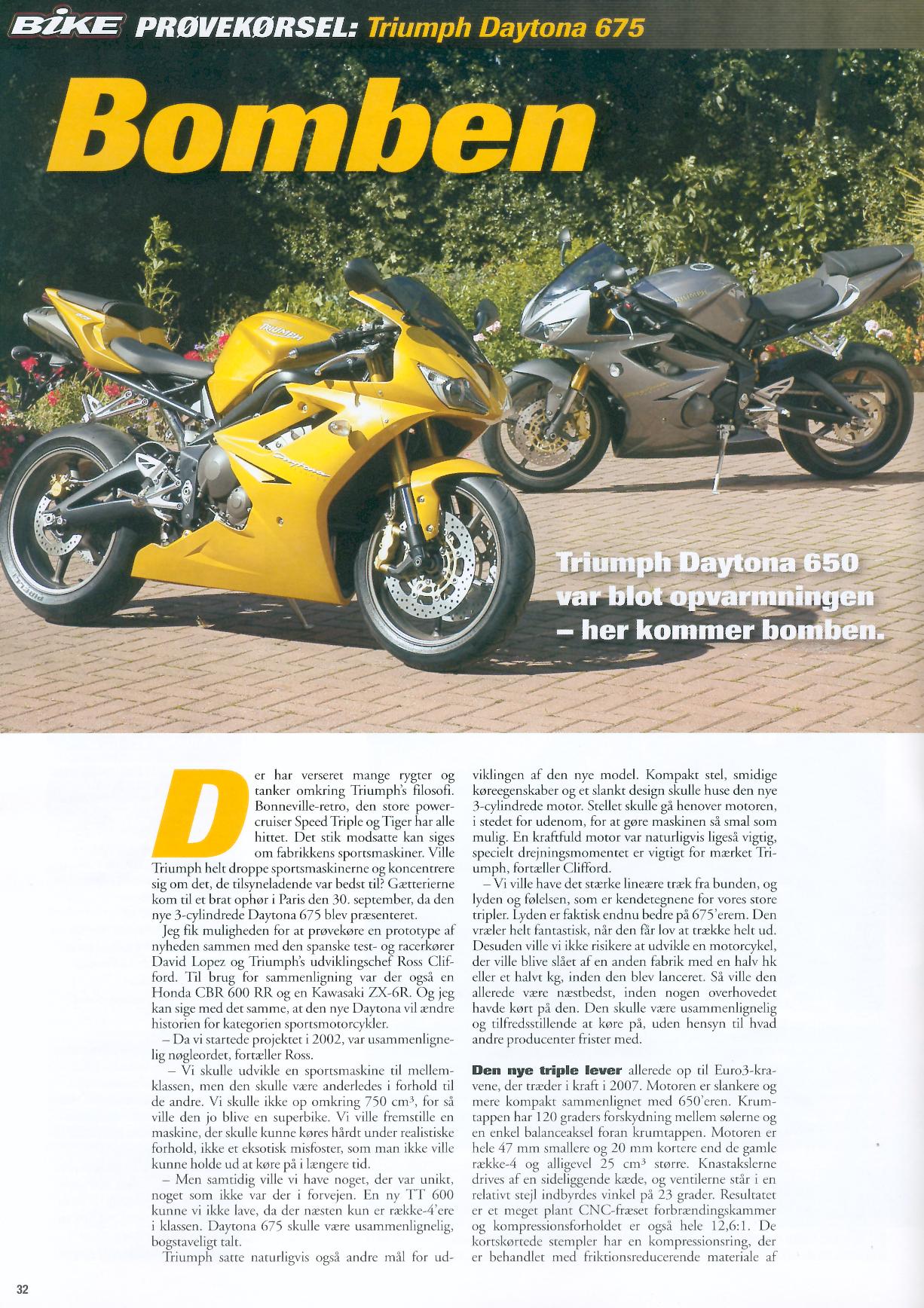 Danske "Bike" november 2005 har oversat en Daytona 675 test fra den engelske moderavisen Bike.