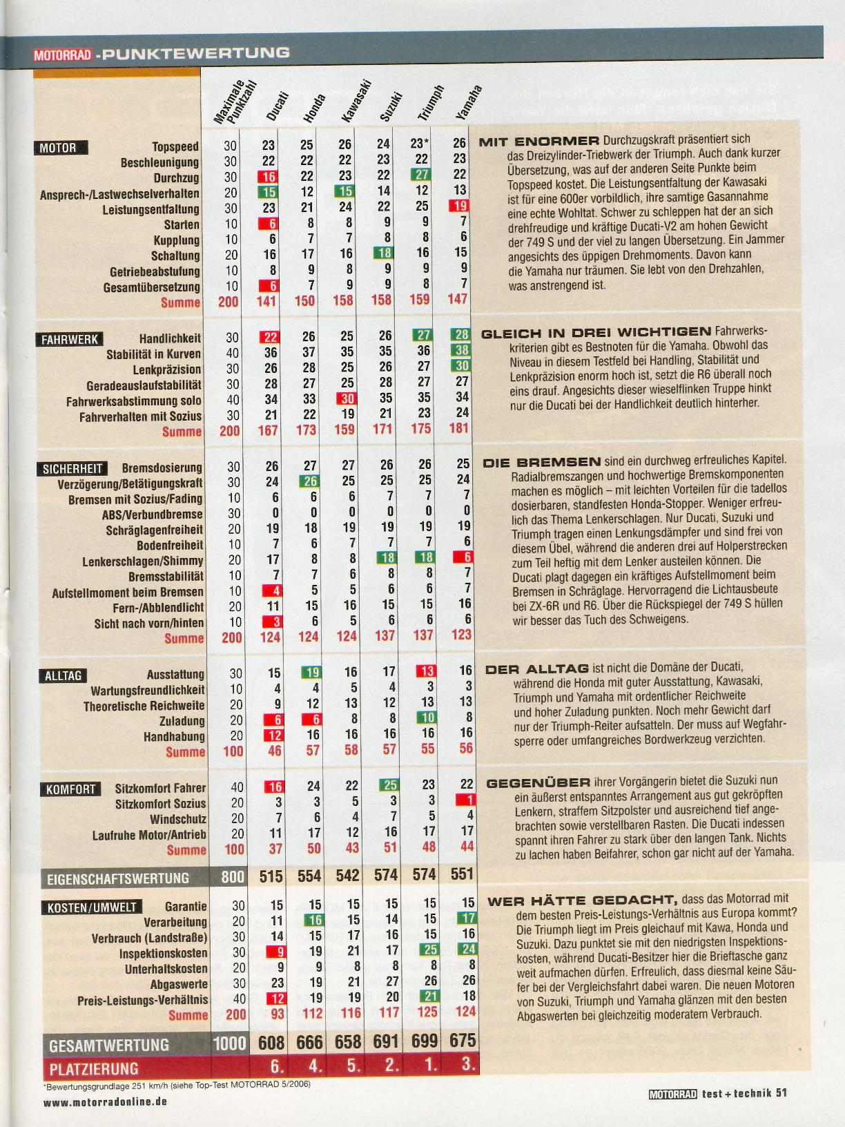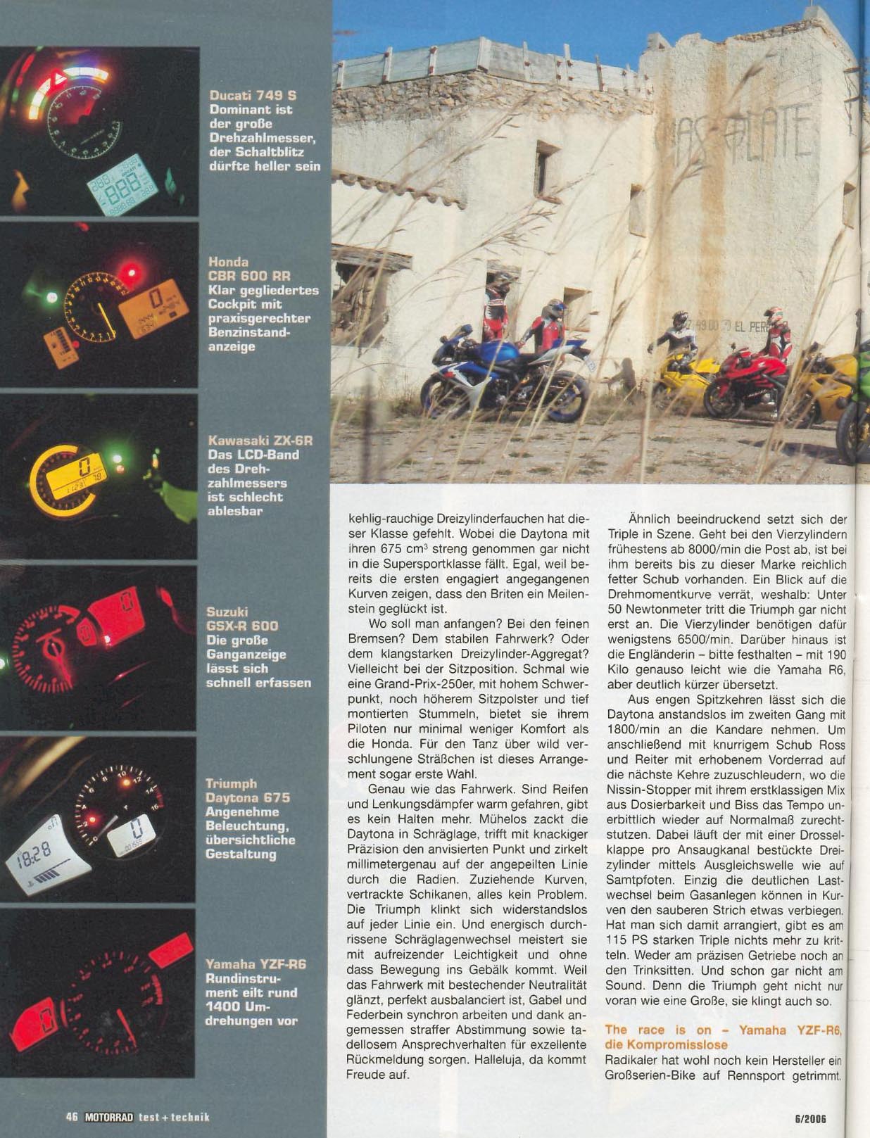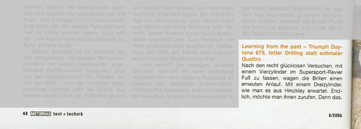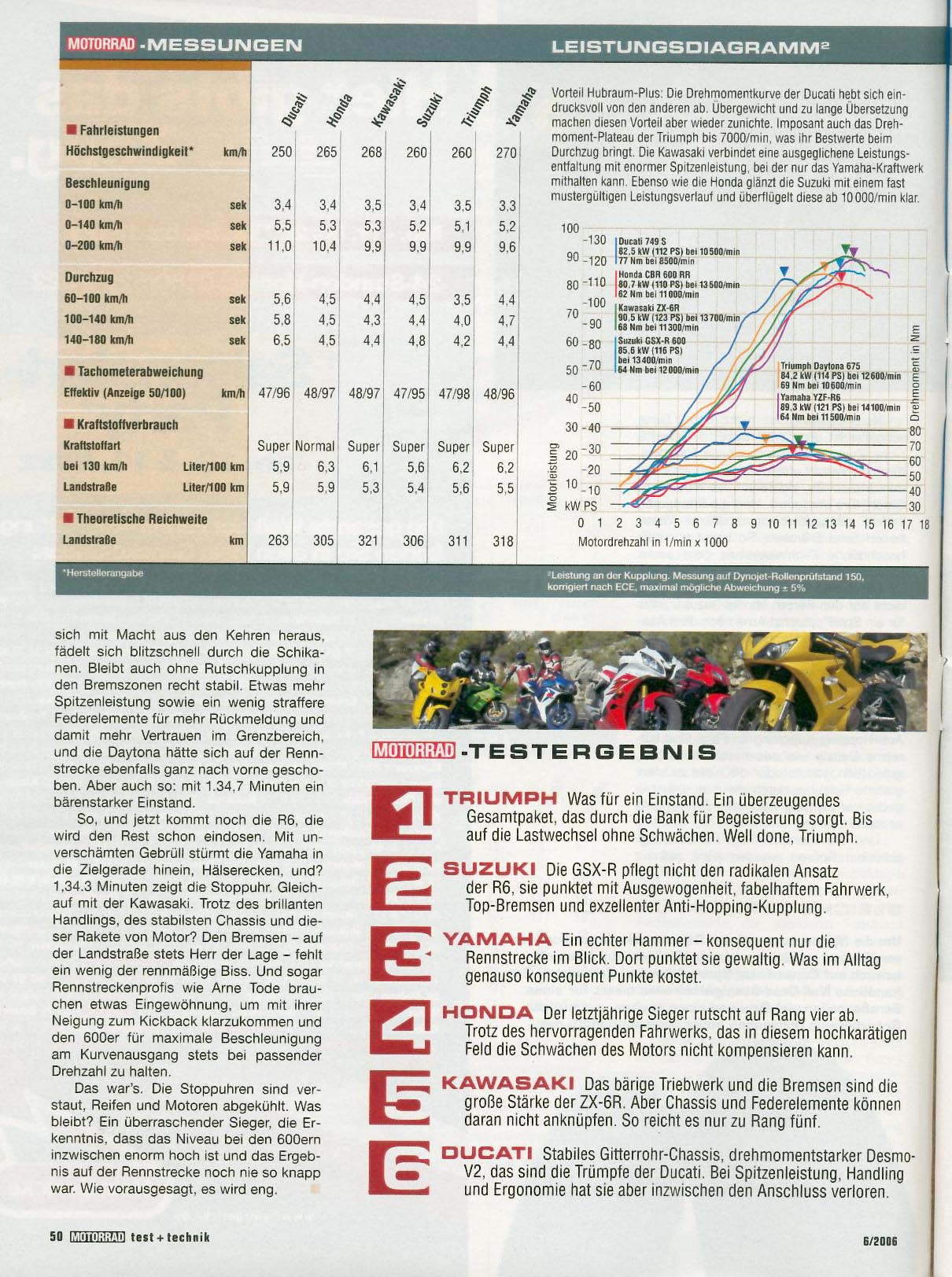 Tyske "Motorrad" #06, 2006, har en sammenligningstest mellem alle nye 600 supersportmaskiner...
