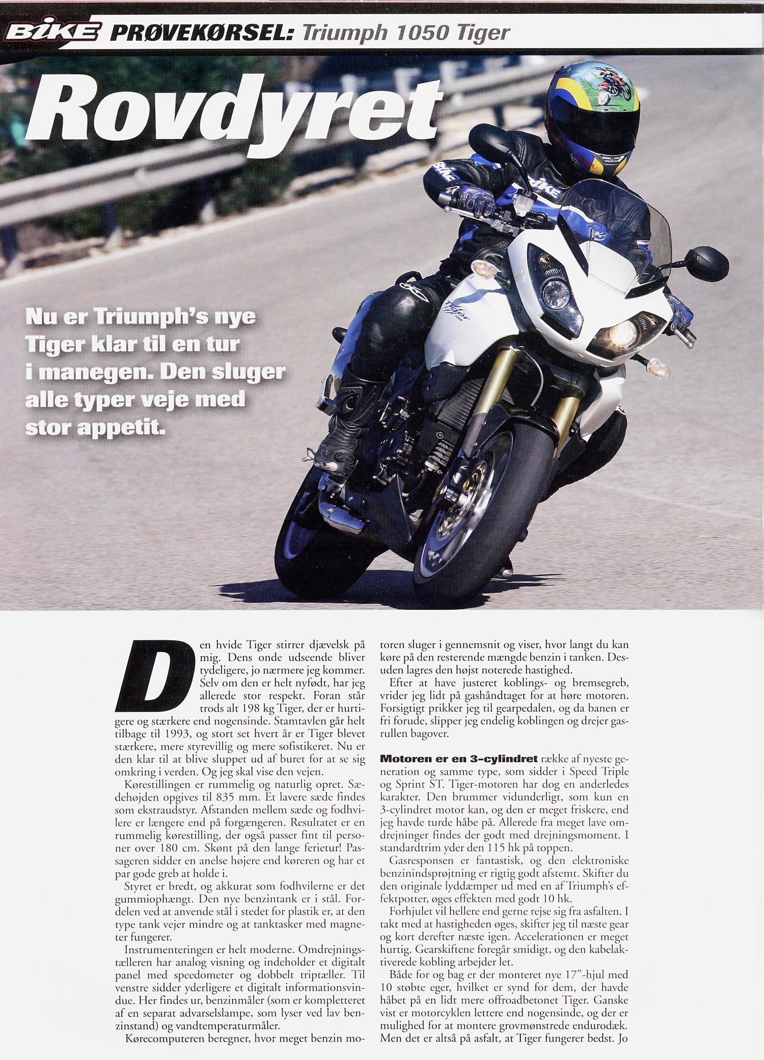 Danske "Bike" februar 2007 har en test af den nye Tiger 1050.