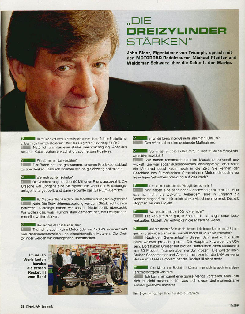 Rocket III, og til sidst kommer en interview med ejeren af Triumph: John Bloor.