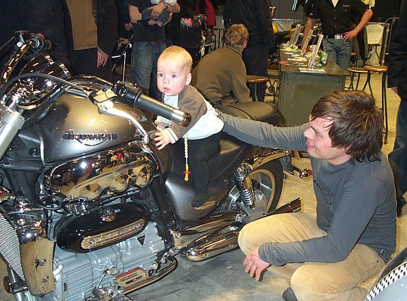 så var han solgt. Han sku åbne udstillingen på en Rocket III. Bagefter gik han rundt i